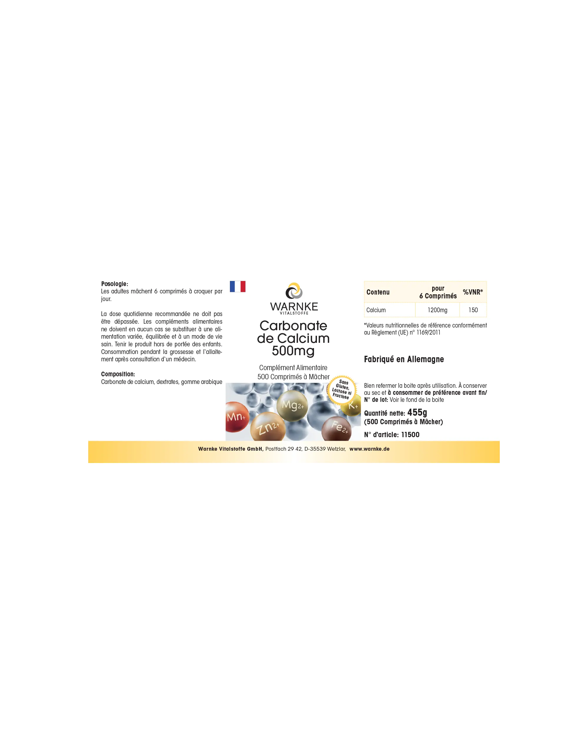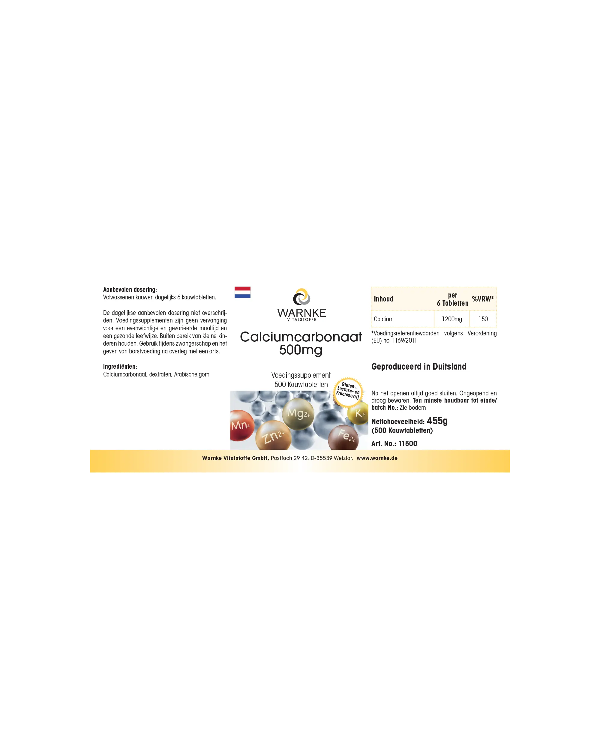 Produktinformationen "Calciumcarbonat 500mg - 500 Kautabletten | Warnke Vitalstoffe"
