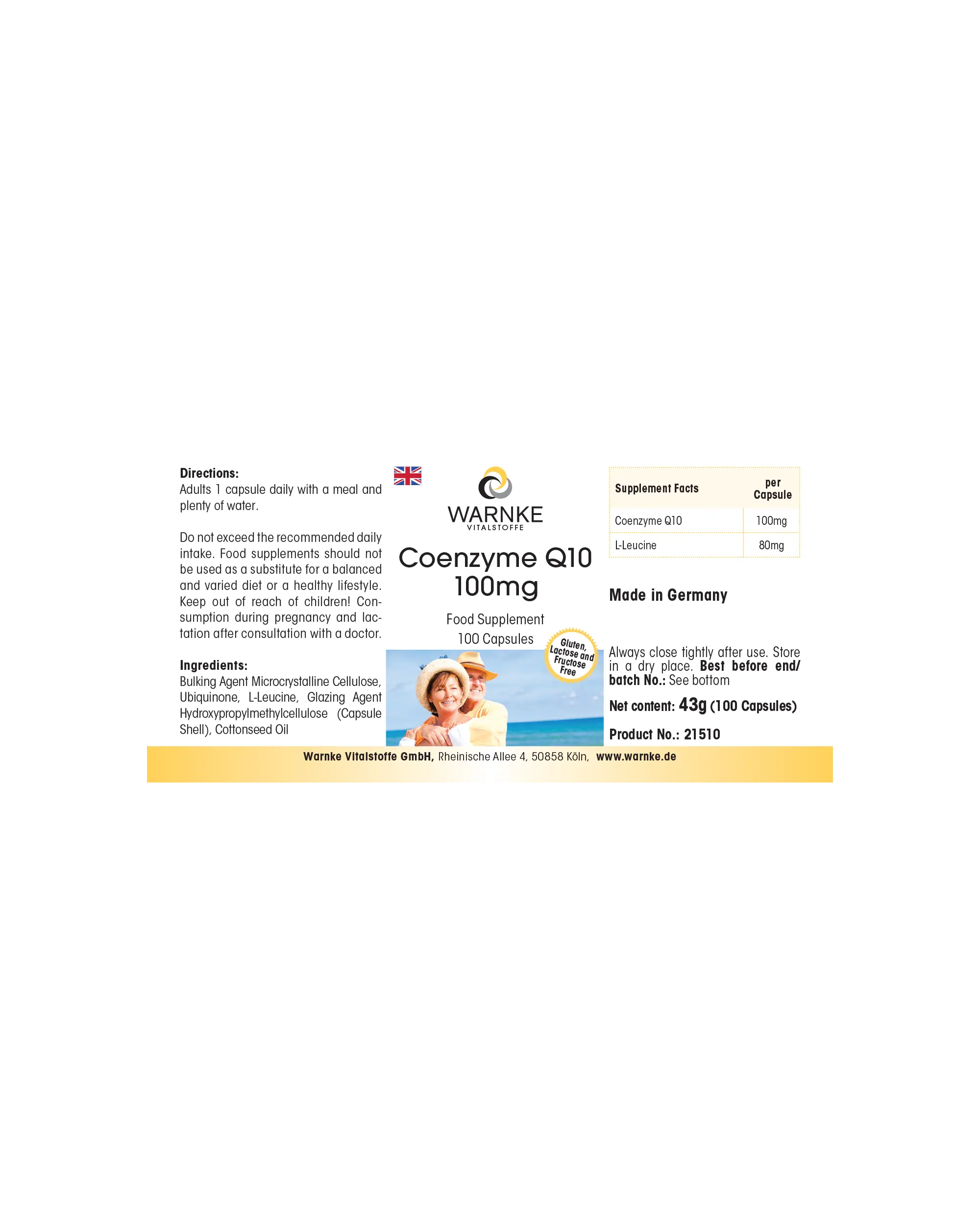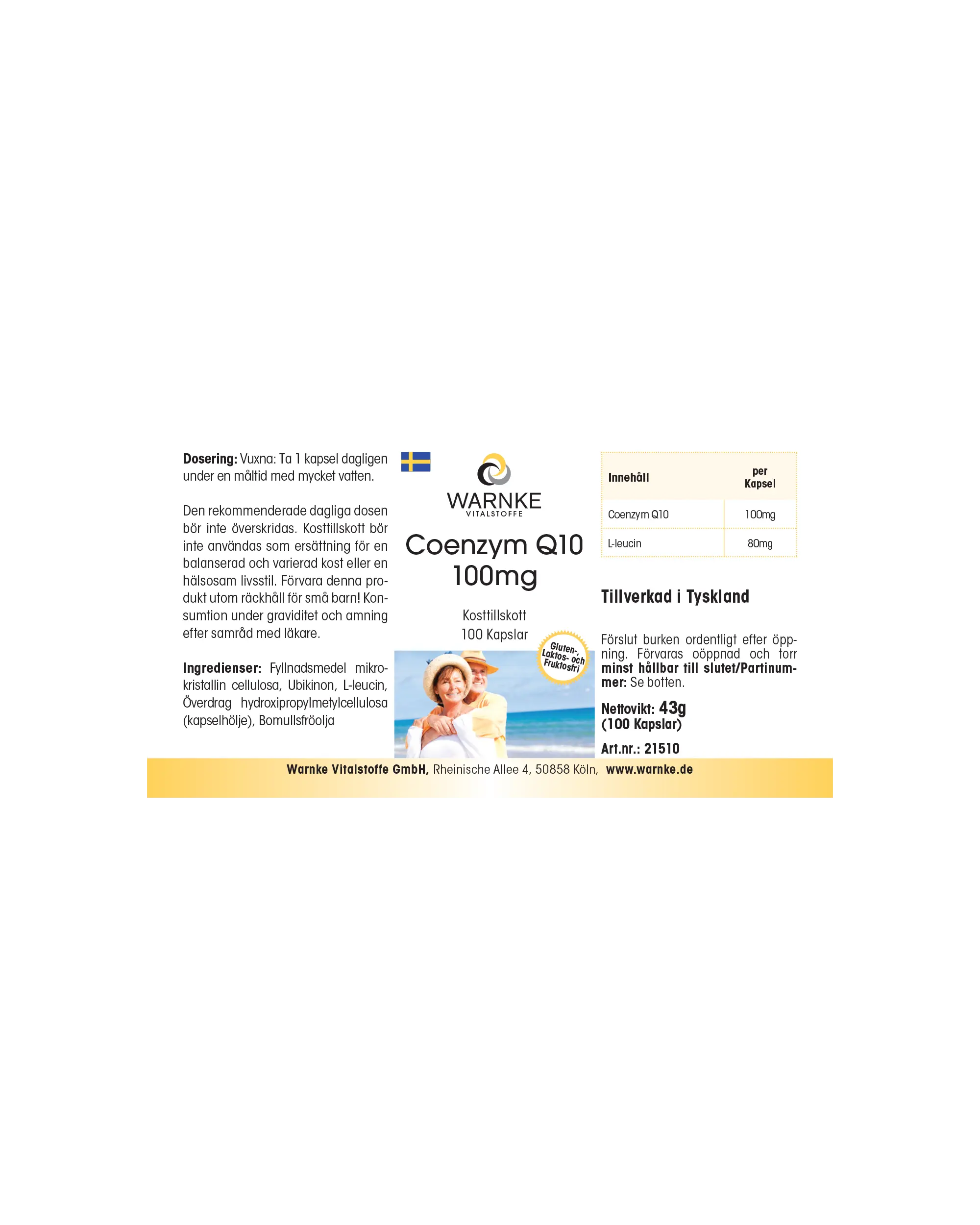 Produktinformationen "Co-Enzym Q10 100mg - 100 Kapseln - Ubichinon - Vegan | Warnke Vitalstoffe"