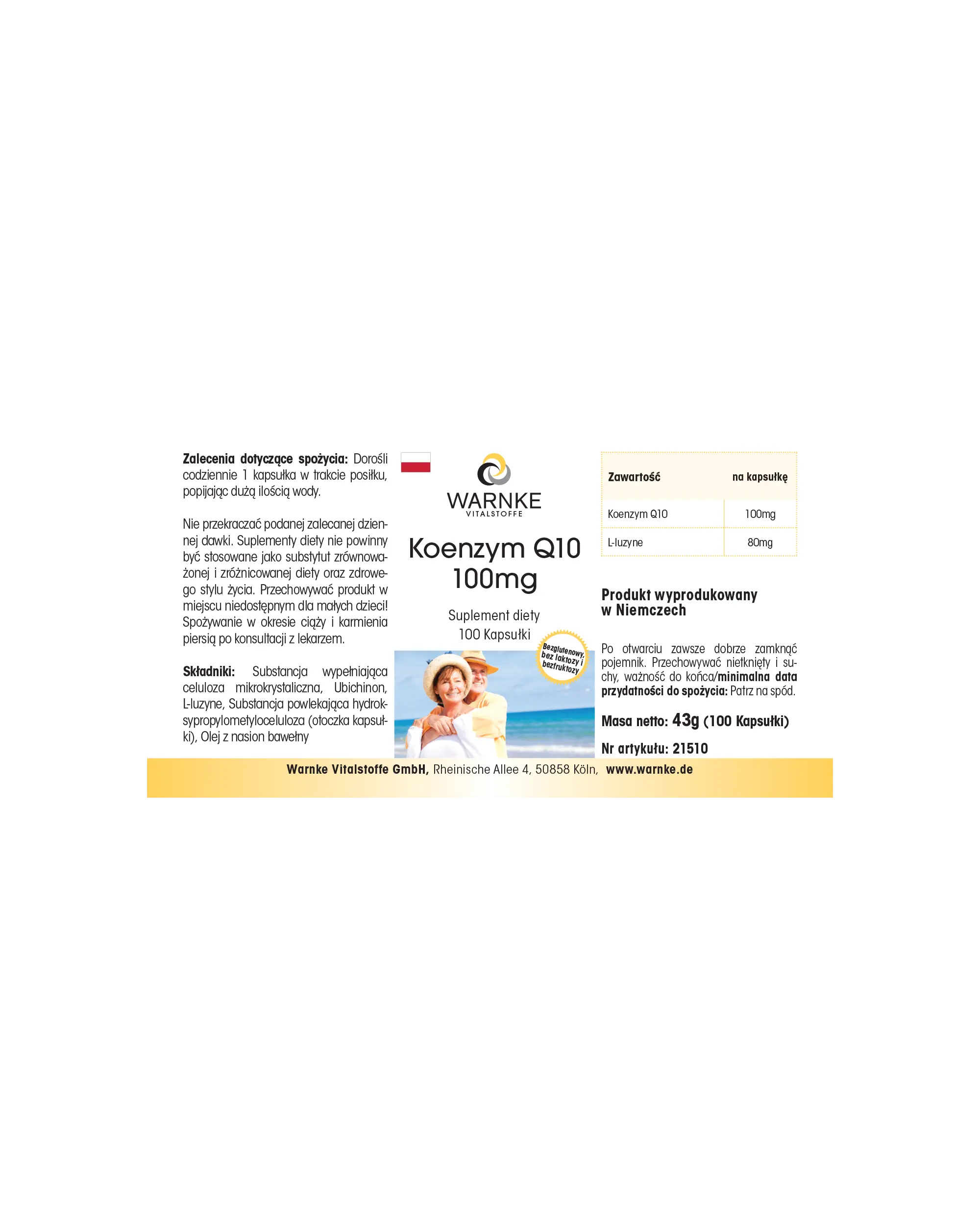 Co-Enzym Q10 100mg - 100 Kapseln - Ubichinon - Vegan | Warnke Vitalstoffe