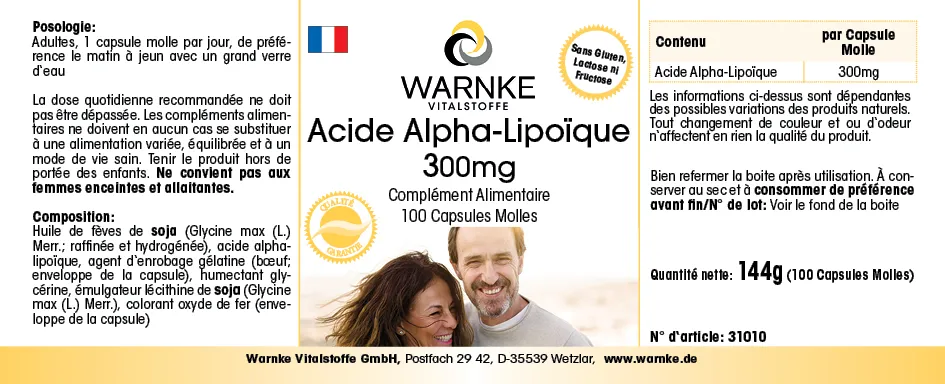 Alpha-Liponsäure 300mg - 100 Softgels - schwefelhaltige Fettsäure | Warnke Vitalstoffe