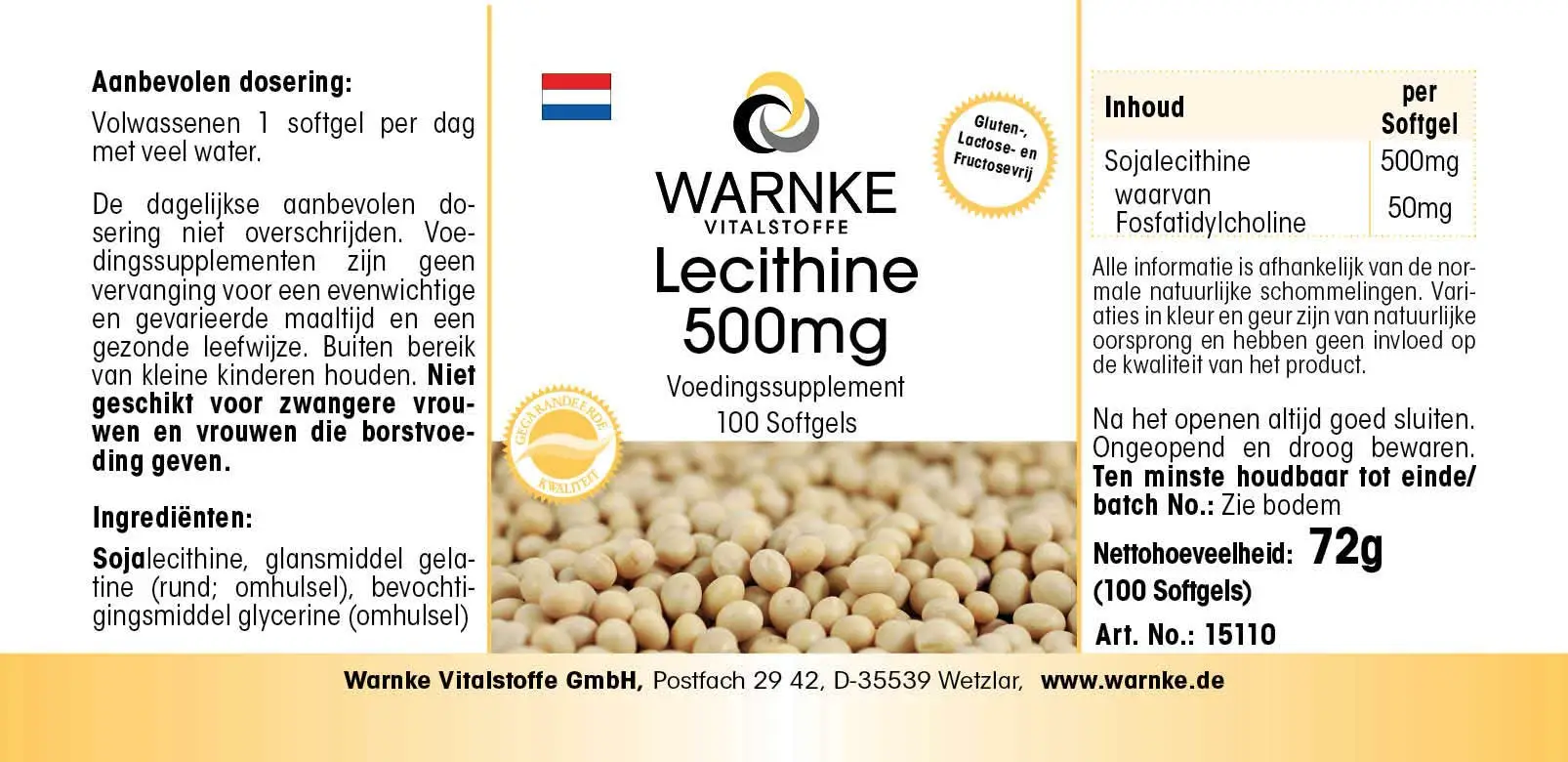 Produktinformationen "Lecithin 500mg - 100 Softgels - aus Soja - GMO-Frei - Hochdosiert | Warnke Vitalstoffe"