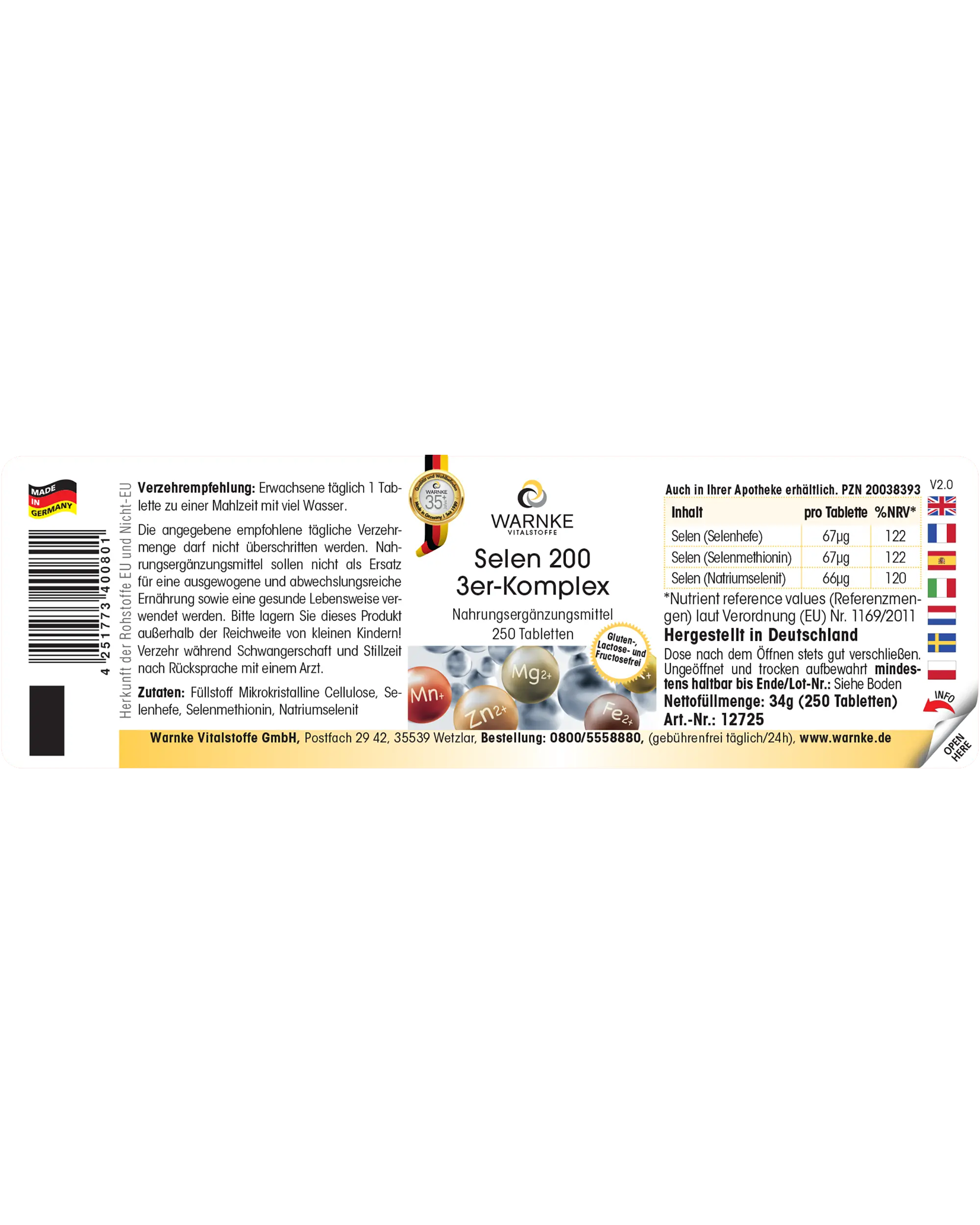 Produktinformationen "Selen 200 3er-Komplex - 250 Tabletten - für Haar, Nägel, Schilddrüse uvm. | Warnke Vitalstoffe"