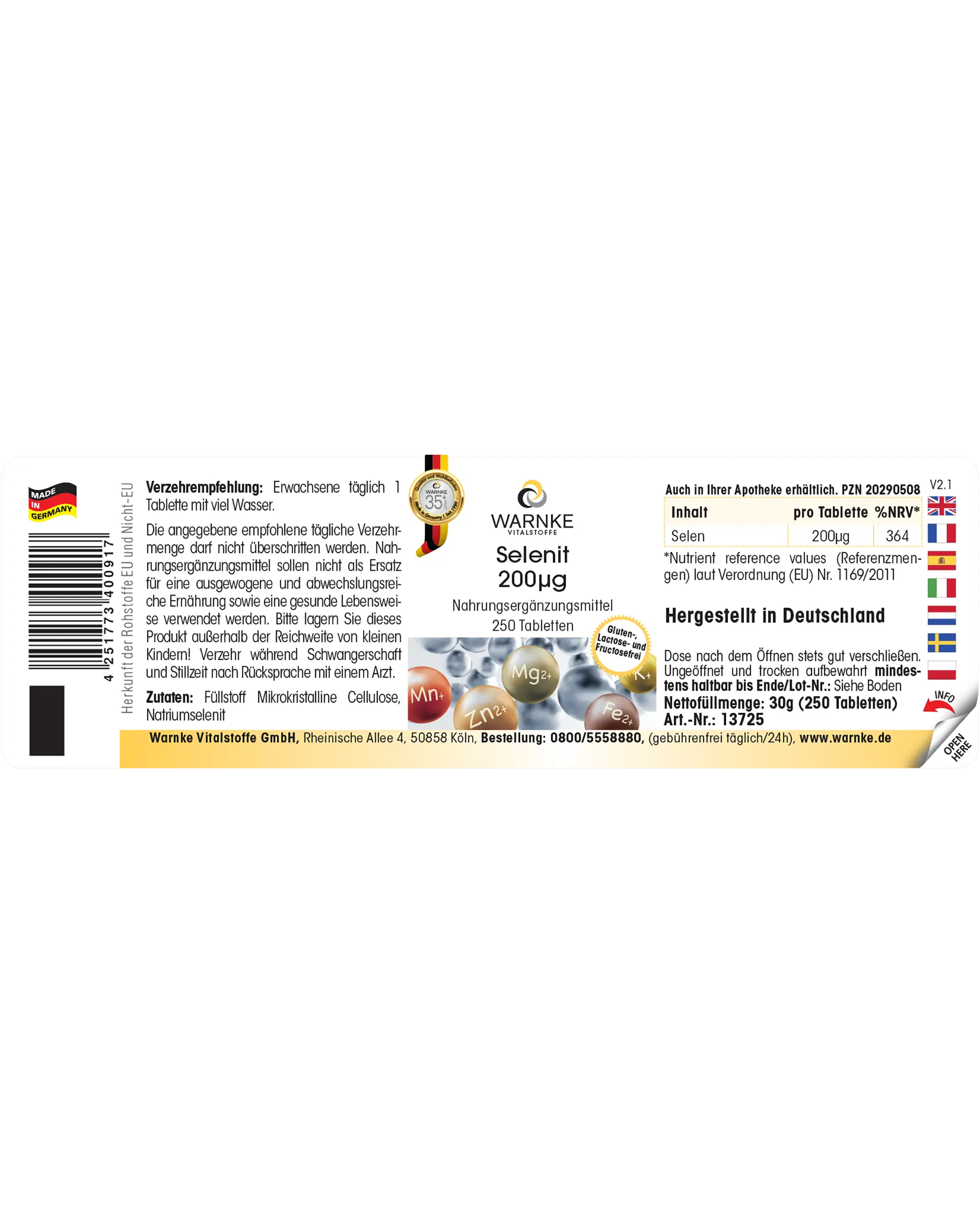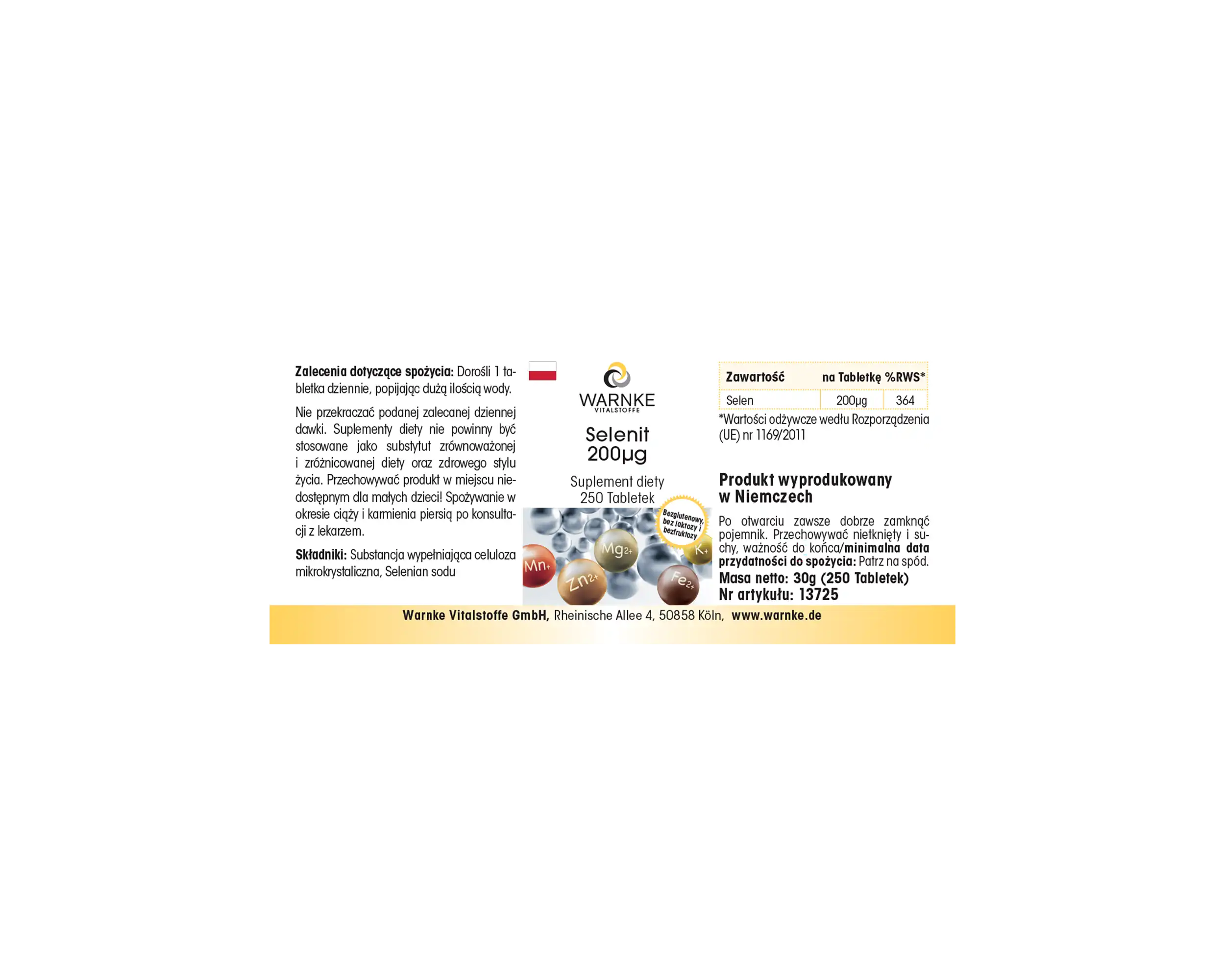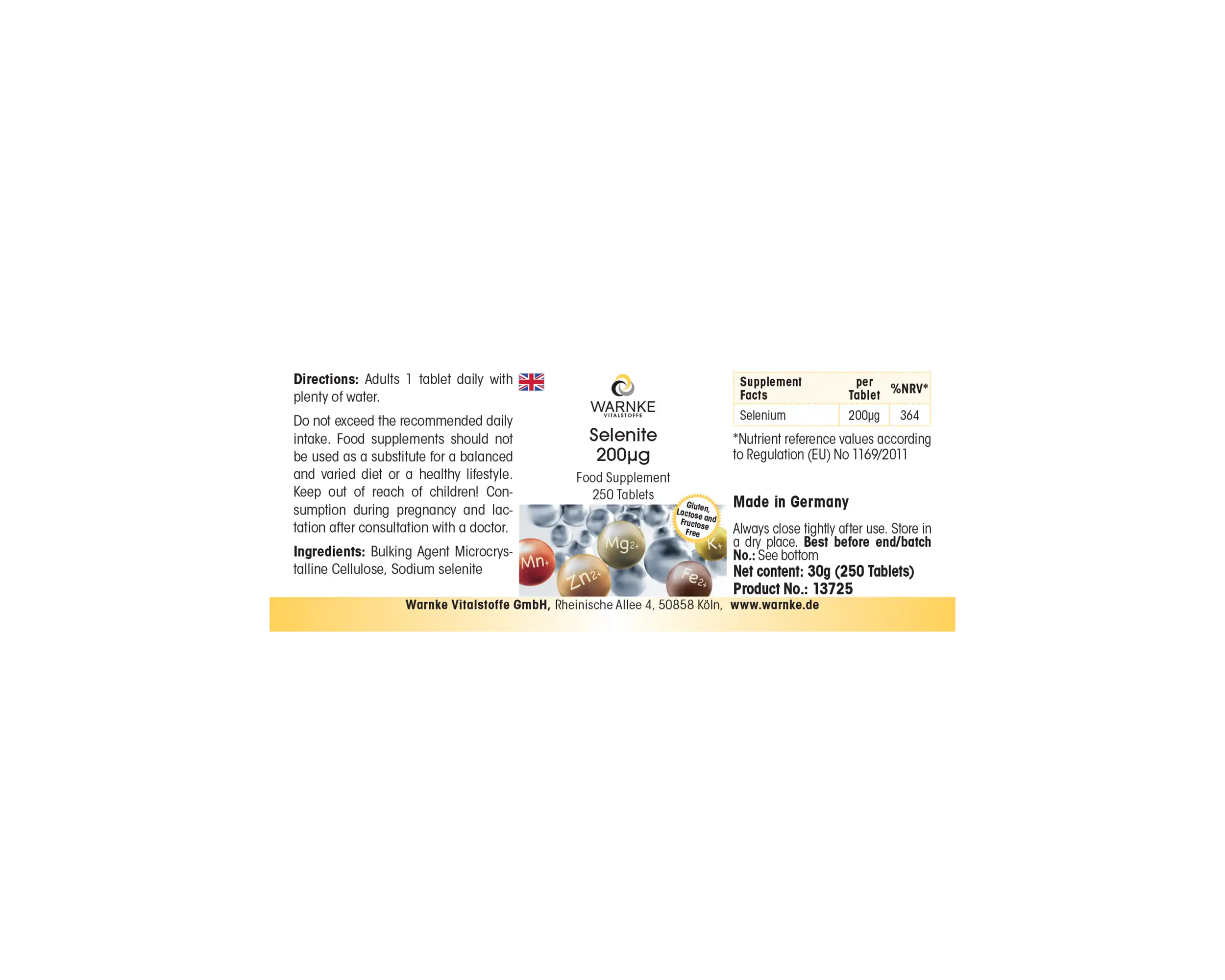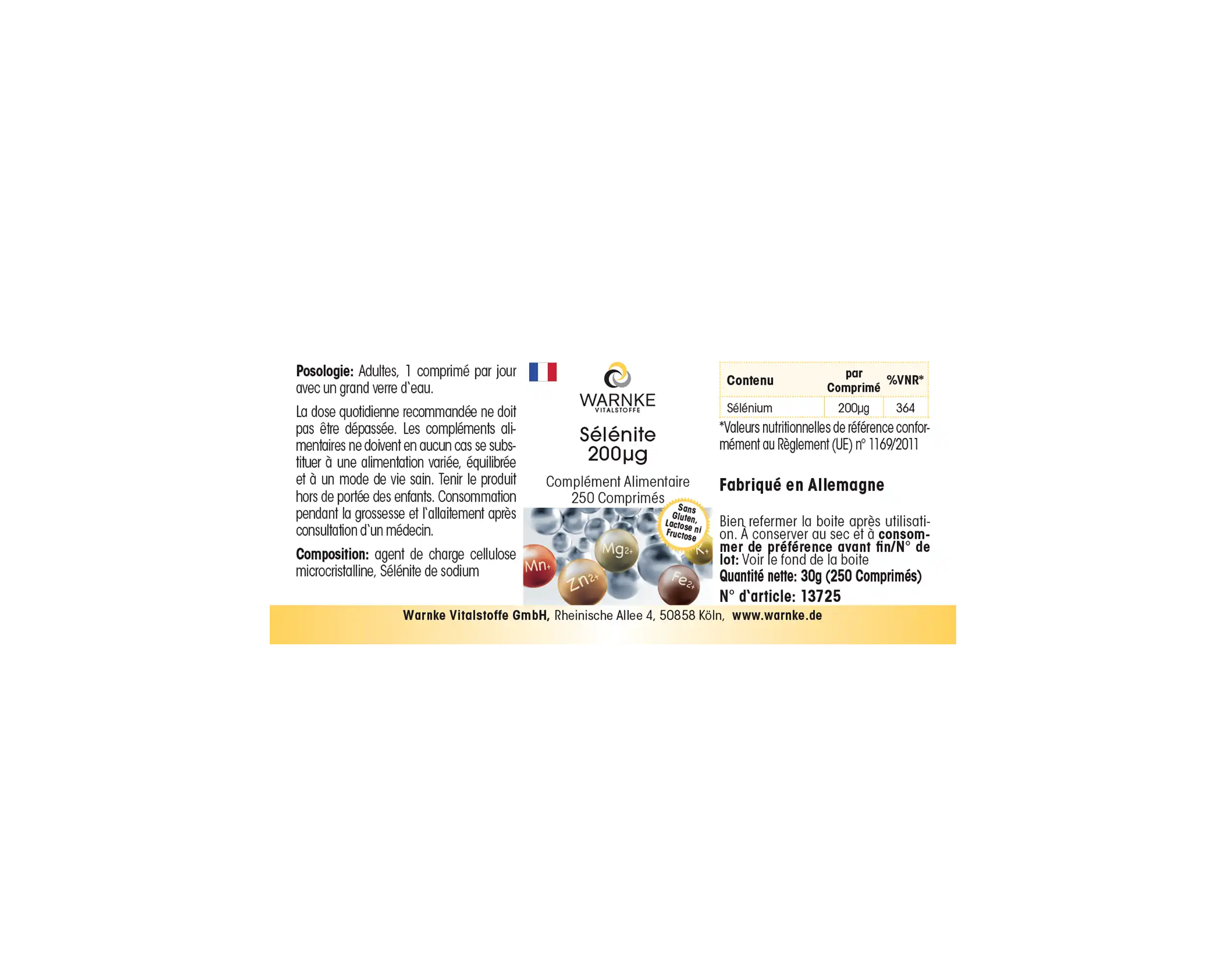 Produktinformationen "Selenit 200µg - 250 Tabletten - für Immunsystem, Schilddrüse, Haare uvm. - Hochdosiert - Vegan | Warnke Vitalstoffe"