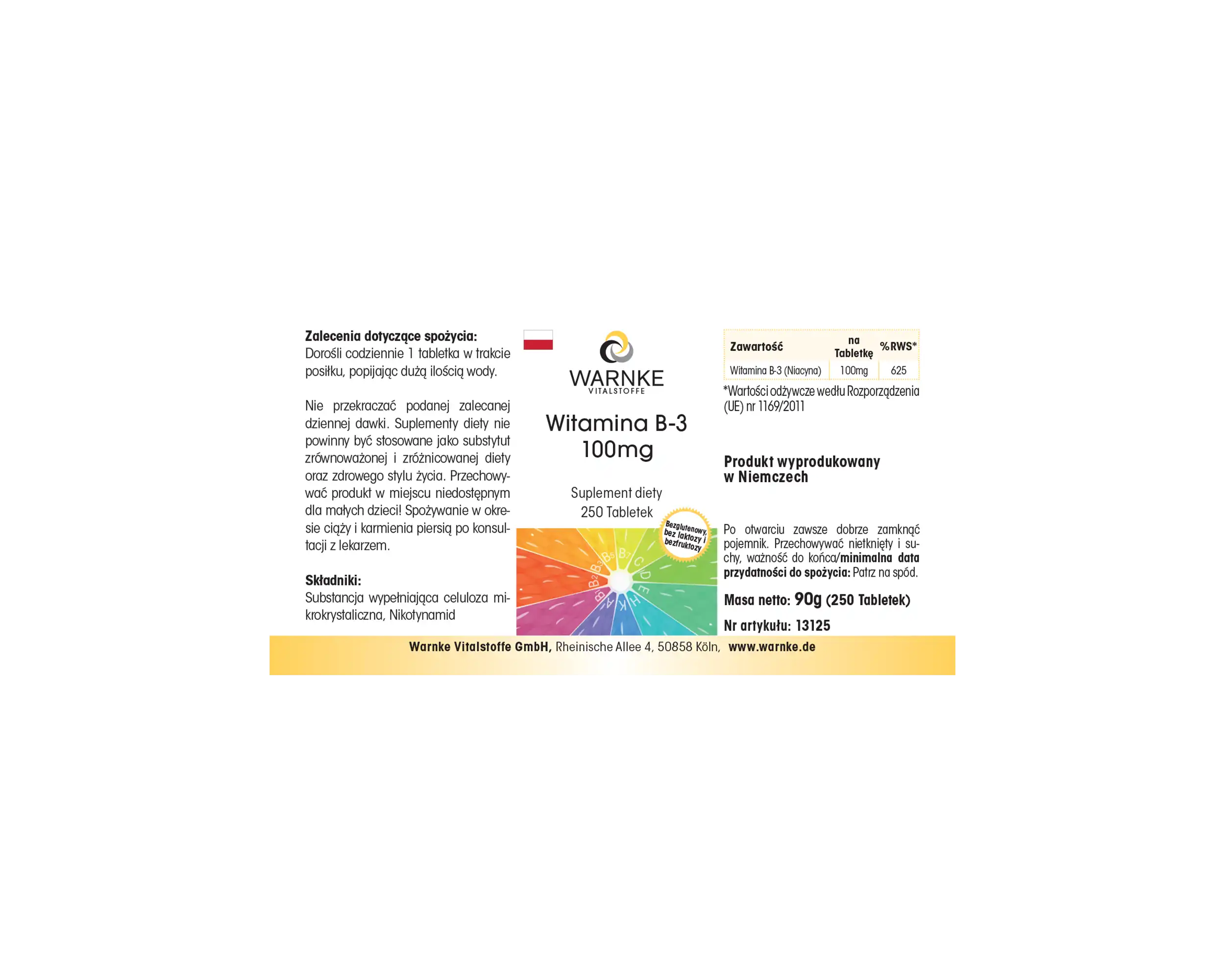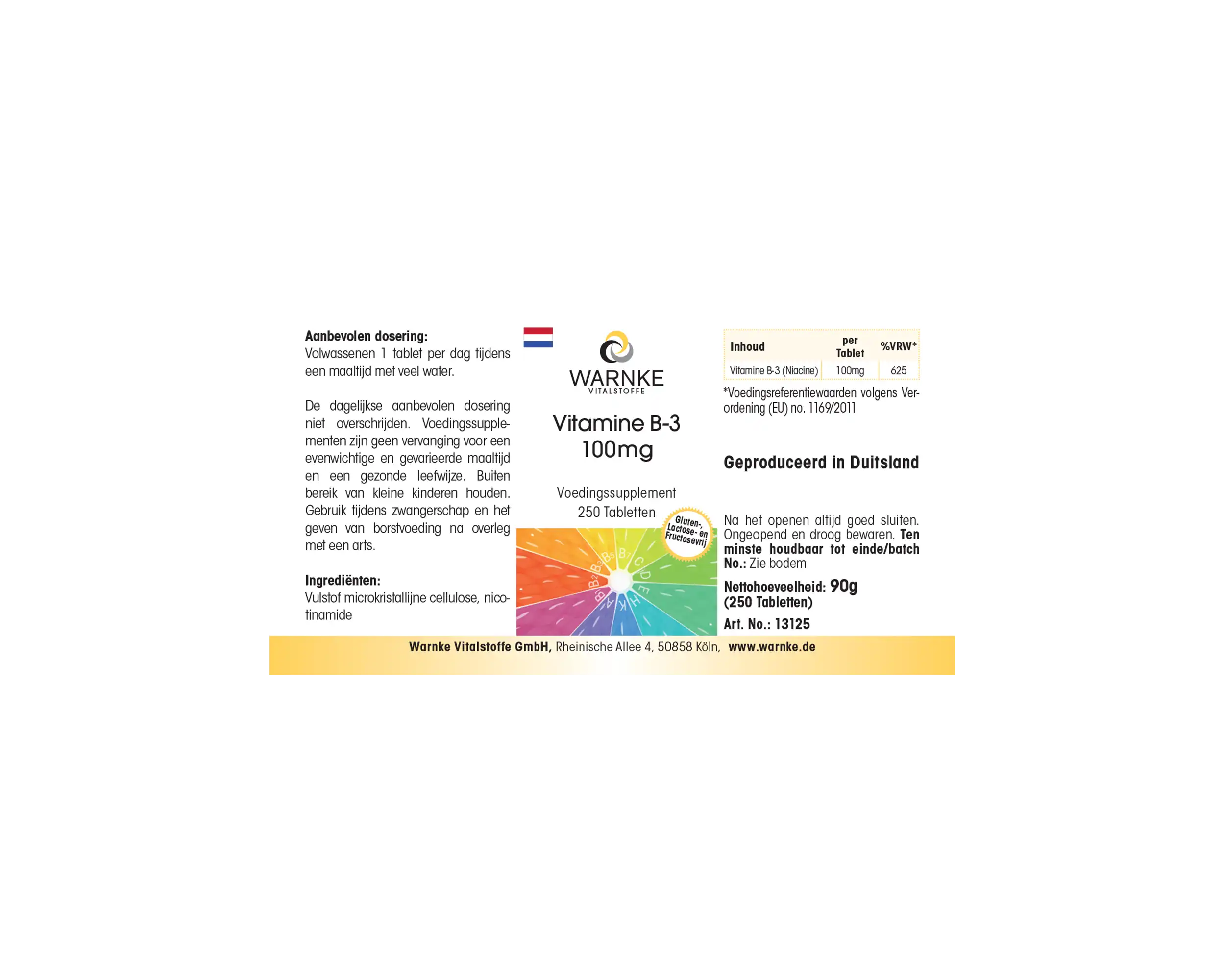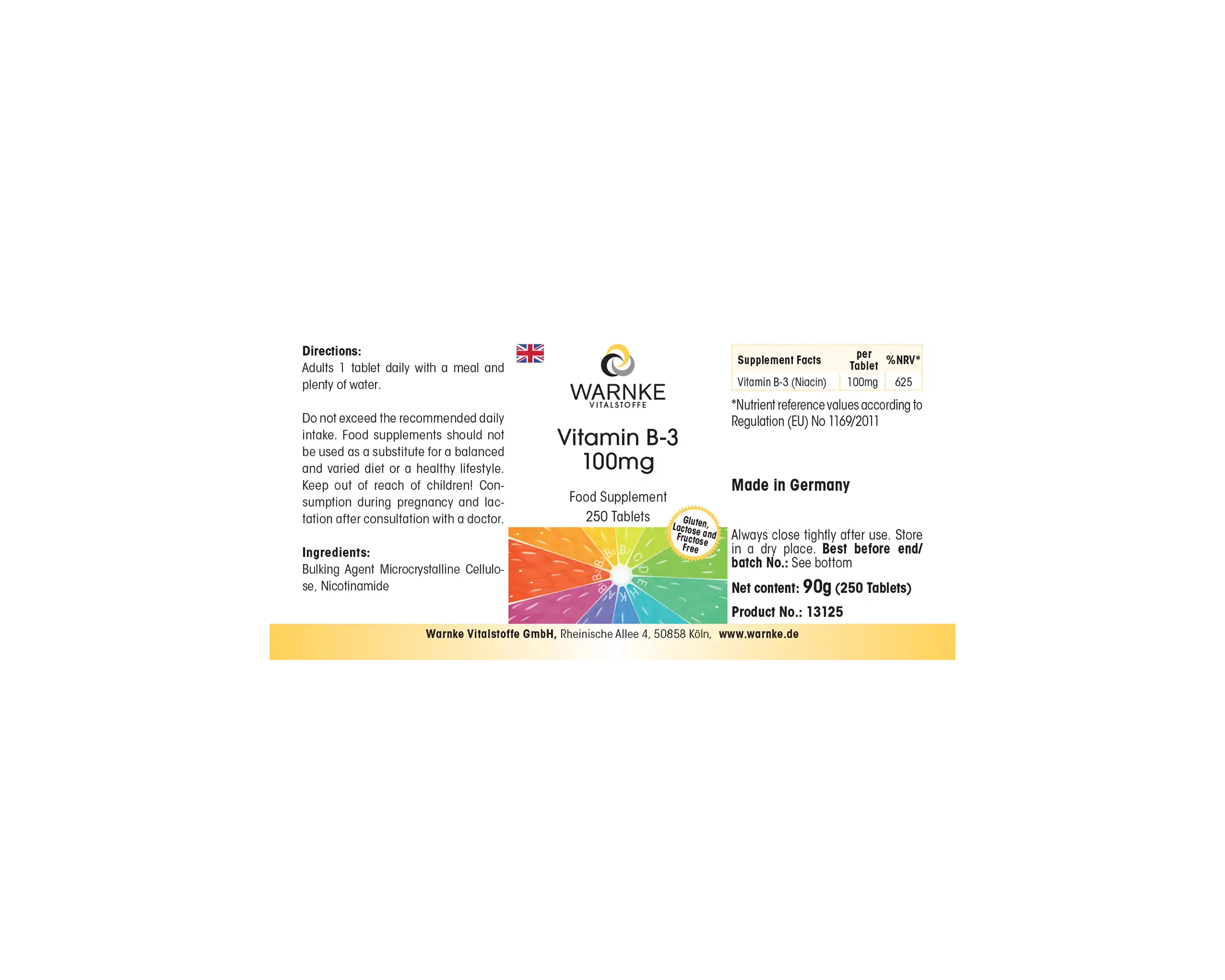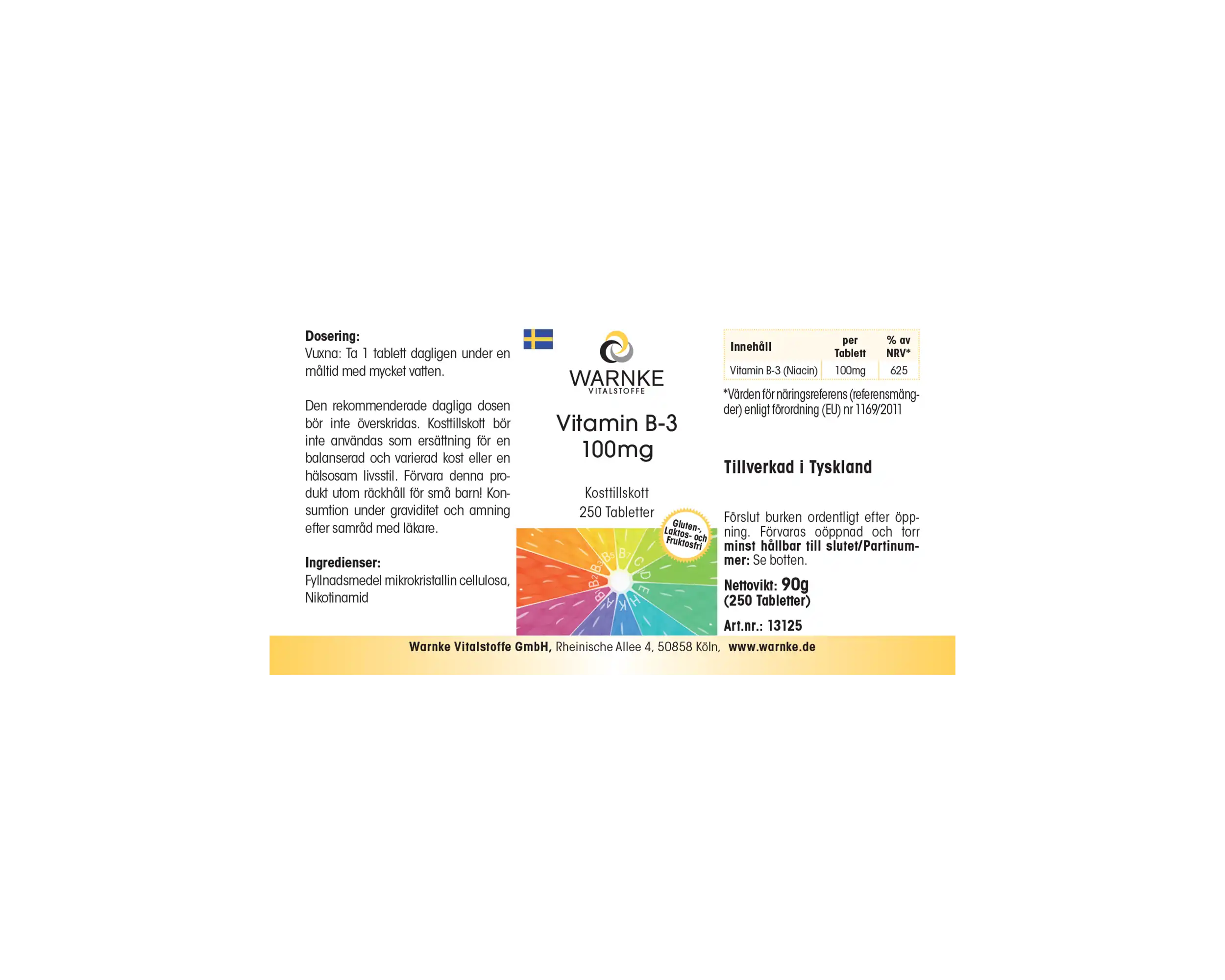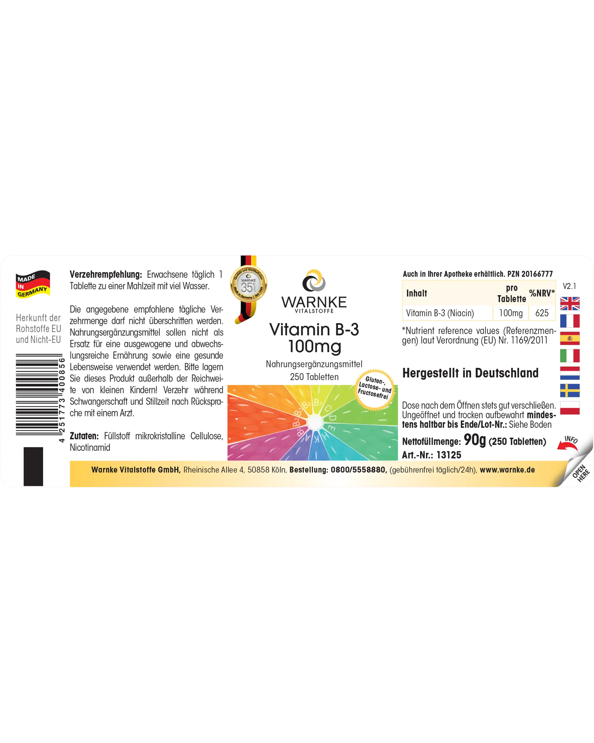 Produktinformationen "Vitamin B-3 100mg - 250 Tabletten - Niacin - für Haut, Nervensystem, Energie uvm. - vegan | Warnke Vitalstoffe"