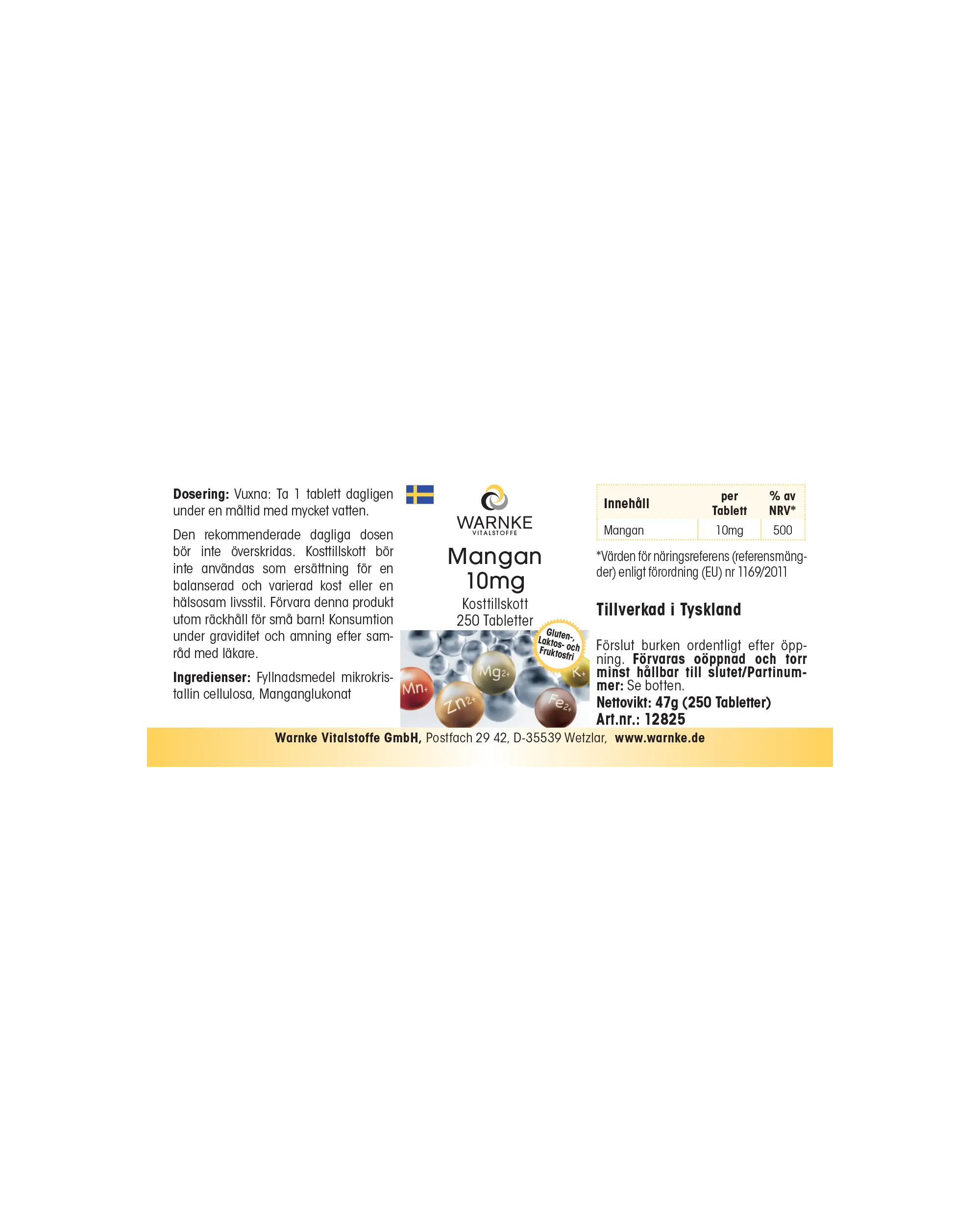 Manganèse 10 mg - 250 comprimés - Pour les os, le métabolisme et bien plus encore. | Warnke Vitalstoffe