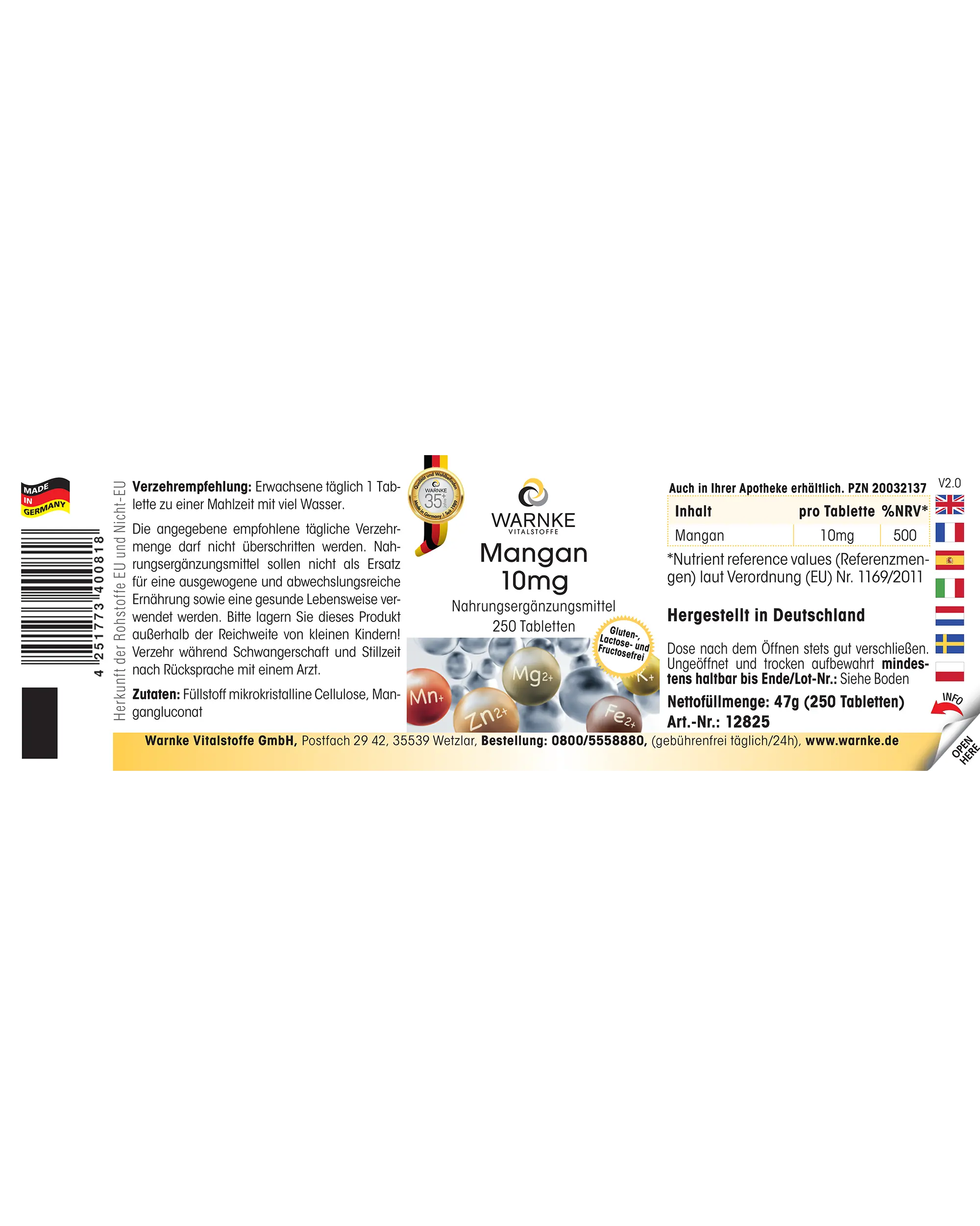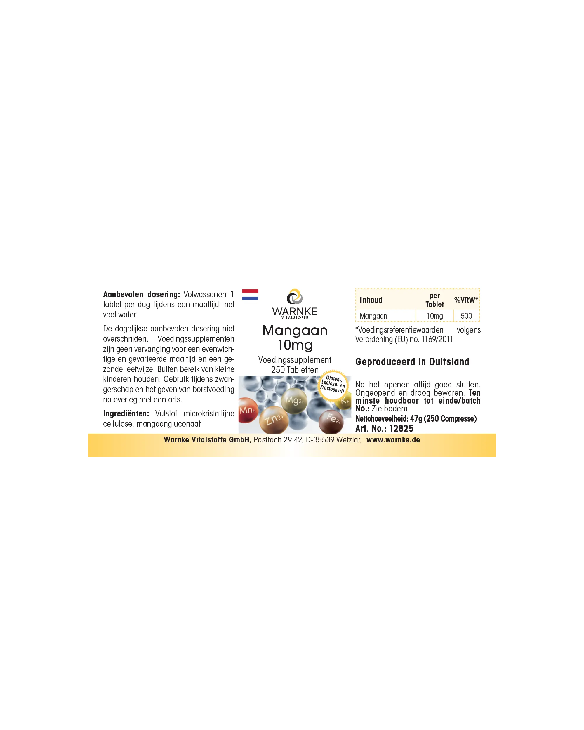 | Mangan / Manganese / Manganèse / Manganeso / Manganese / Mangaan | 10 mg | 500 |