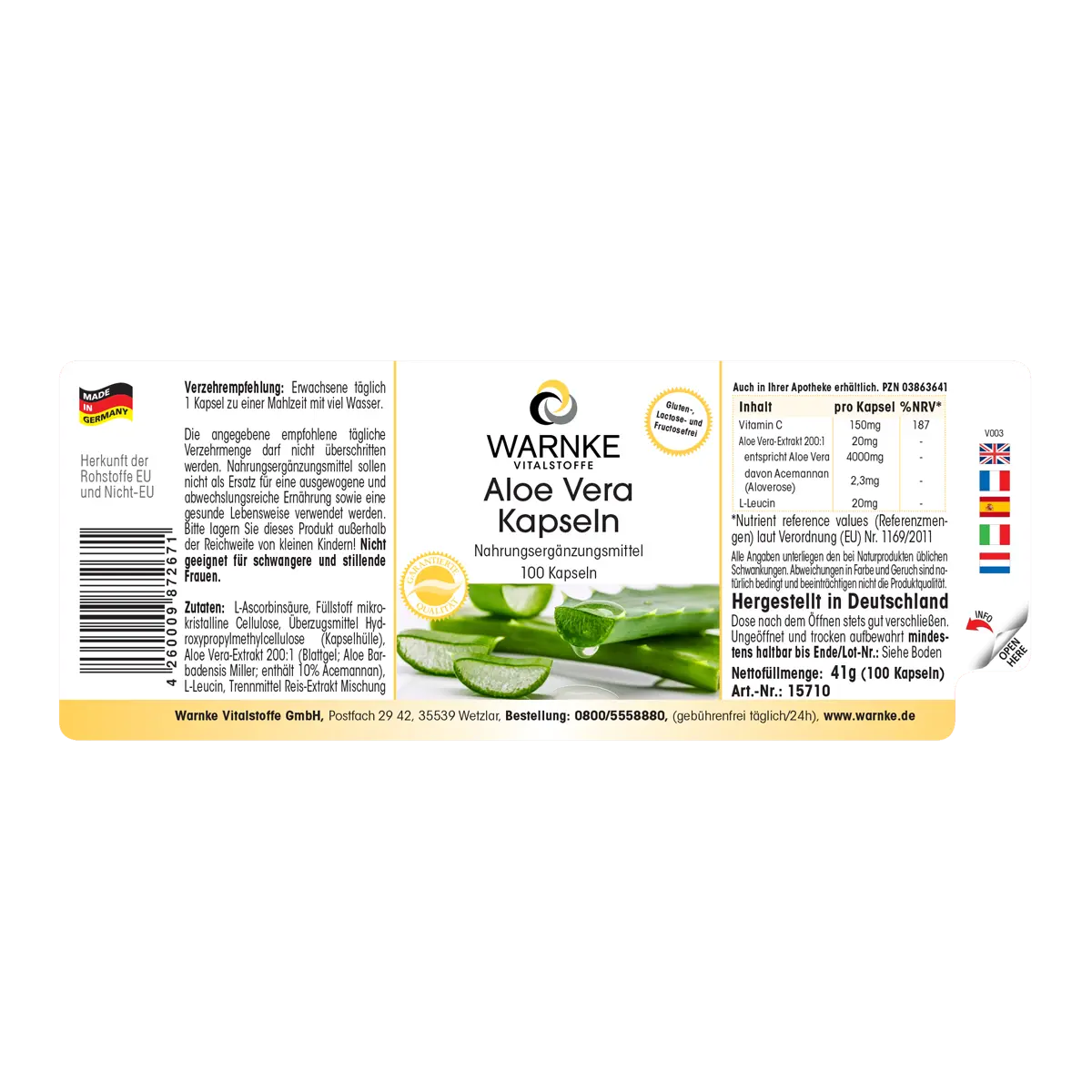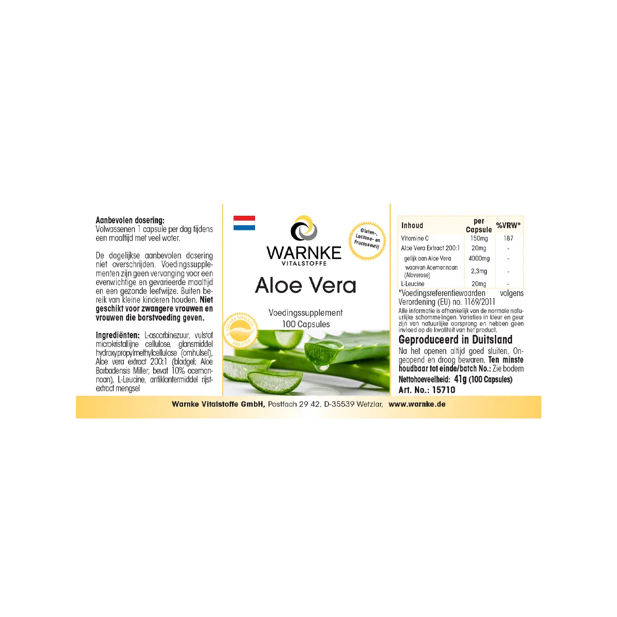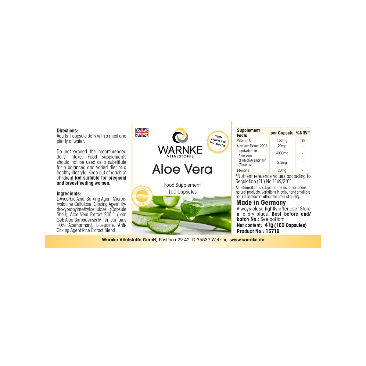 Produktinformationen "Aloe Vera - 100 Kapseln - Aloe Vera Extrakt 200:1 - mit Vitamin C fürs Immunsystem, Kollagenbildung uvm. | Warnke Vitalstoffe"