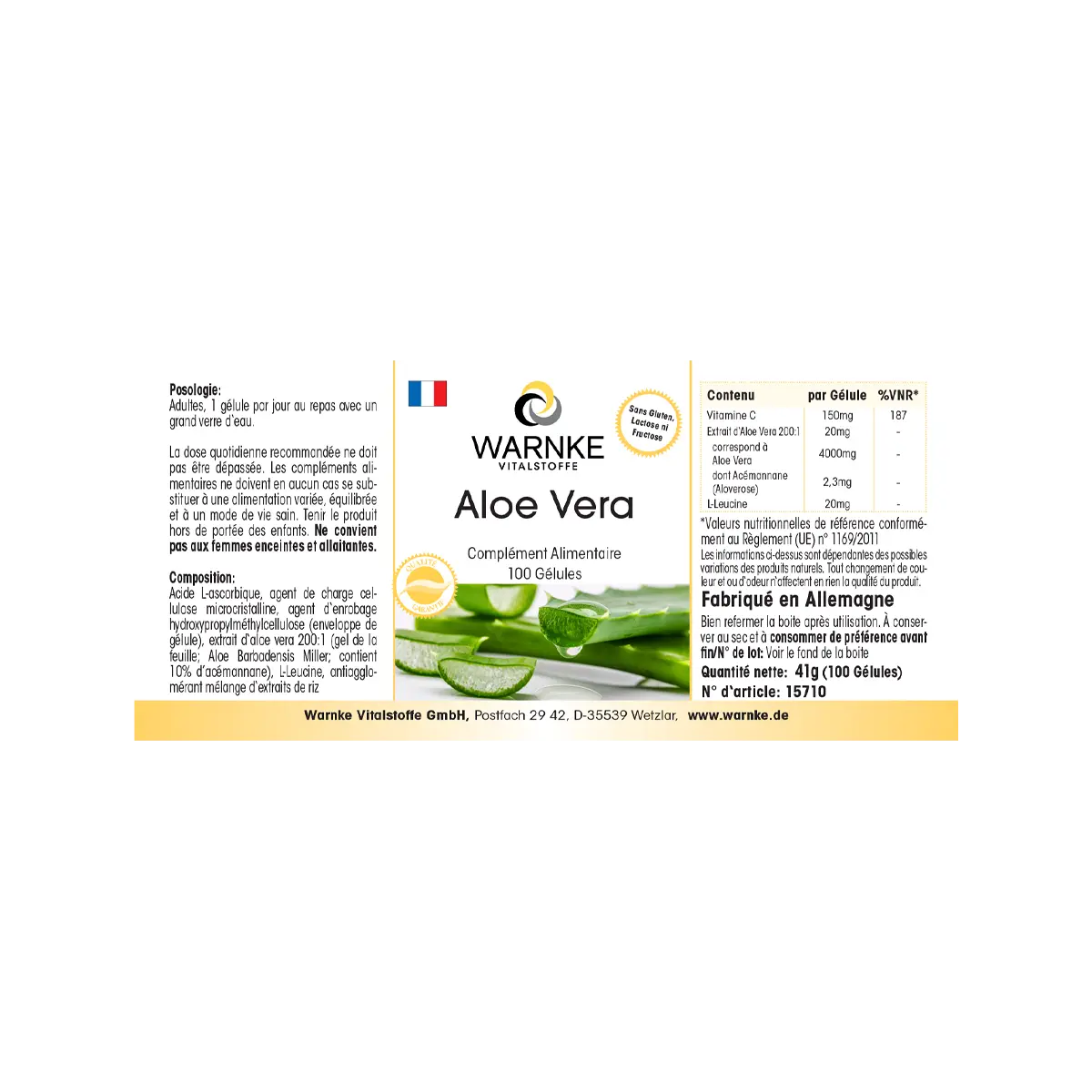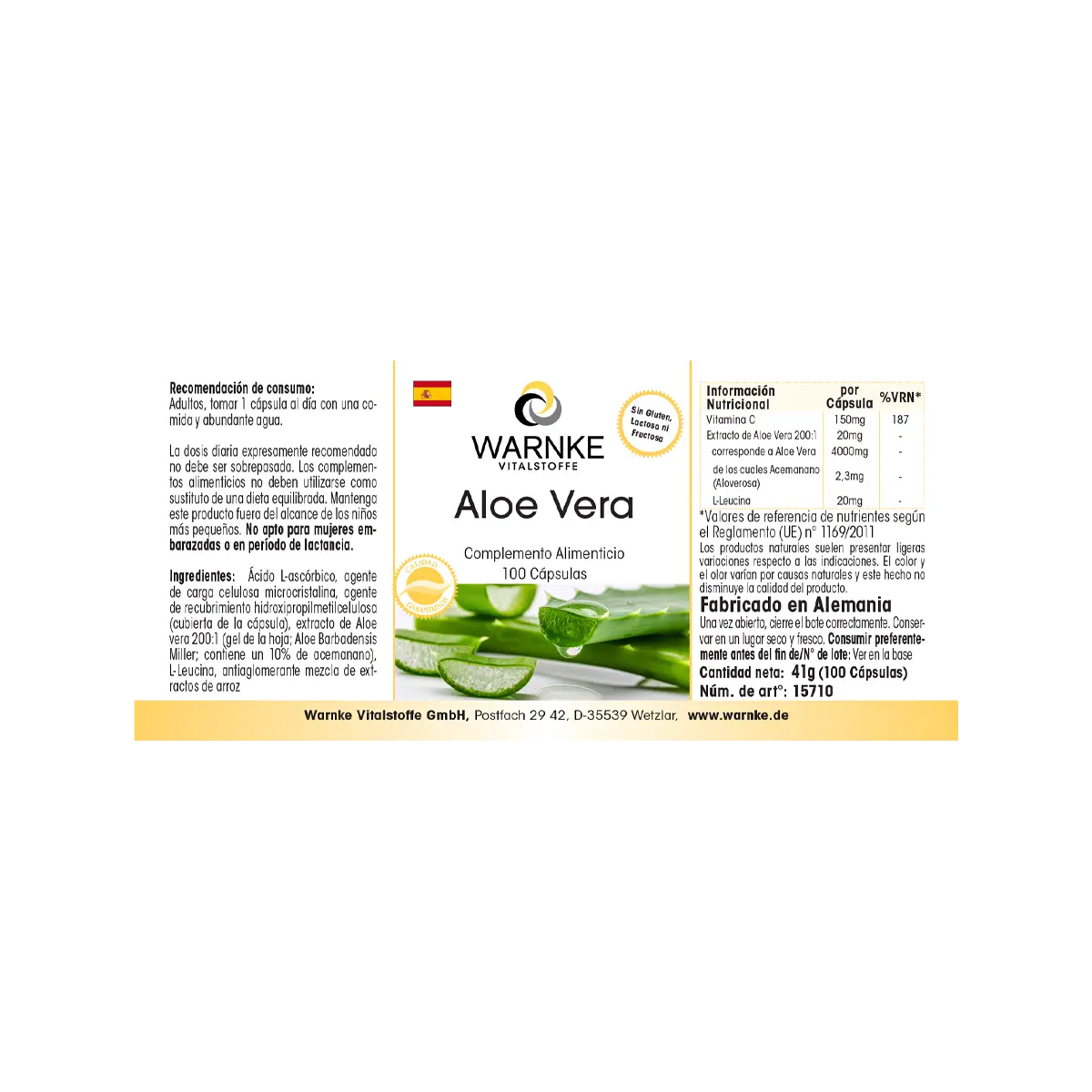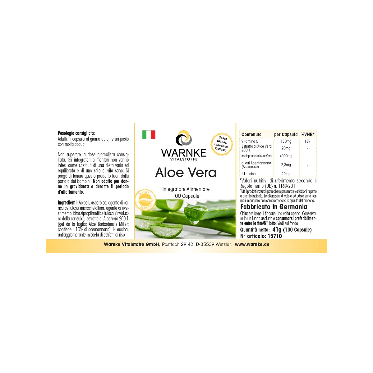 Produktinformationen "Aloe Vera - 100 Kapseln - Aloe Vera Extrakt 200:1 - mit Vitamin C fürs Immunsystem, Kollagenbildung uvm. | Warnke Vitalstoffe"