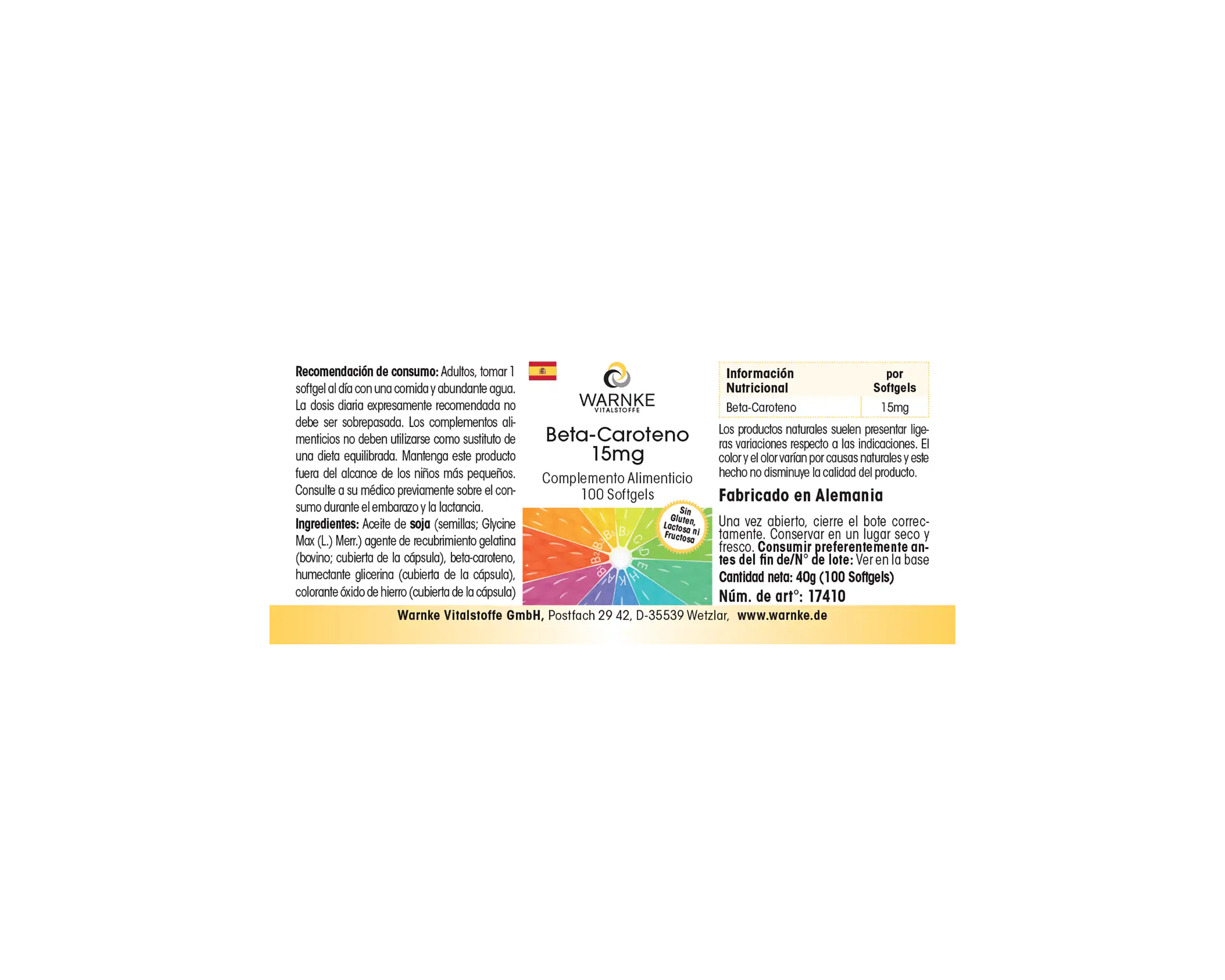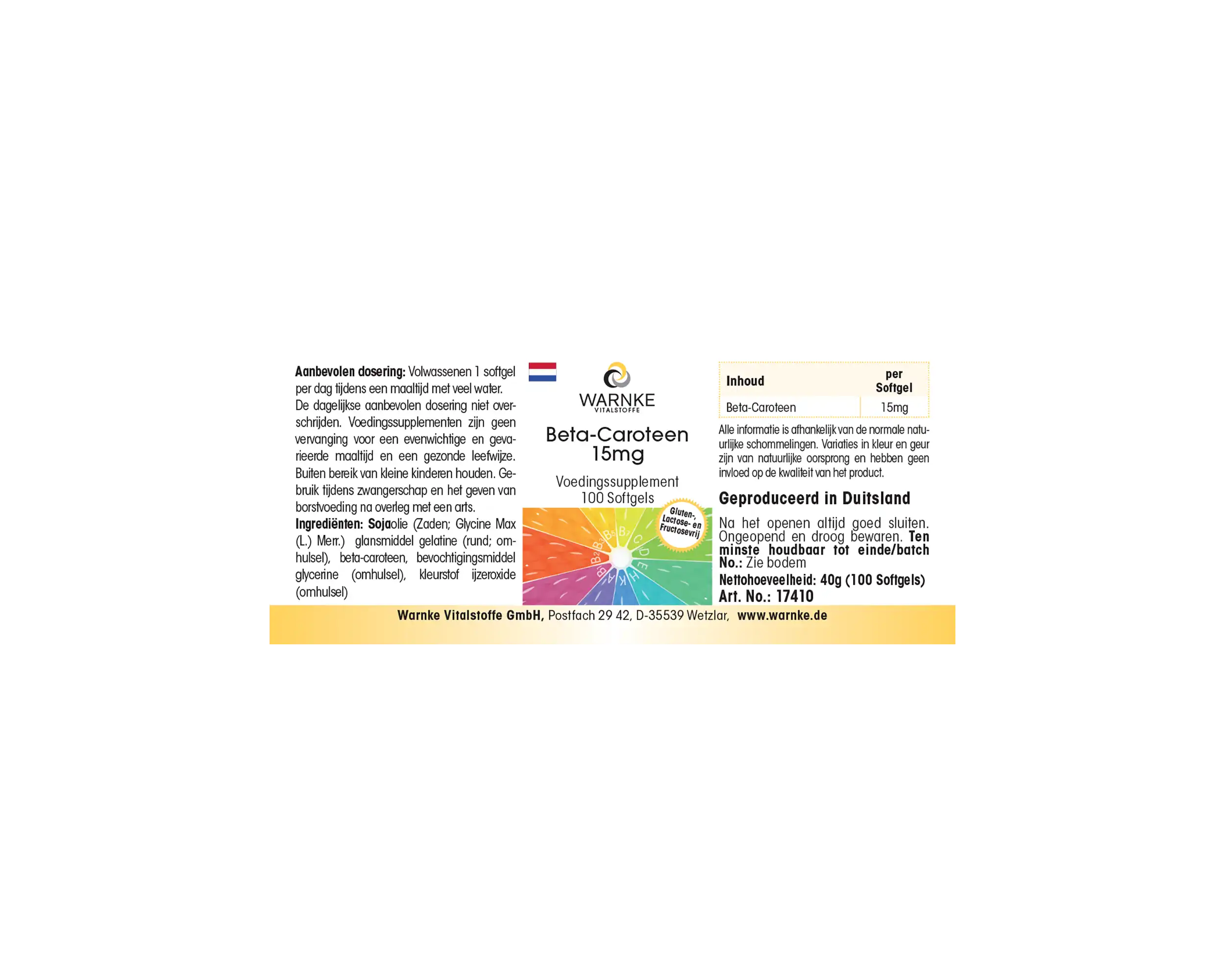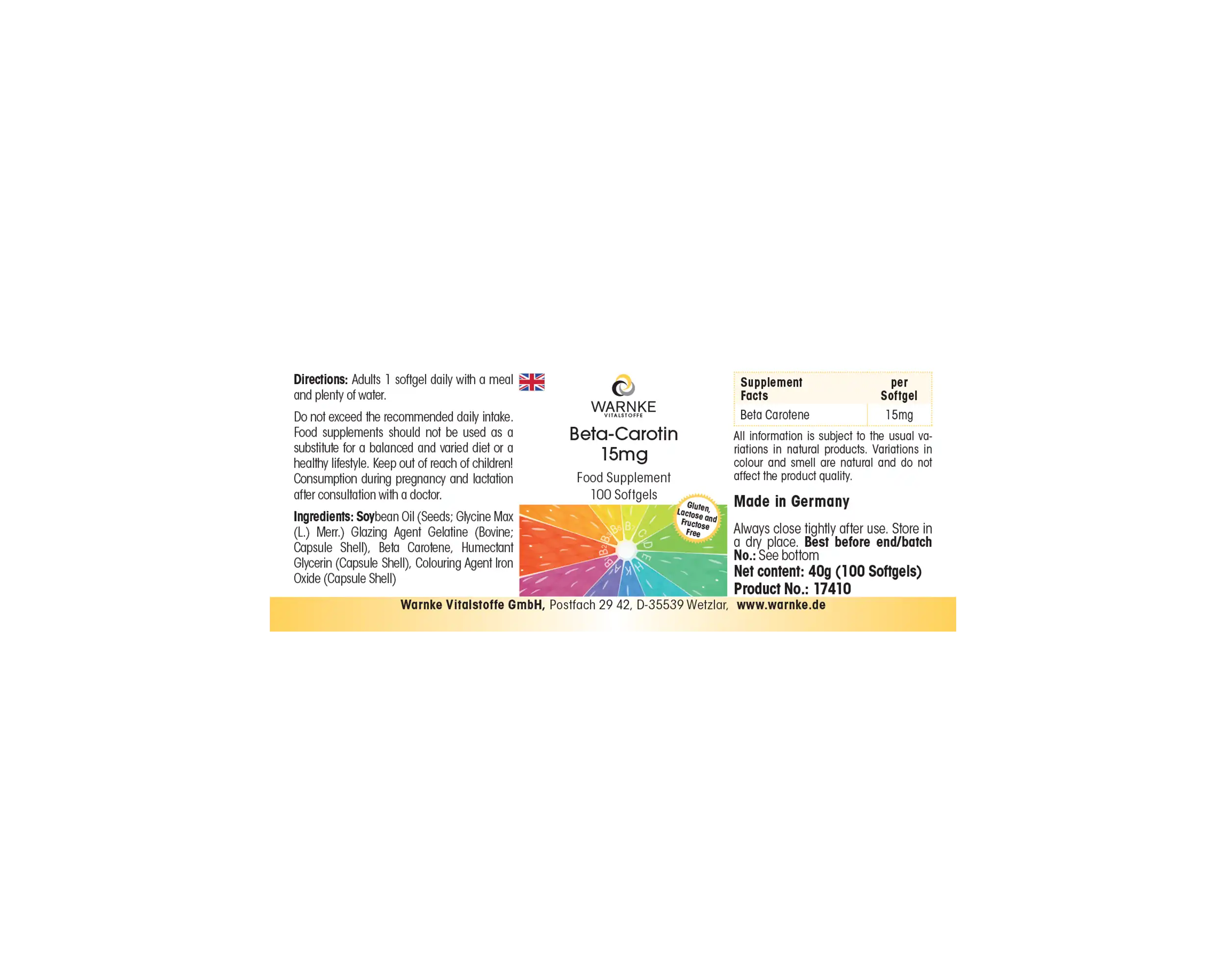 Beta Carotin 15mg - 100 Softgels - Carotinoid, Provitamin A | Warnke Vitalstoffe