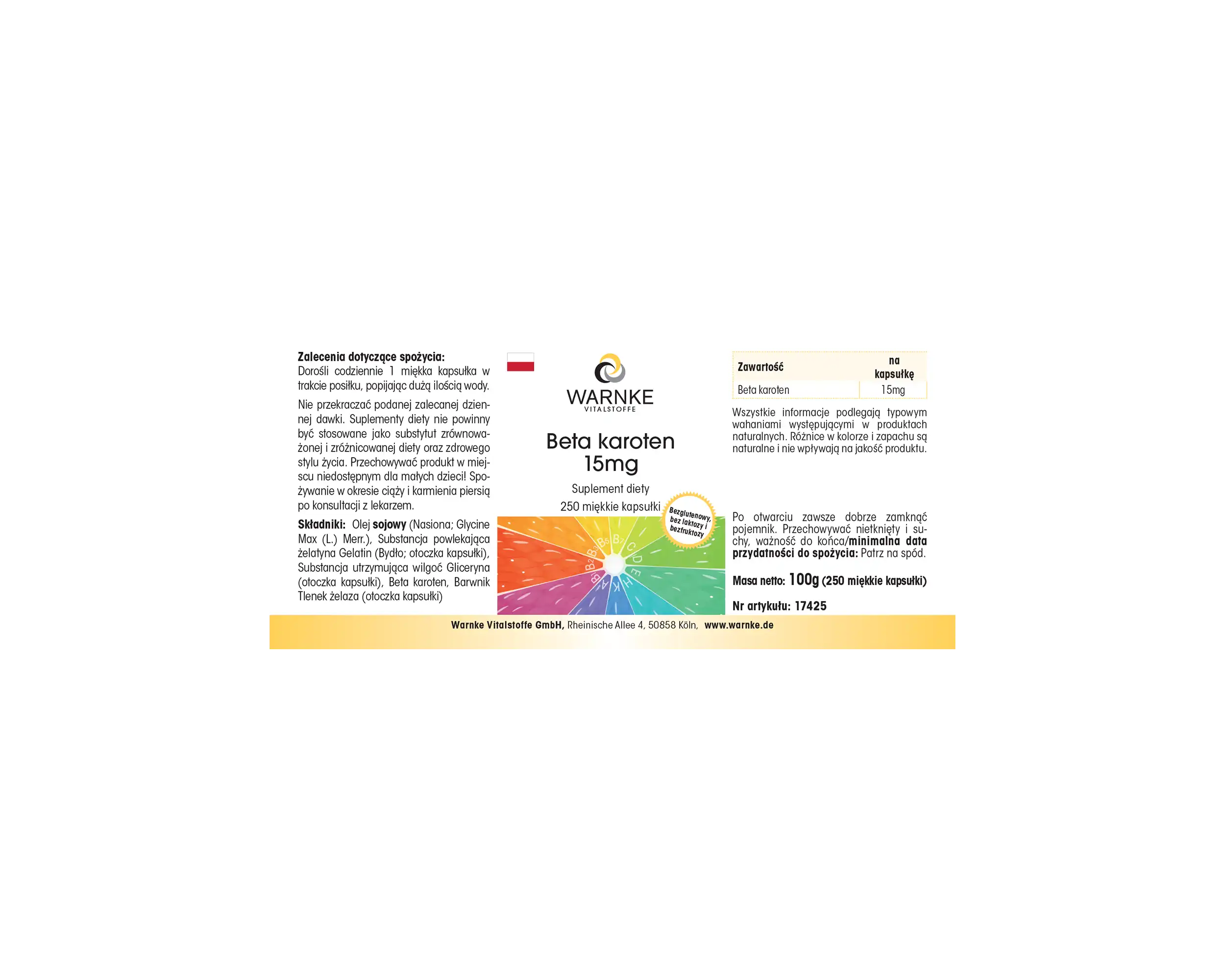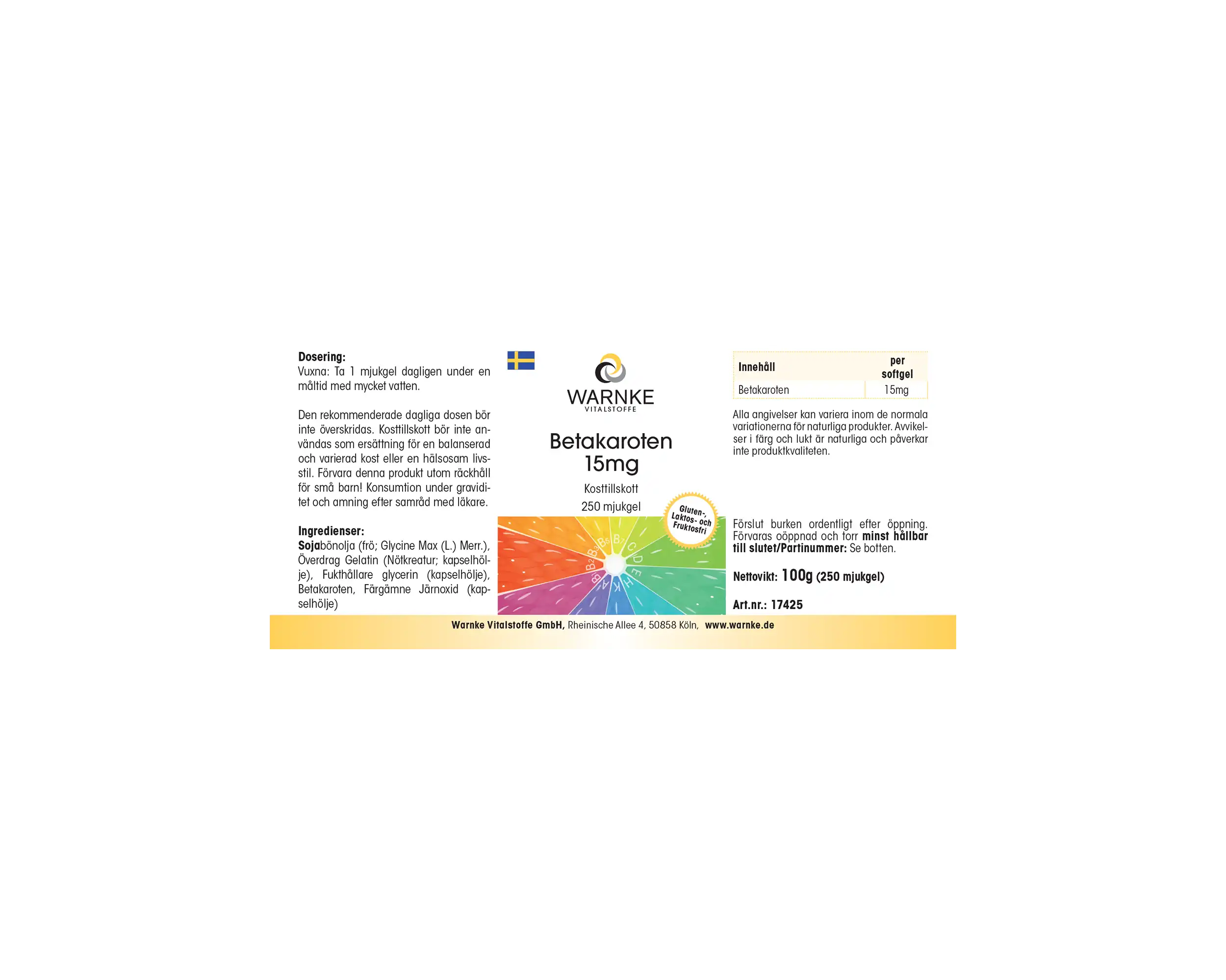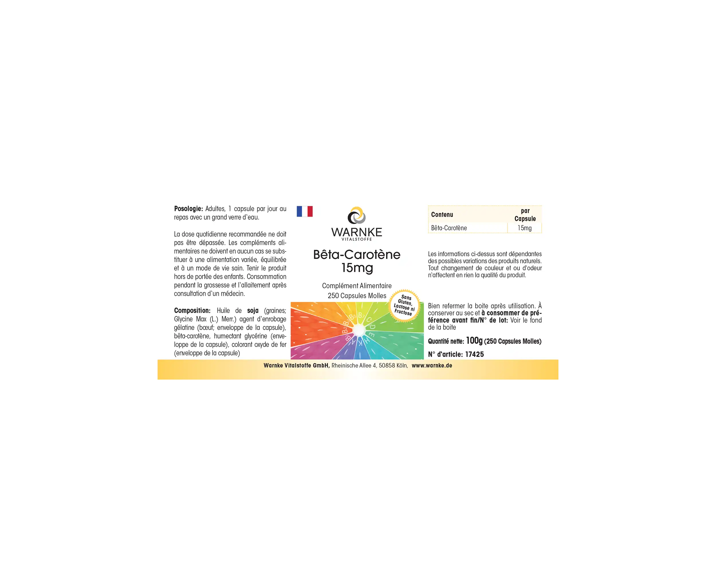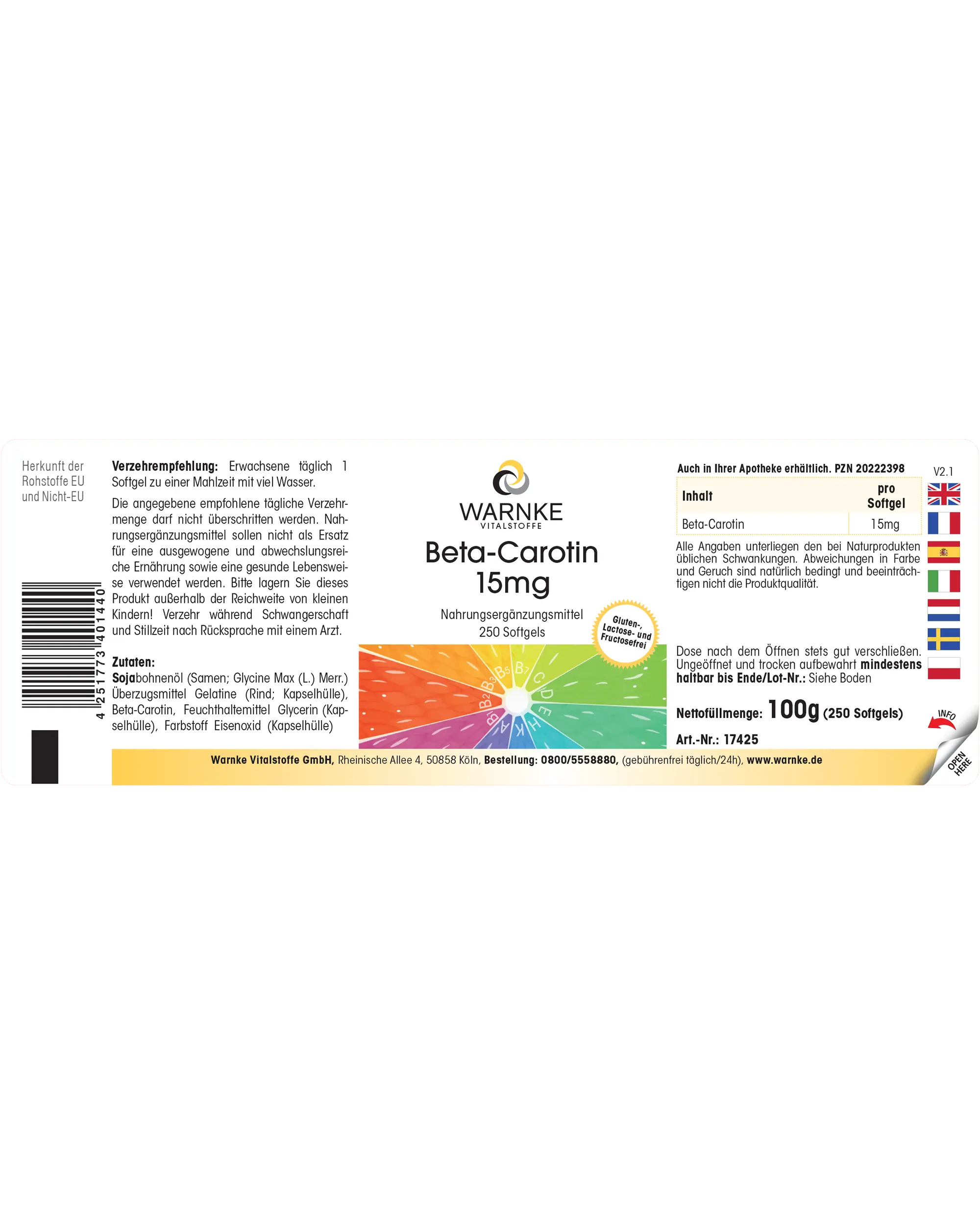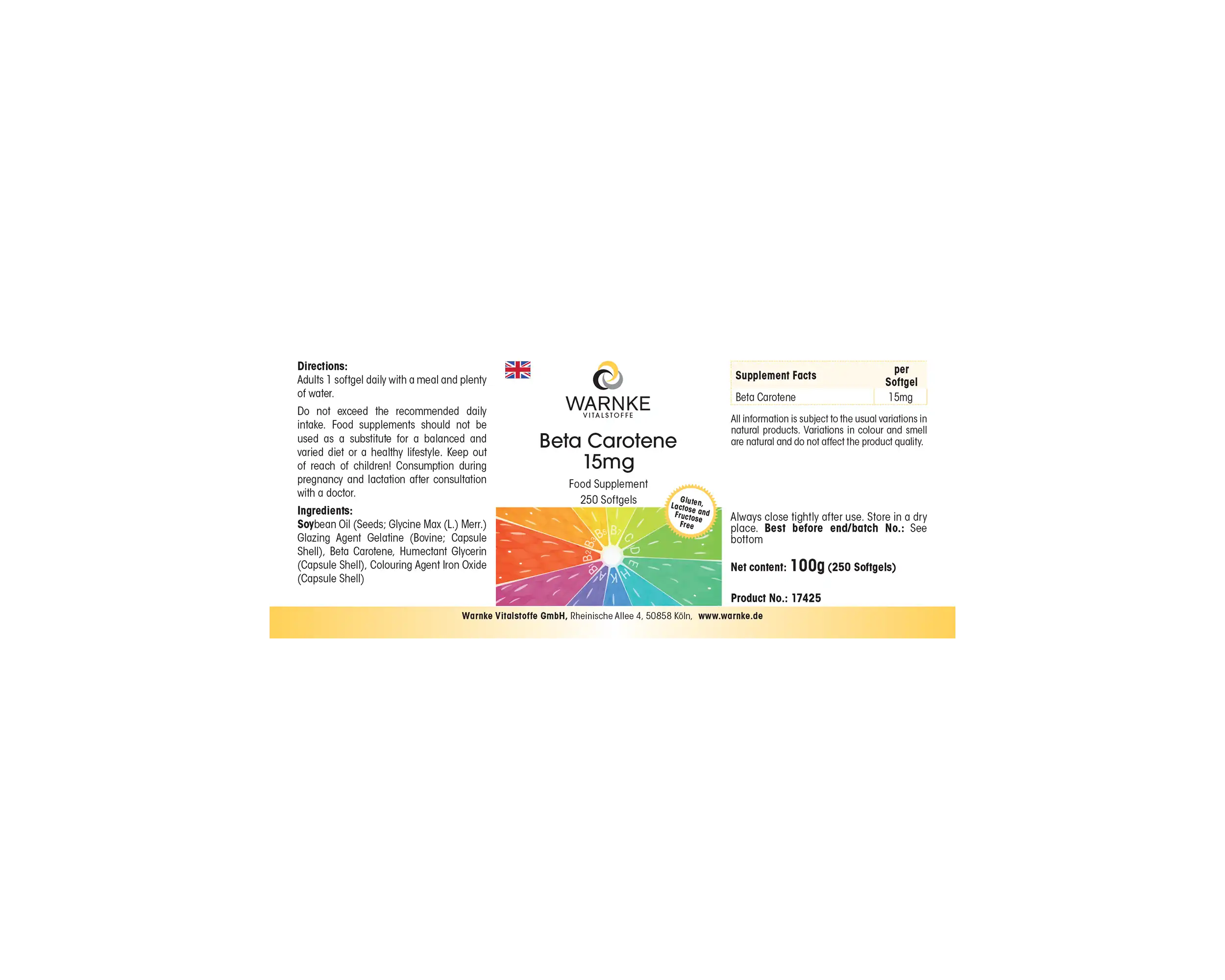 Produktinformationen "Beta-Carotin 15mg - 250 Softgels - Carotinoid, Provitamin A | Warnke Vitalstoffe"