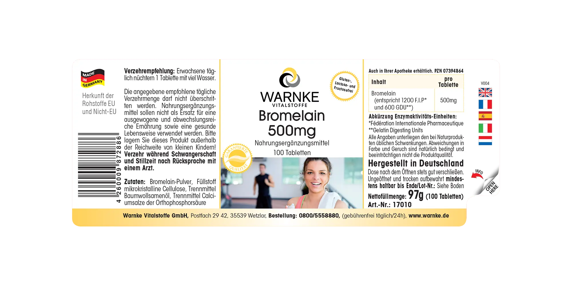 Produktinformationen "Bromelain 500mg (1200 F.I.P.) - 100 Tabletten - Ananasenzym - Hochdosiert & Vegan | Warnke Vitalstoffe"