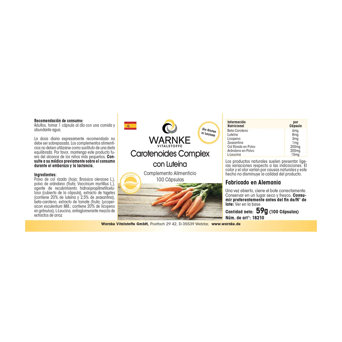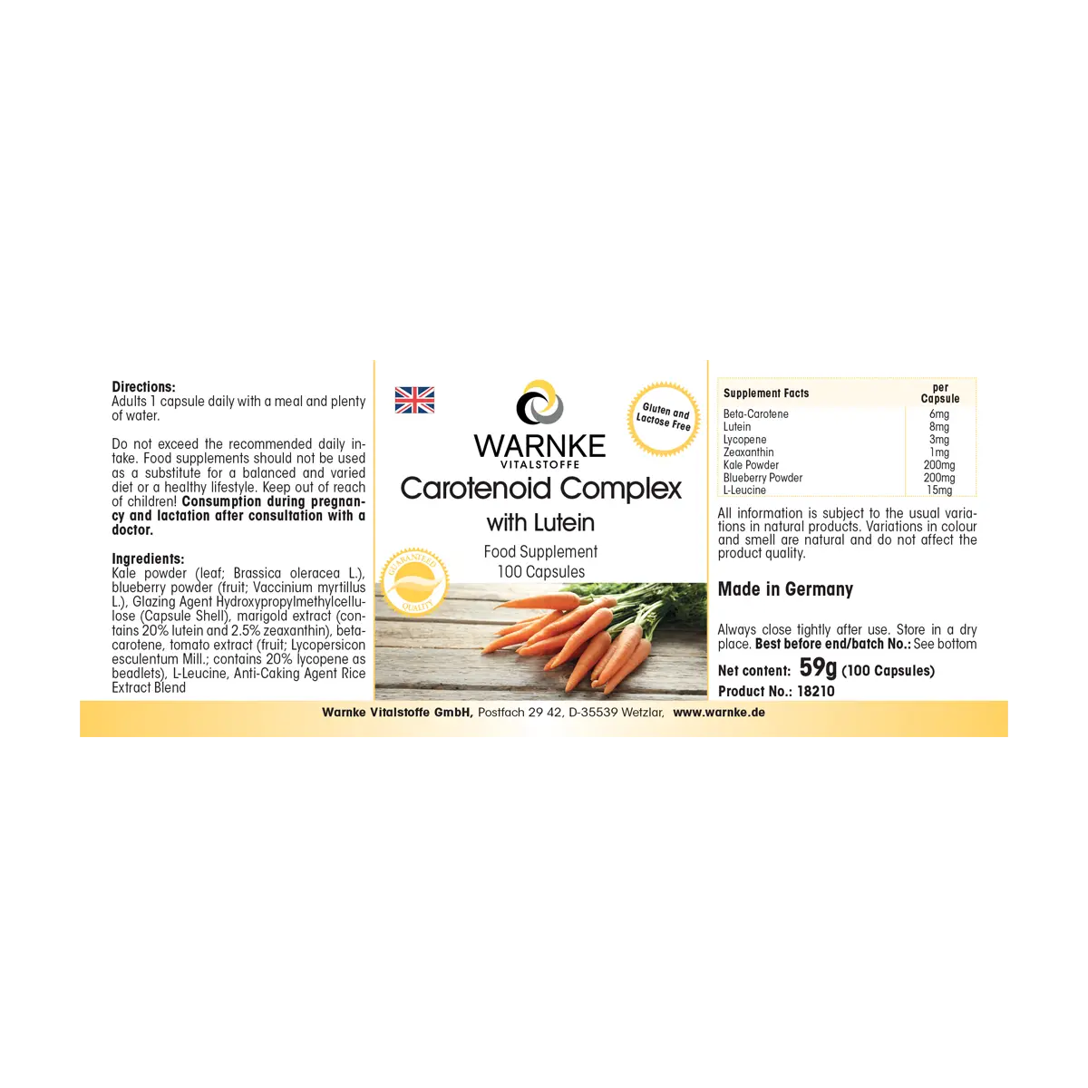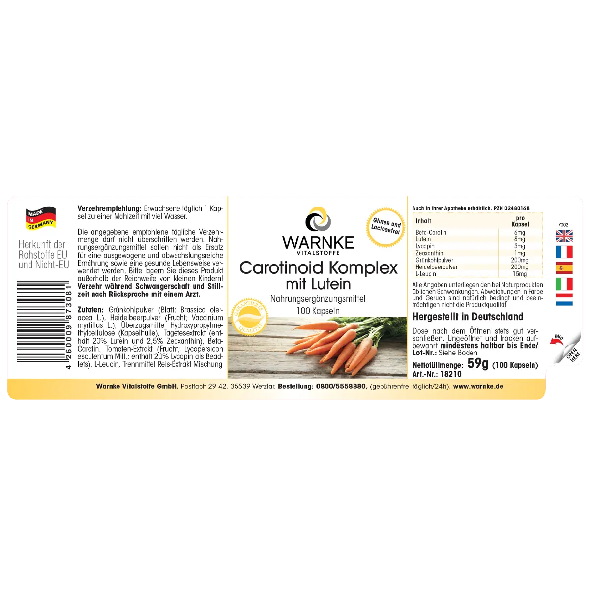 Carotinoid Komplex mit Lutein - 100 Kapseln - mit Zeaxanthin, Beta-Carotin, Lycopin - Vegan | Warnke Vitalstoffe