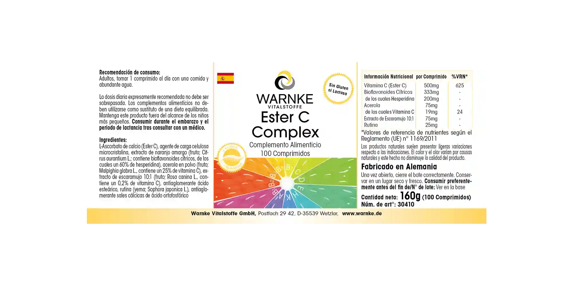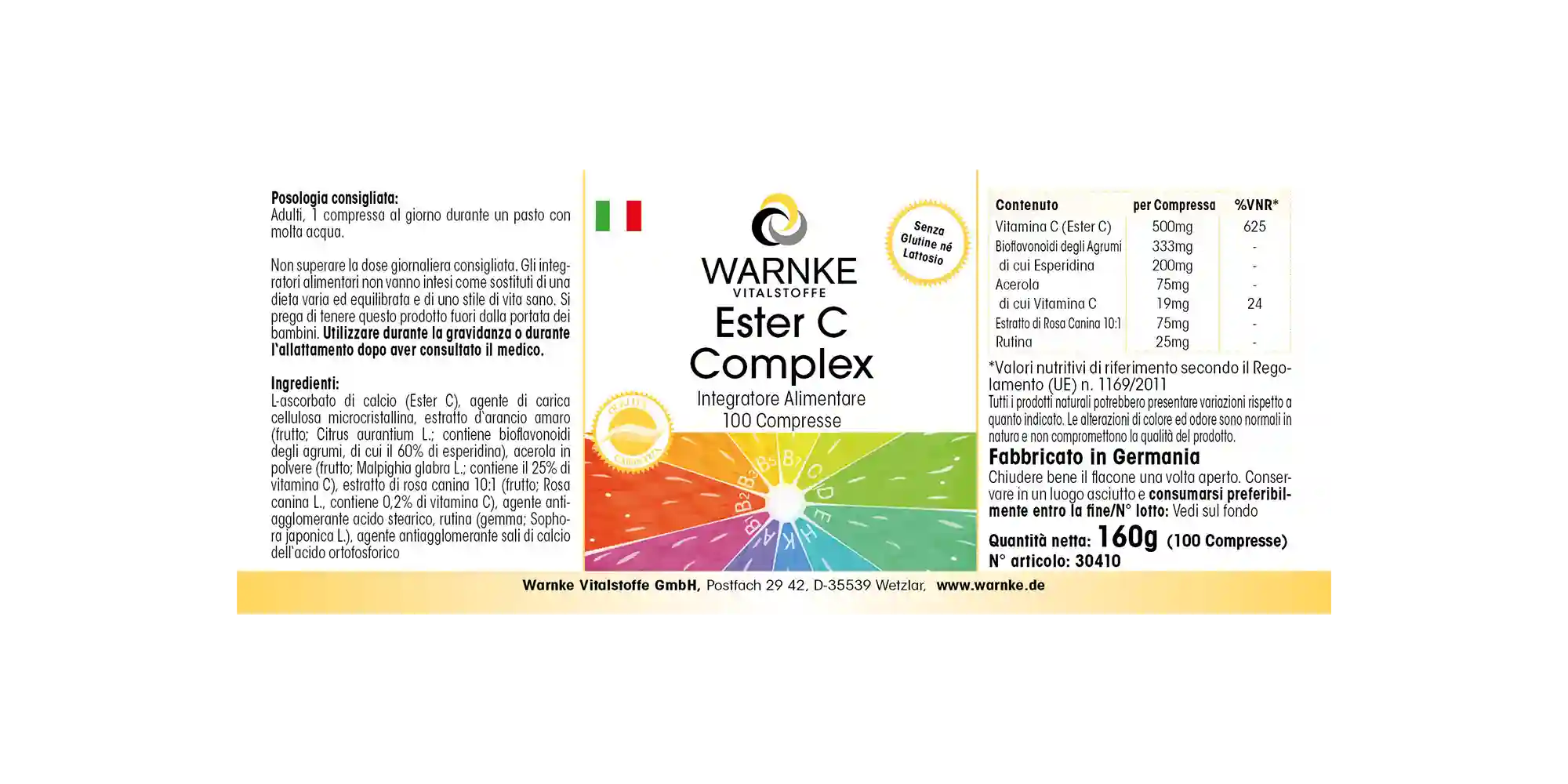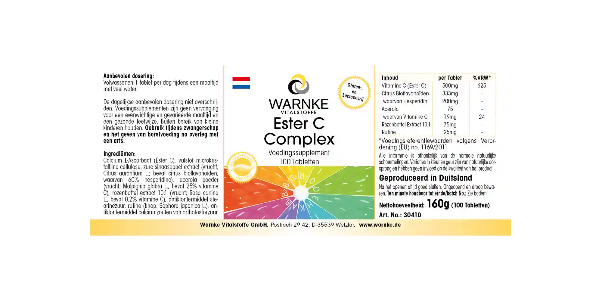 Produktinformationen "Ester C Komplex - 100 Tabletten - mit Vitamin C - für Immunsystem, Kollagenbildung uvm. | Warnke Vitalstoffe"