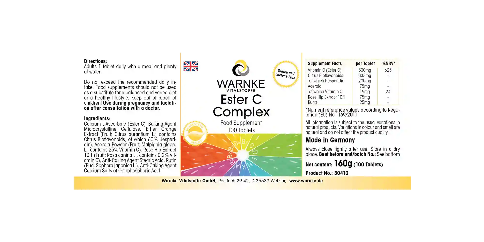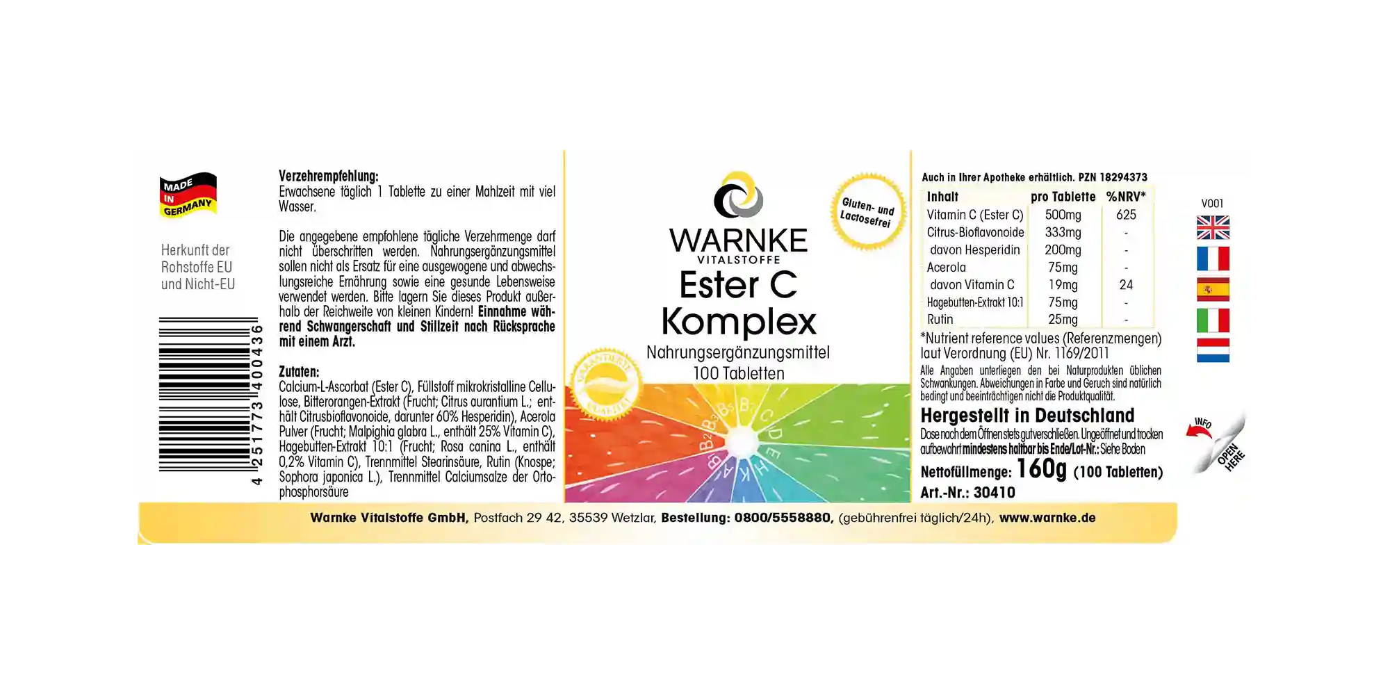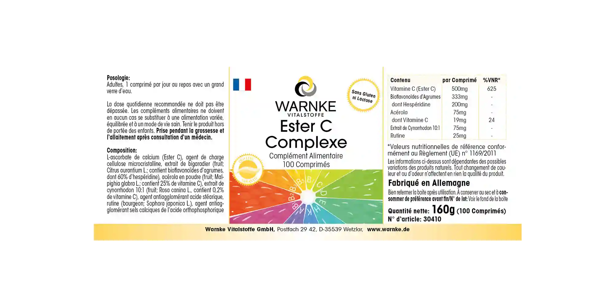 Produktinformationen "Ester C Komplex - 100 Tabletten - mit Vitamin C - für Immunsystem, Kollagenbildung uvm. | Warnke Vitalstoffe"