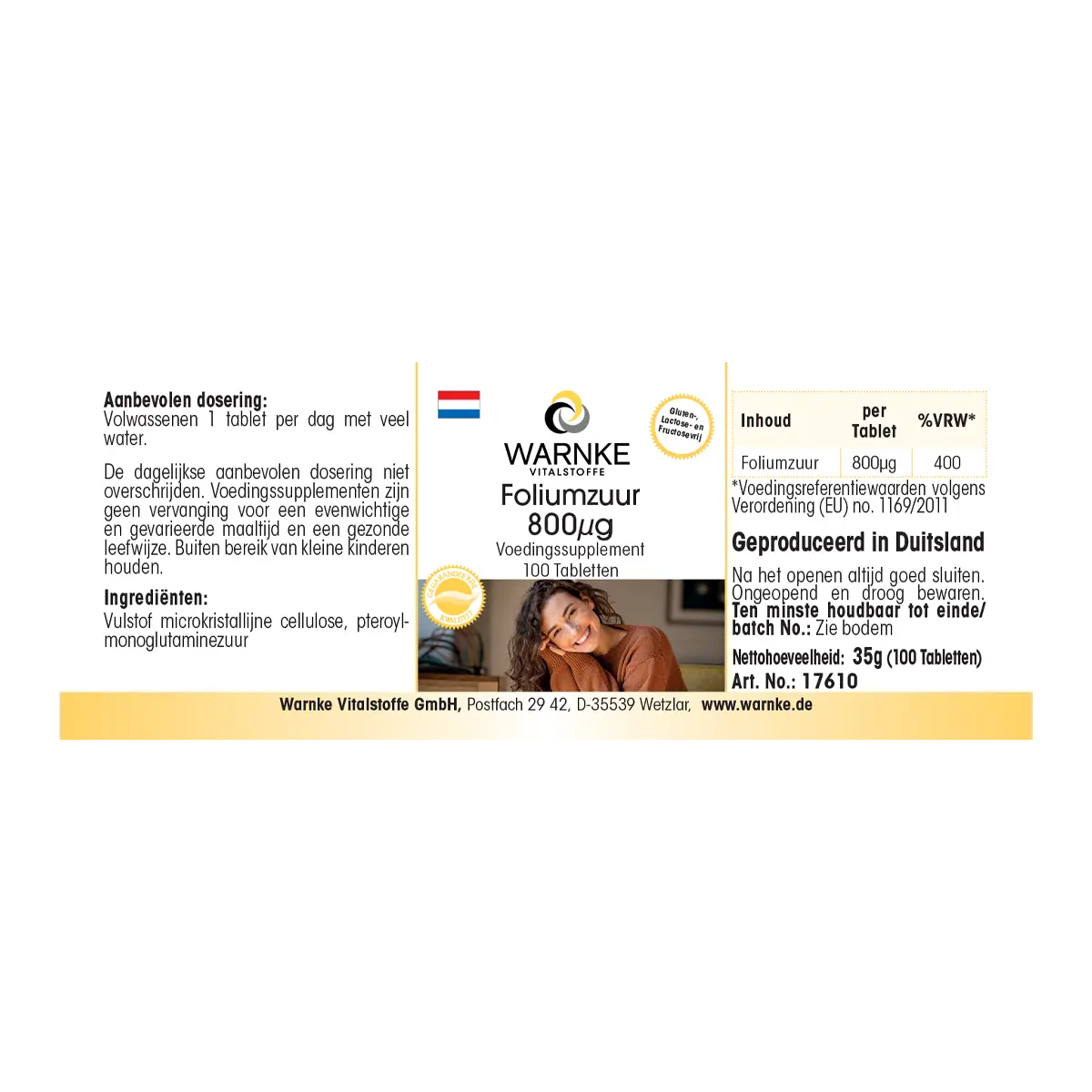 Produktinformationen "Folsäure 800µg - 100 Tabletten - für Schwangerschaft | Warnke Vitalstoffe"