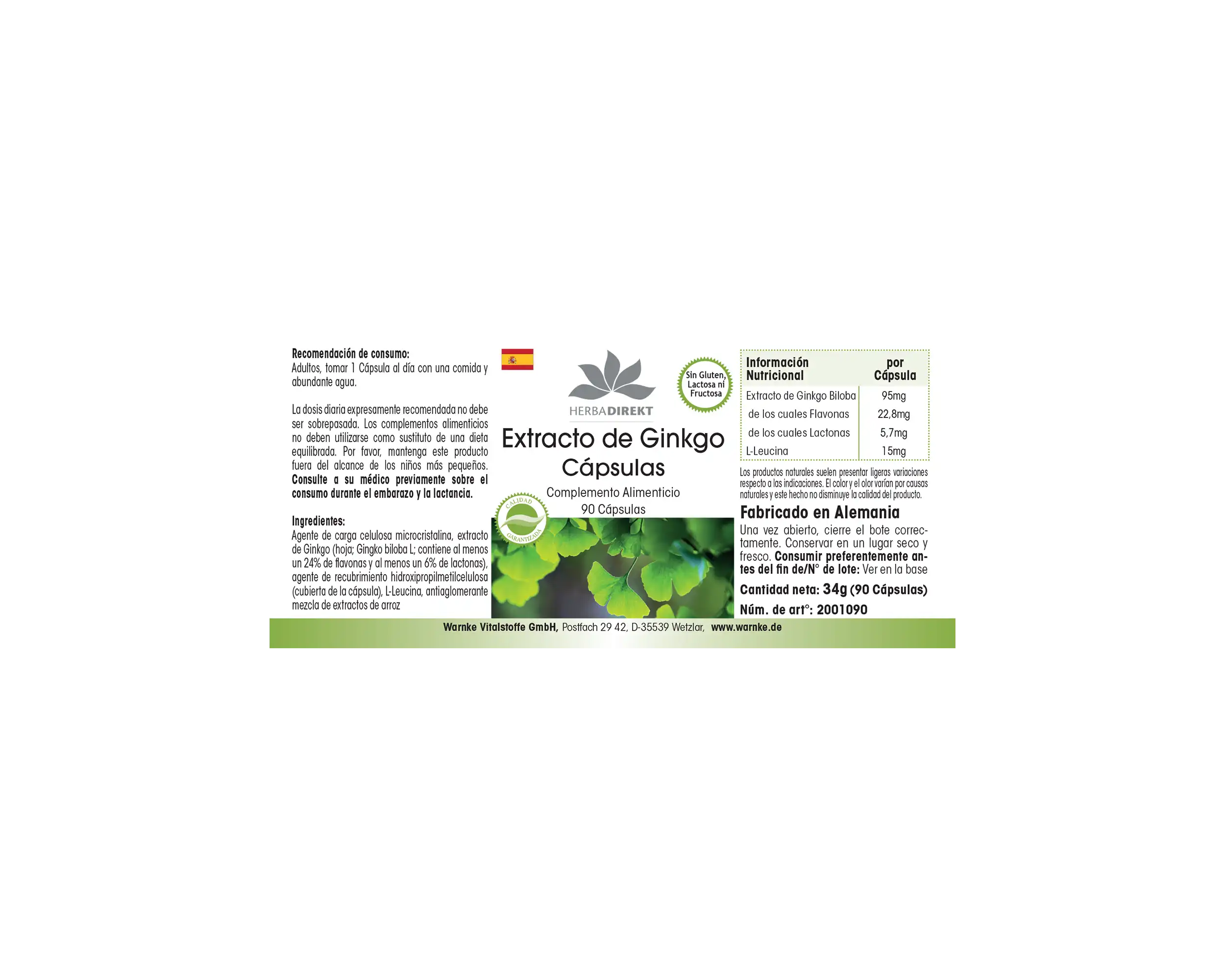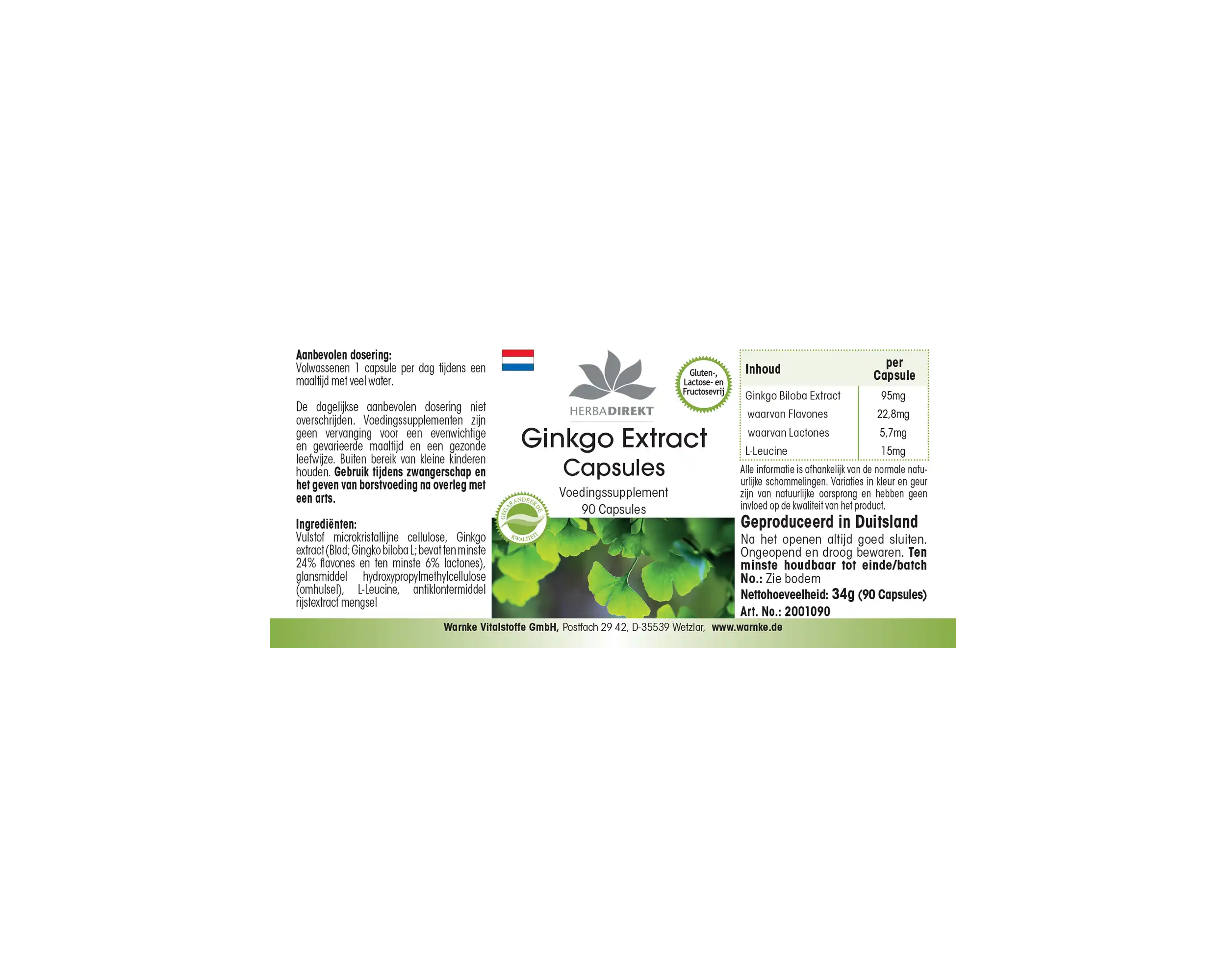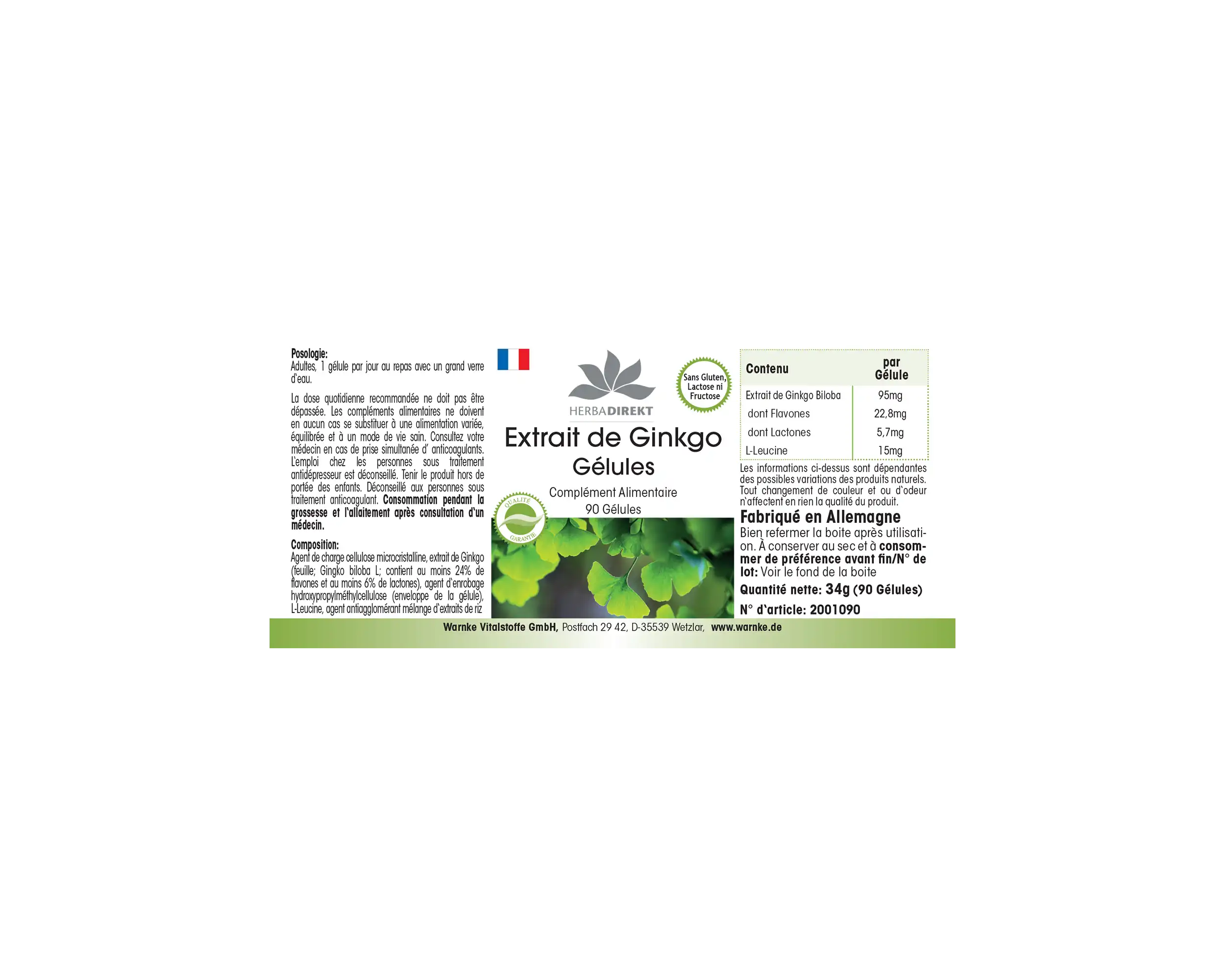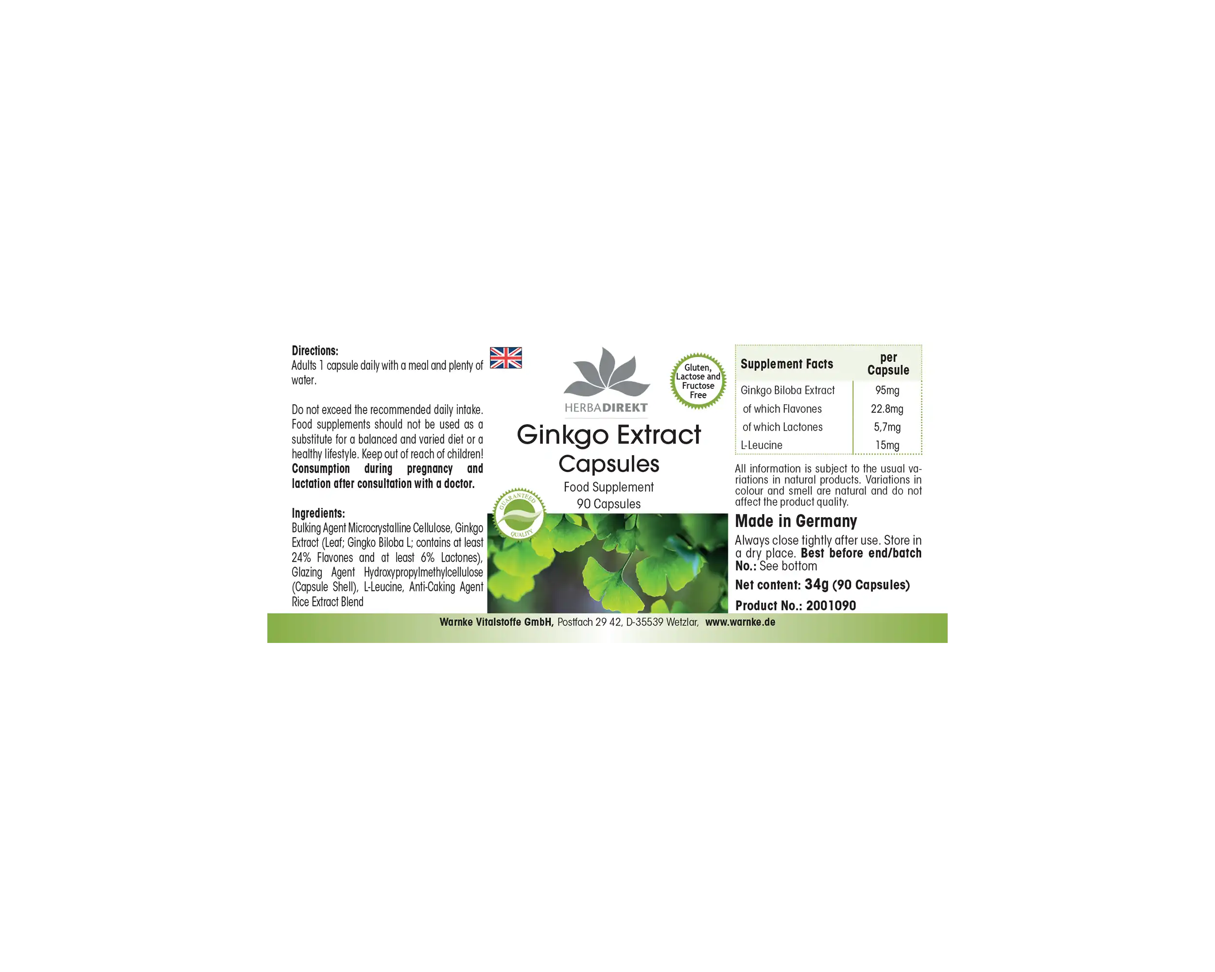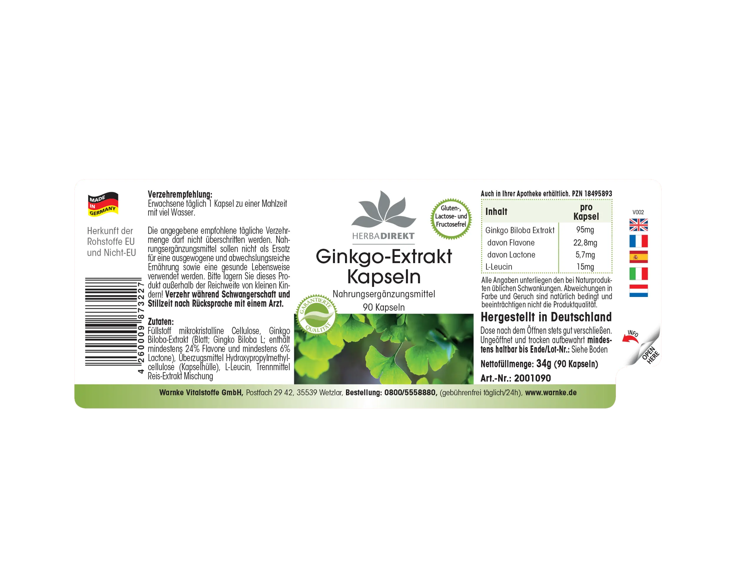 Produktinformationen "Ginkgo Biloba Extrakt 95mg - 90 Kapseln - mit Flavonen und Lactonen - Vegan | Warnke Vitalstoffe"