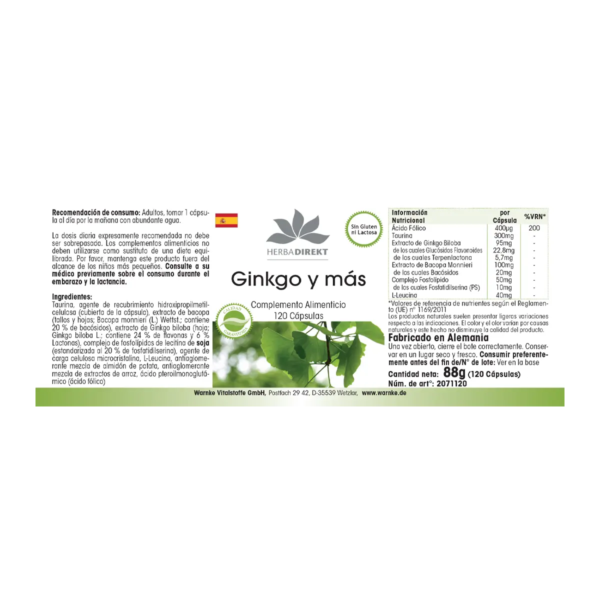 Ginkgo & Mehr - 120 Kapseln - Bacopa Monnieri-Extrakt mit Folsäure uvm. - Vegan | Warnke Vitalstoffe