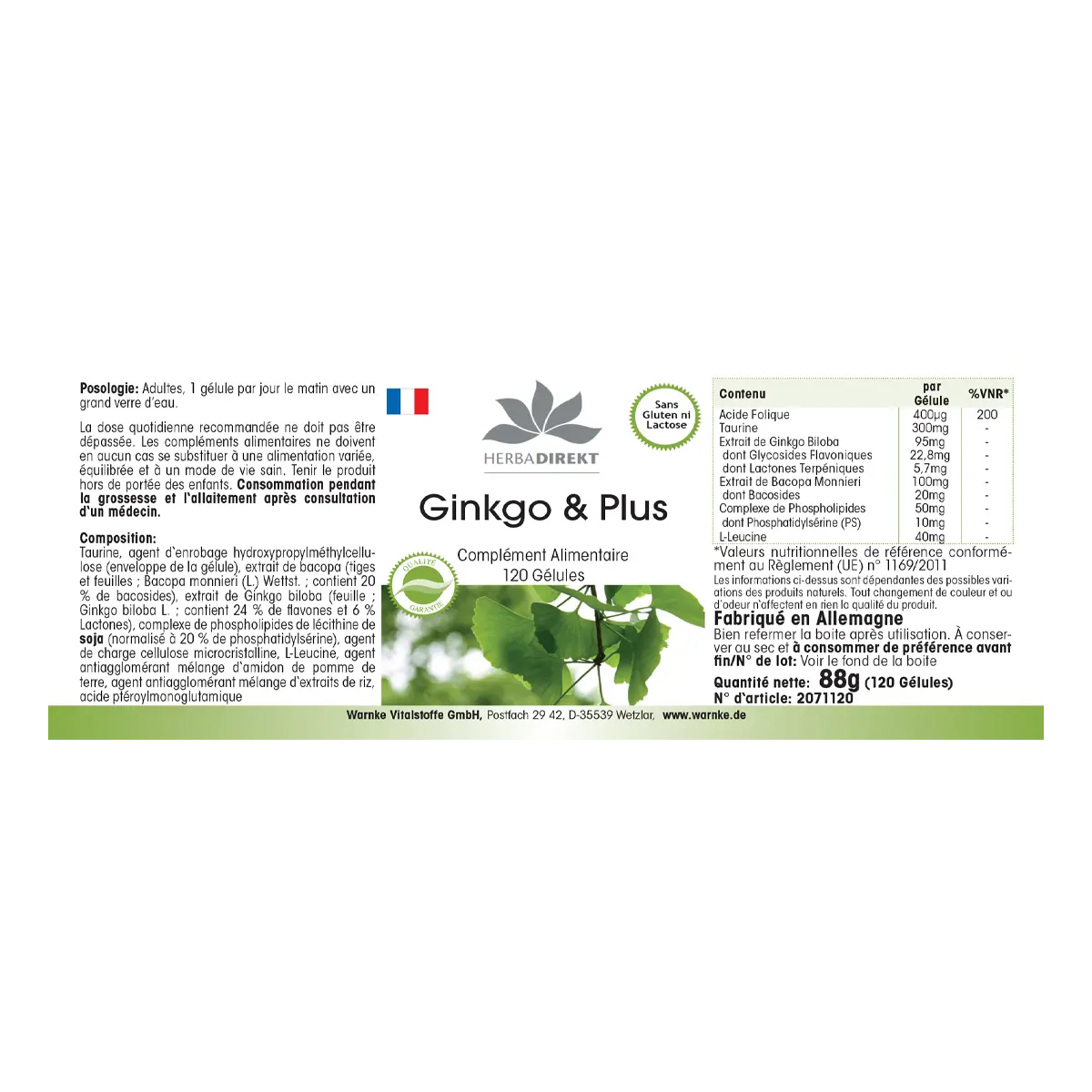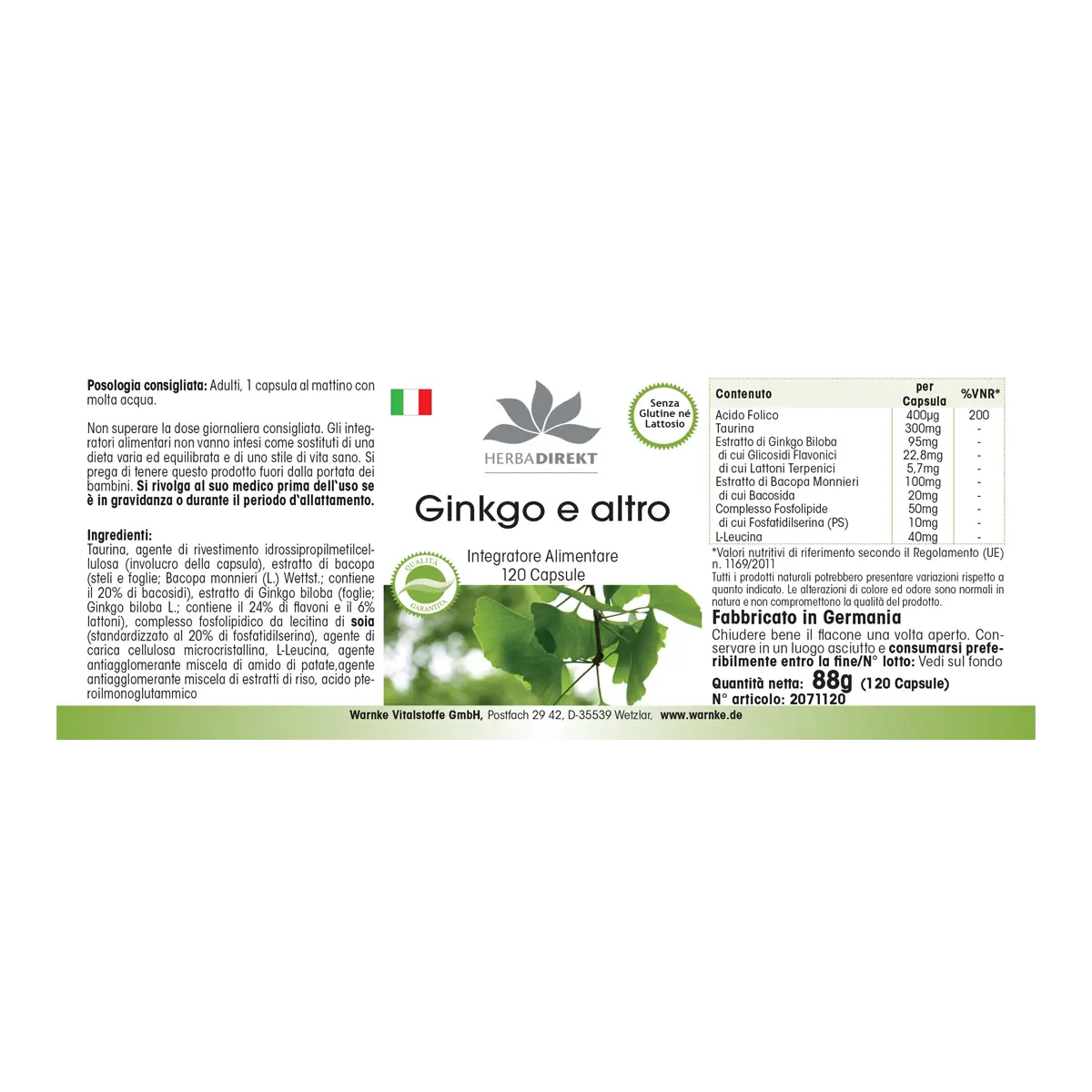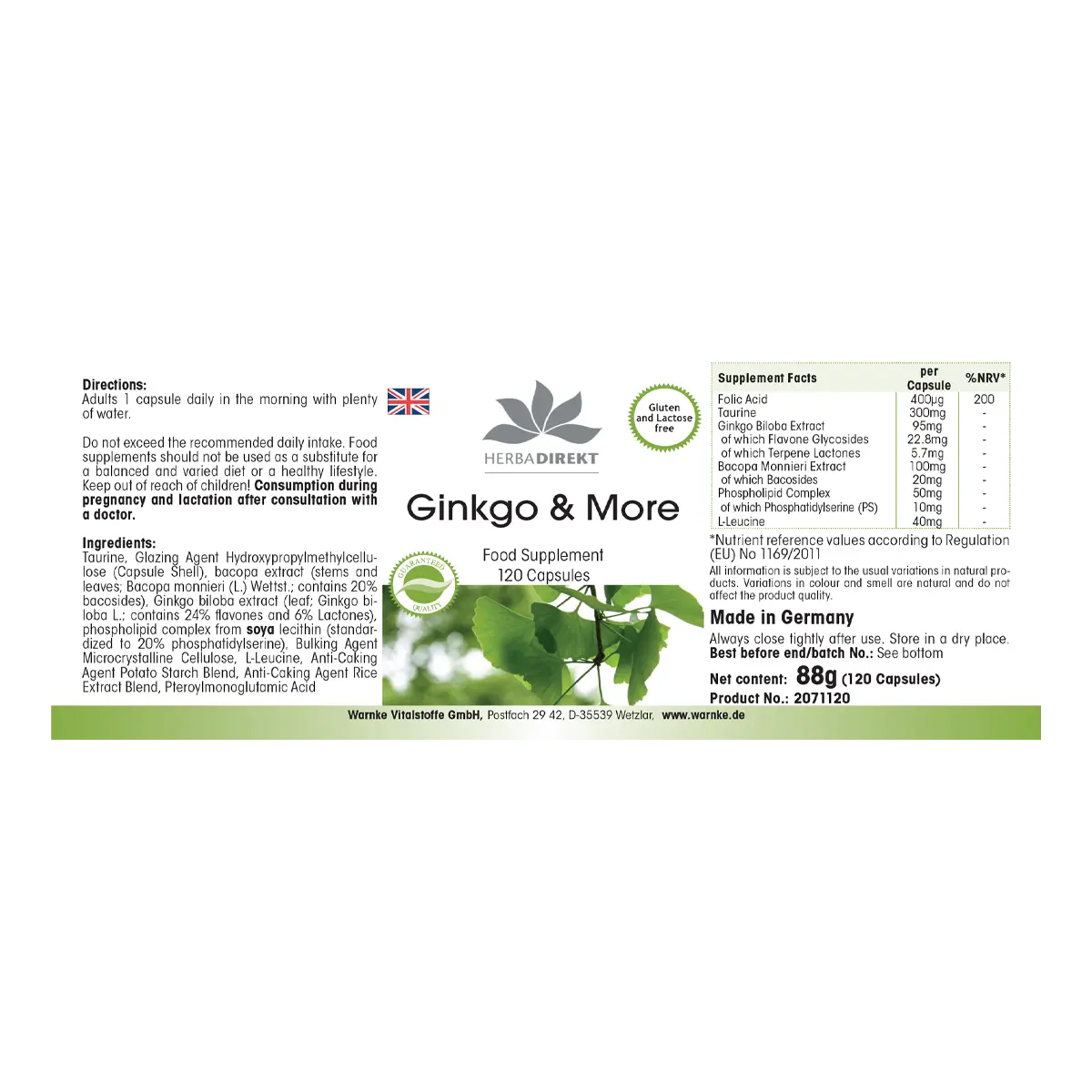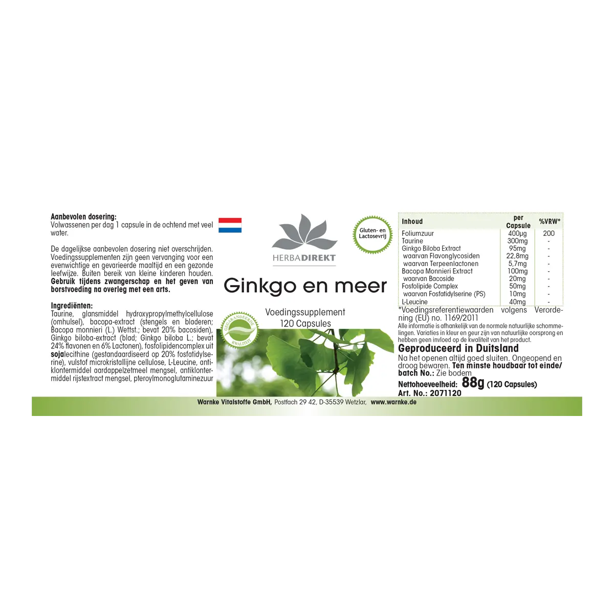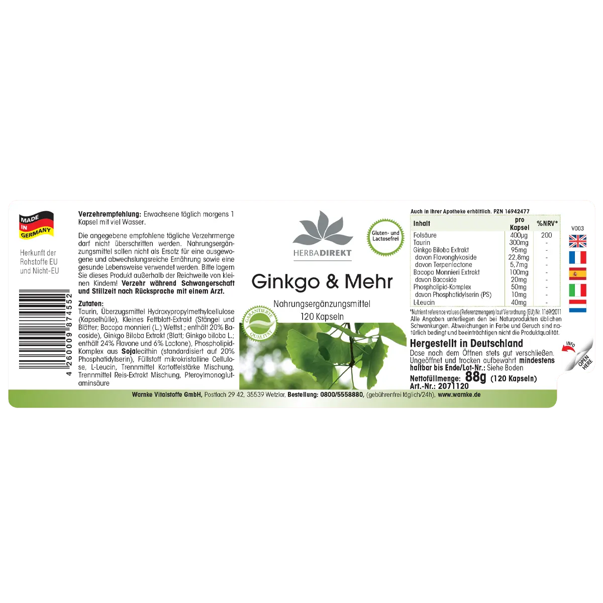 Produktinformationen "Ginkgo & Mehr - 120 Kapseln - Bacopa Monnieri-Extrakt mit Folsäure uvm. - Vegan | Warnke Vitalstoffe"