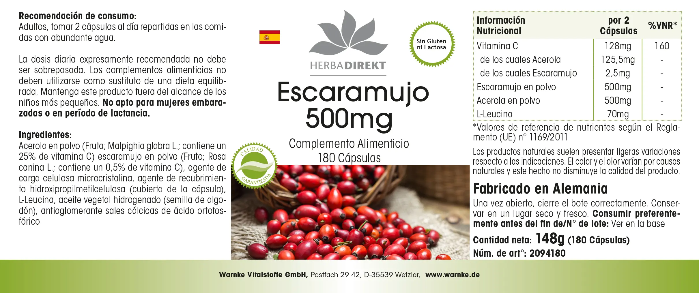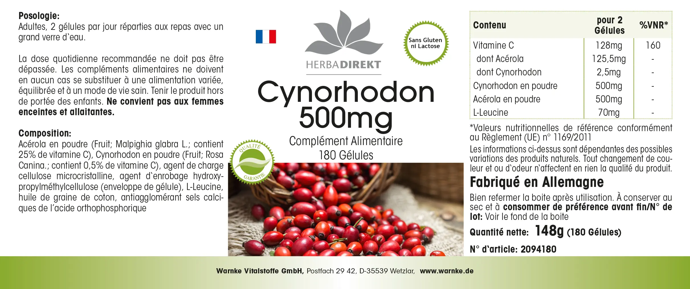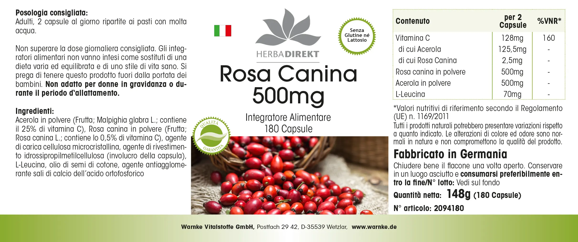 Produktinformationen "Hagebutte 500mg - 180 Kapseln - mit Vitamin C - Immunsystem, Kollagenbildung uvm. | Herba Direkt"