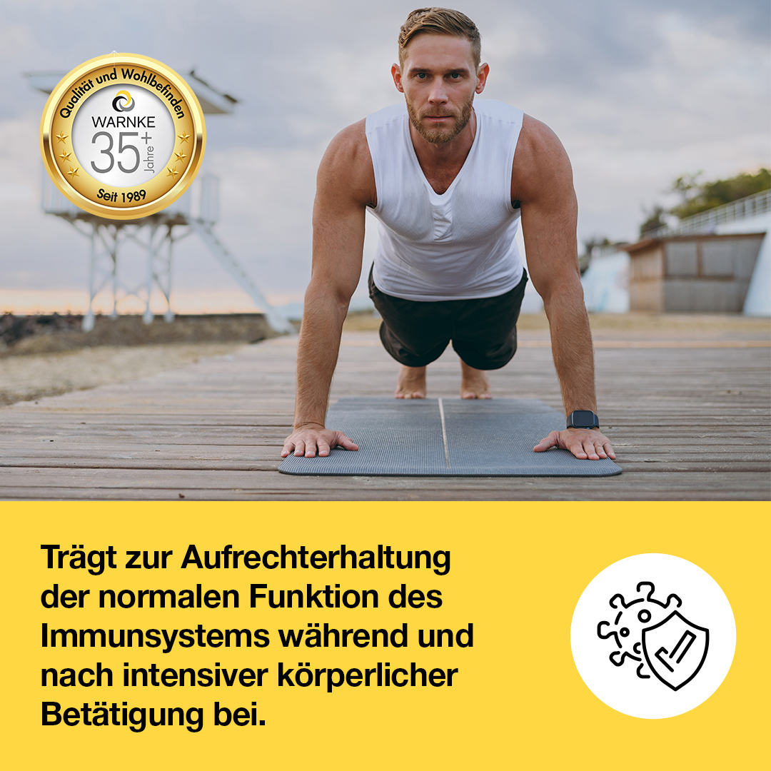 - Vitamin C trägt zur Aufrechterhaltung der normalen Funktion des Immunsystems während und nach intensiver körperlicher Betätigung bei.