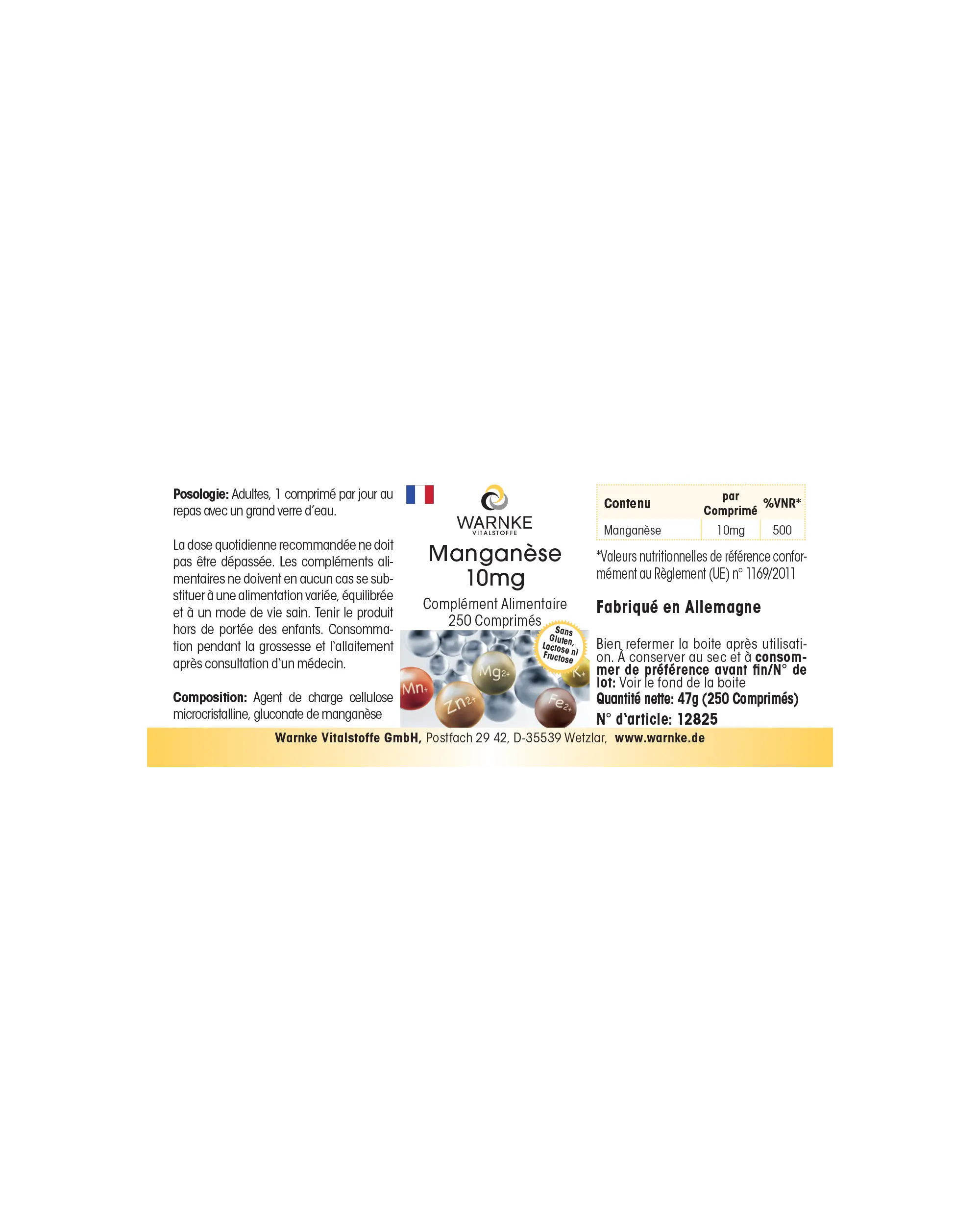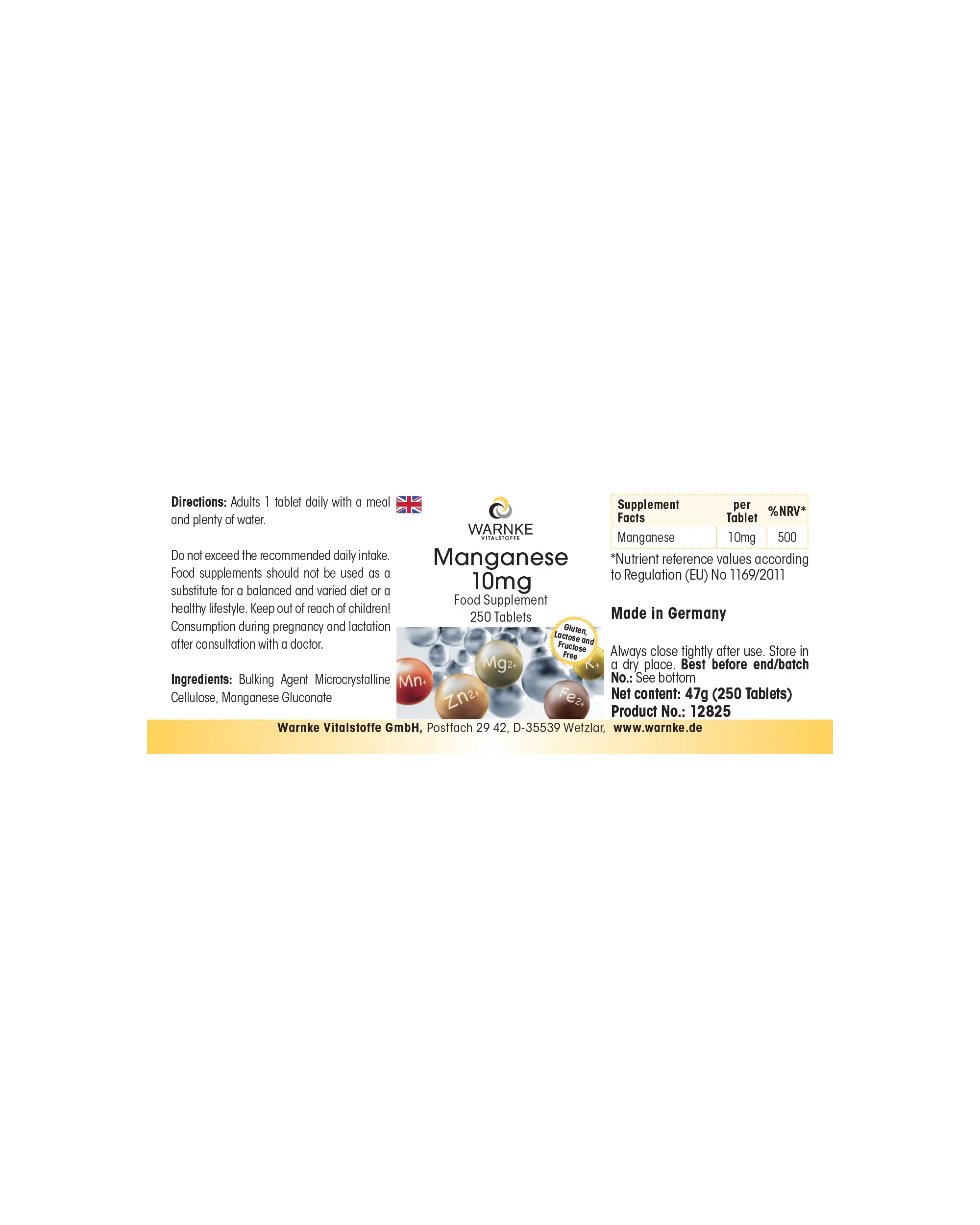 Produktinformationen "Mangan 10mg - 250 Tabletten - Für Knochen, Stoffwechsel uvm. | Warnke Vitalstoffe"