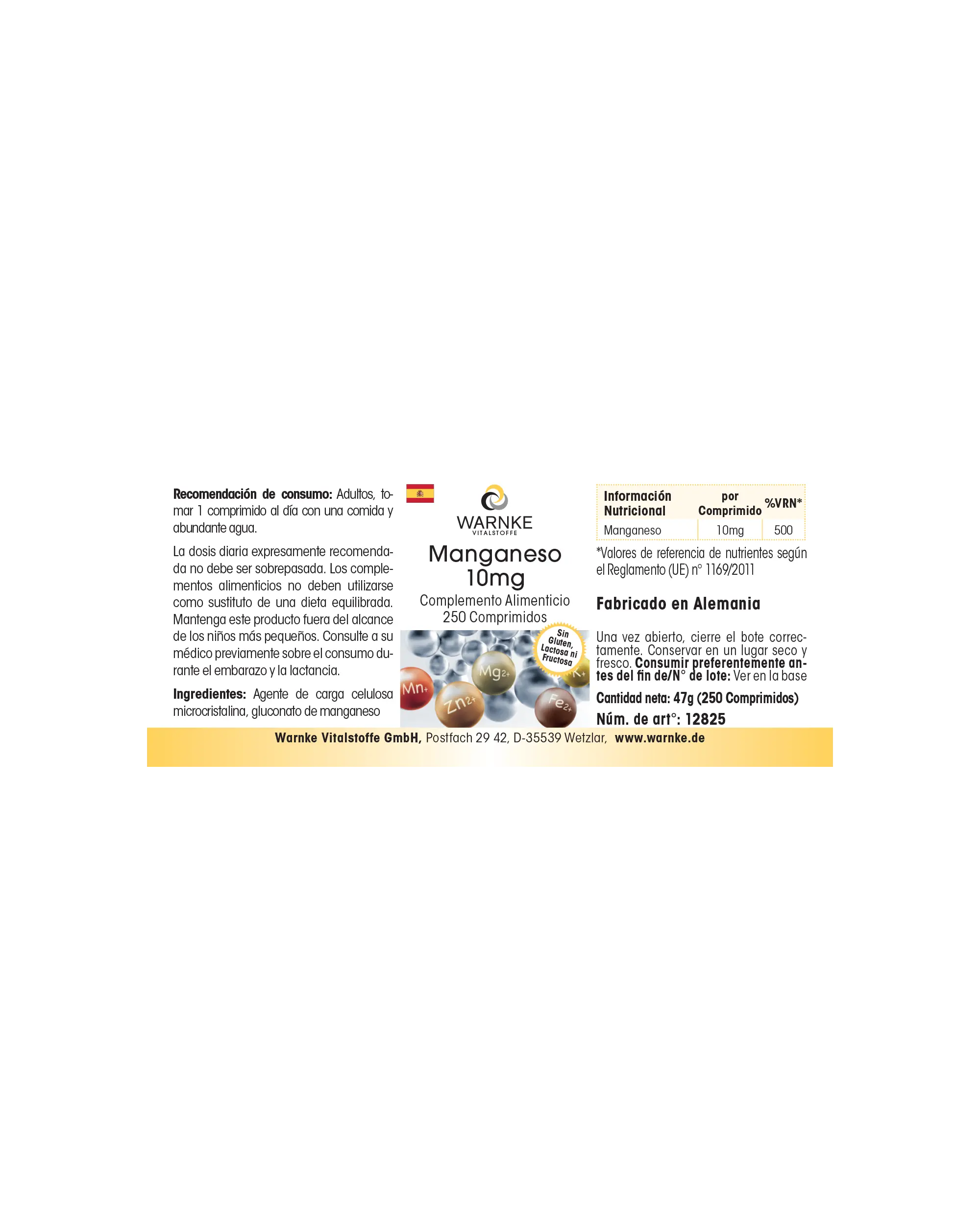 | Mangan / Manganese / Manganèse / Manganeso / Manganese / Mangaan | 10 mg | 500 |