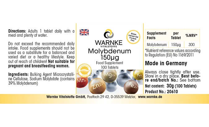 Produktinformationen "Molybdän 150µg - 100 Tabletten - Vegan | Warnke Vitalstoffe"