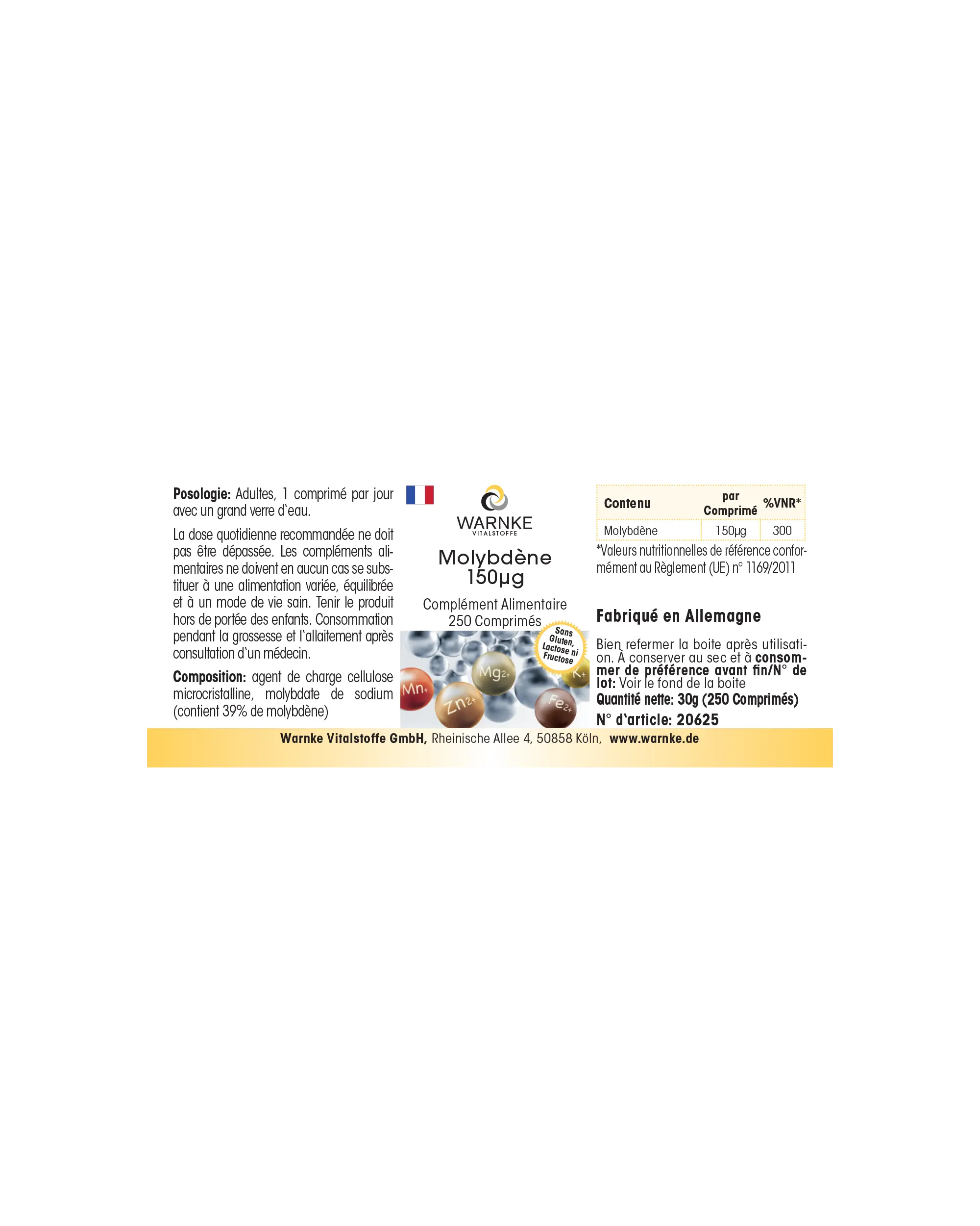 Produktinformationen "Molybdän 150µg - 250 Tabletten - für Stoffwechsel, Enzymfunktion uvm. | Warnke Vitalstoffe"