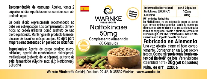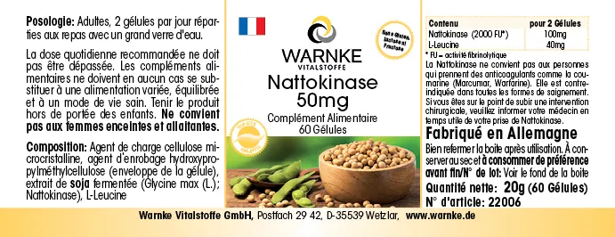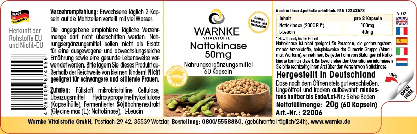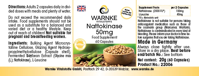 Produktinformationen "Nattokinase 50mg - 60 Kapseln - Vegan | Warnke Vitalstoffe"