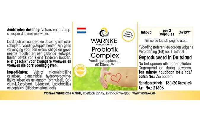 Probiotik Komplex kaufen bedeutet, sich ausgewählte probiotische Kulturen in praktischer Kapselform nach Hause zu holen. Vertrauen Sie auf die Qualität von Warnke Vitalstoffe und unterstützen Sie Ihre Ernährung mit unserem hochwertigen Probiotik Komplex.