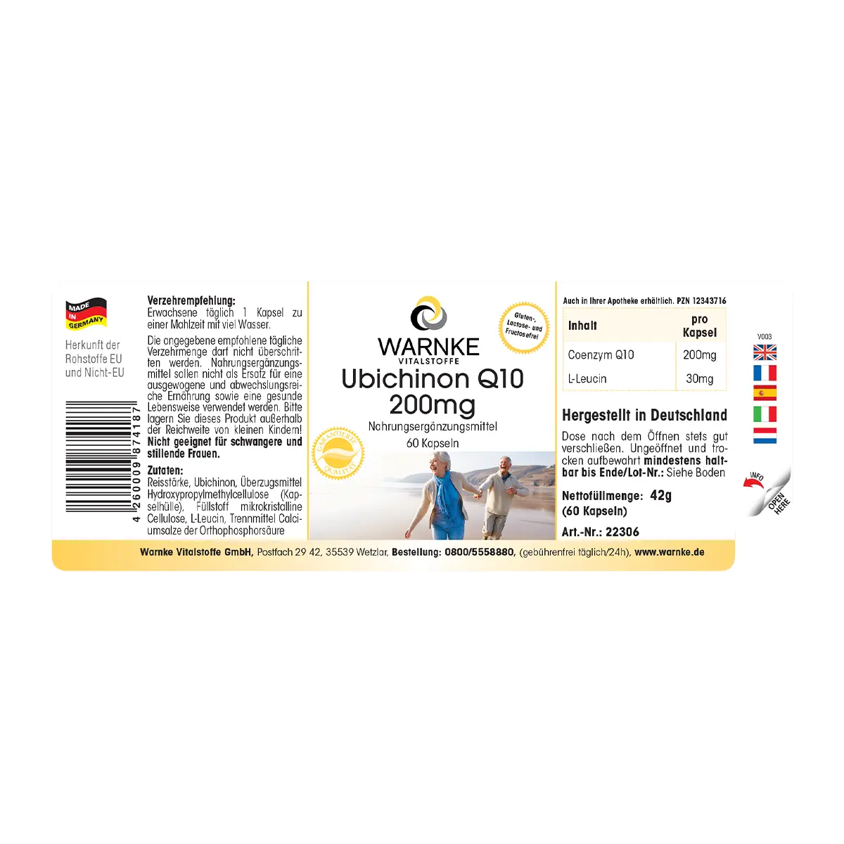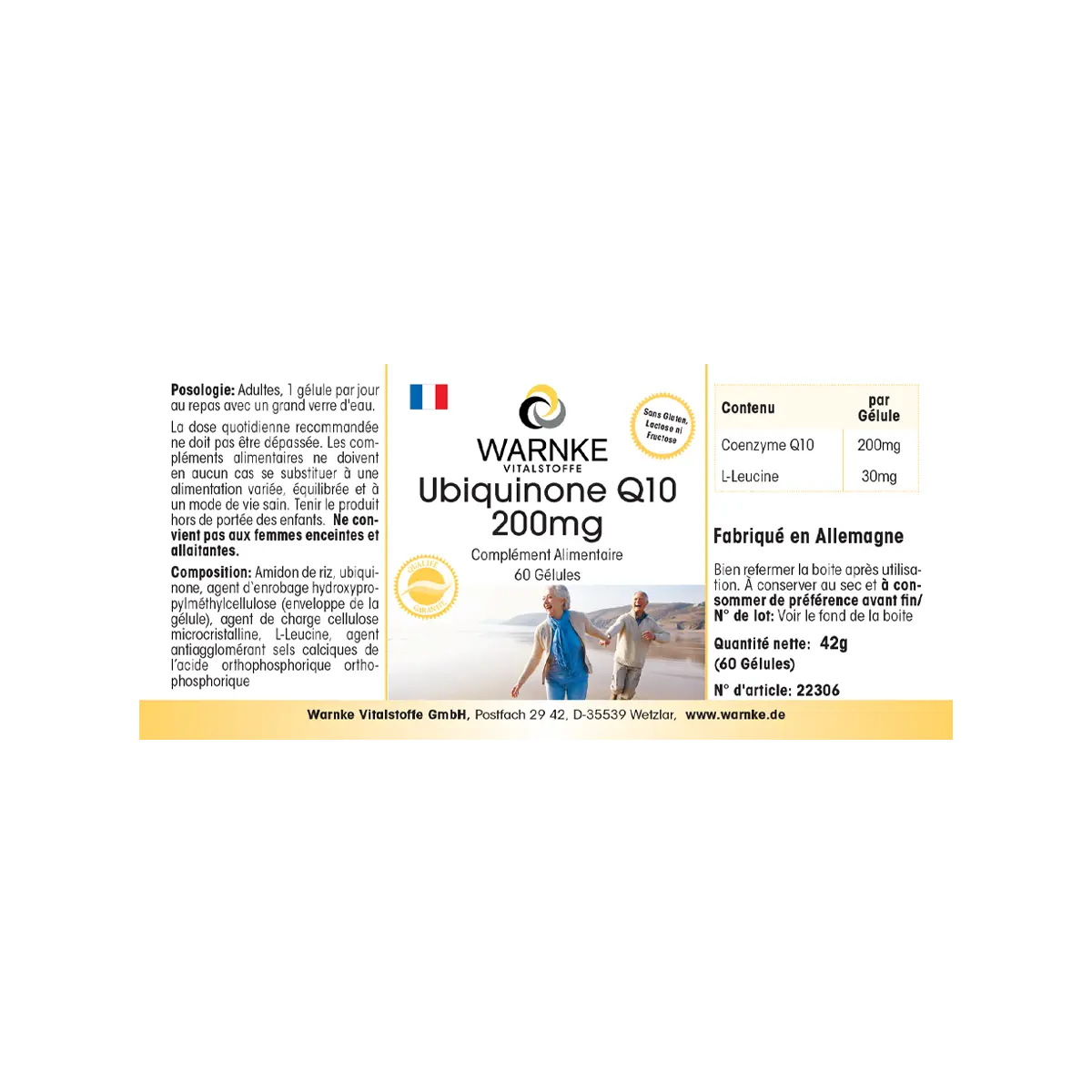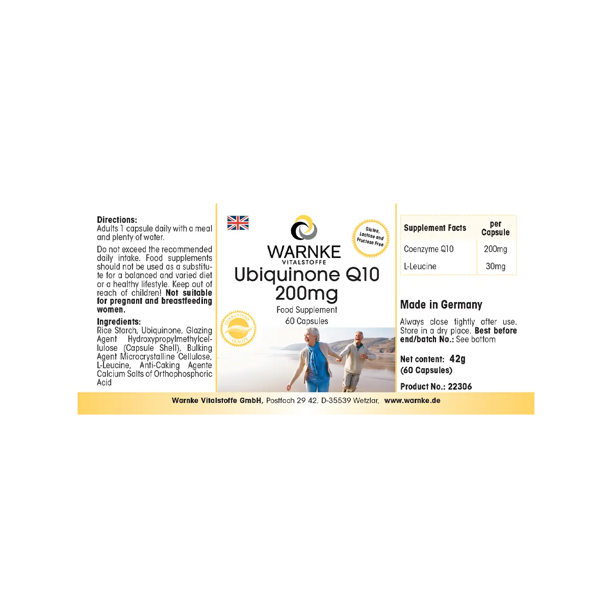 Rice Starch, Ubiquinone, Glazing Agent Hydroxypropylmethylcellulose (Capsule Shell), Bulking Agent Microcrystalline Cellulose, L-Leucine, Anti-Caking Agente Calcium Salts of Orthophosphoric Acid