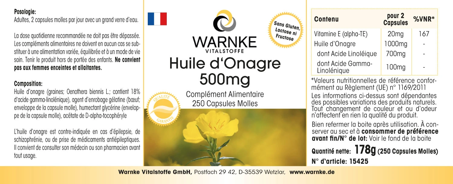 Product information "Evening primrose oil 500mg – cold-pressed"