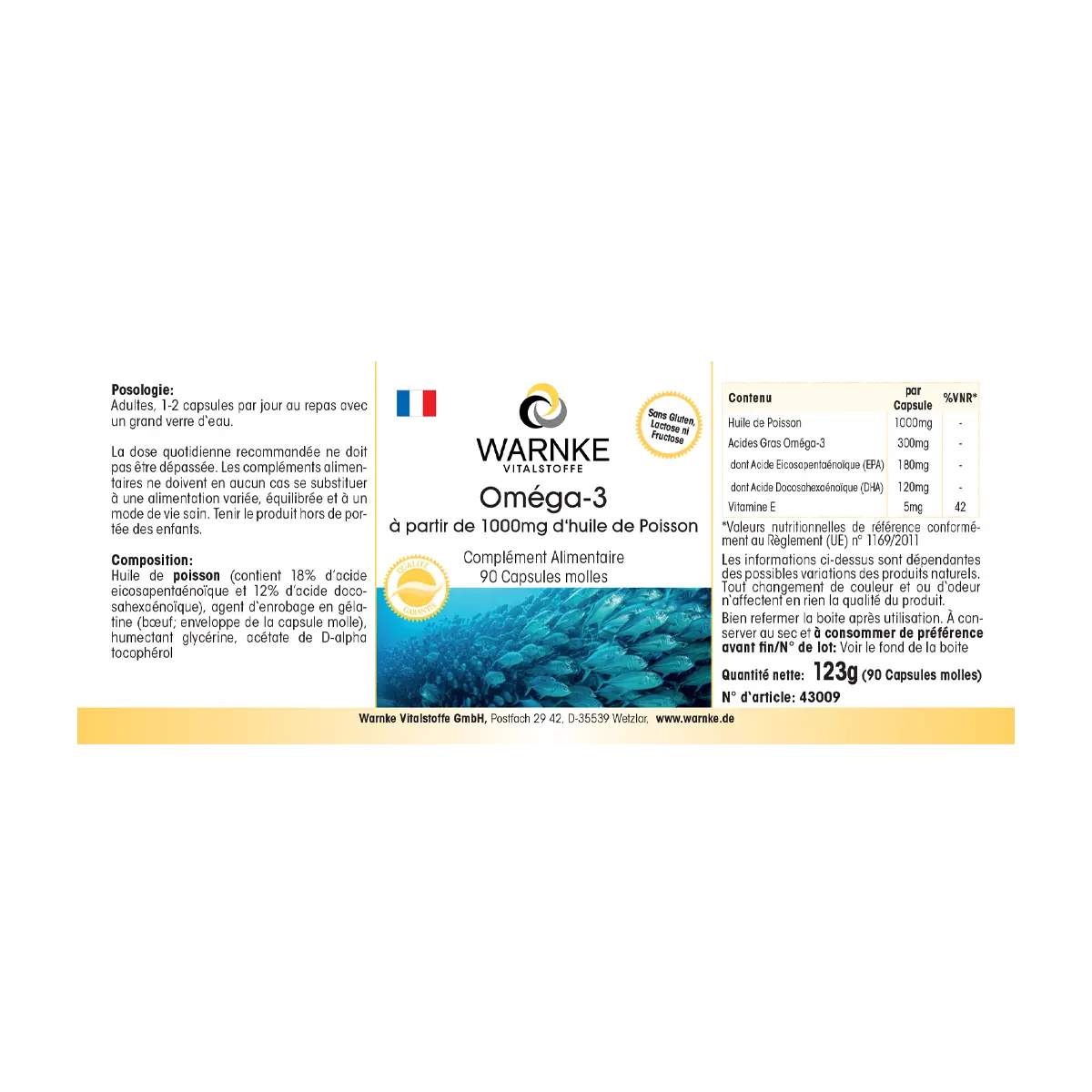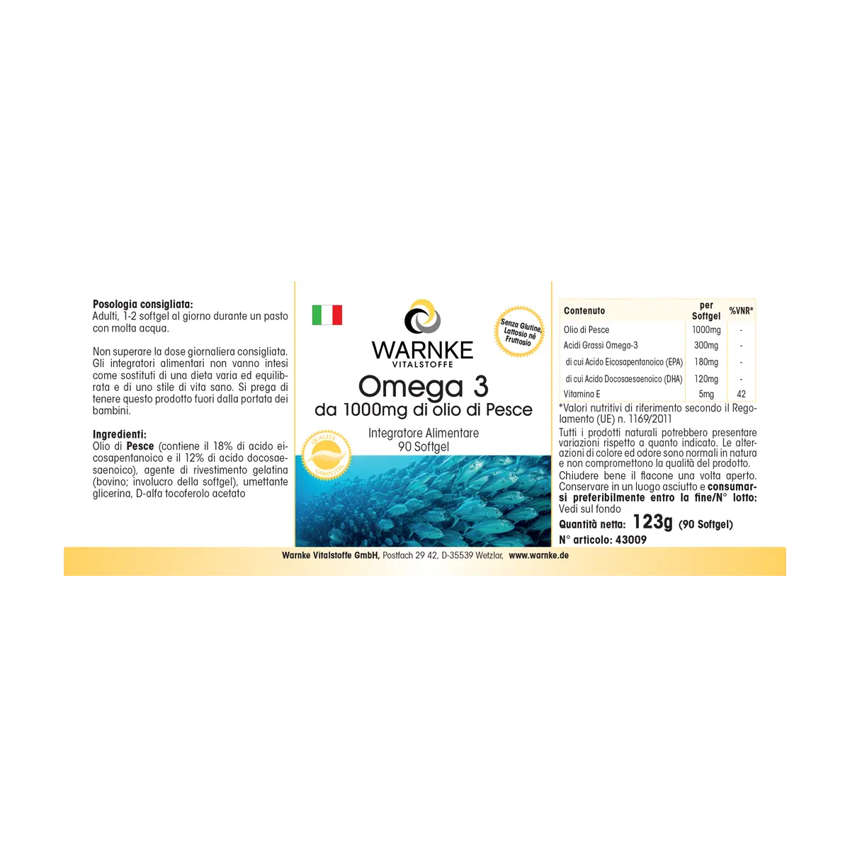 | Content / Supplement Facts / Contenu / Información Nutricional / Contenuto | Per Softgel | %NRV*/ %VNR*/ %VRN*/ %VNR* |