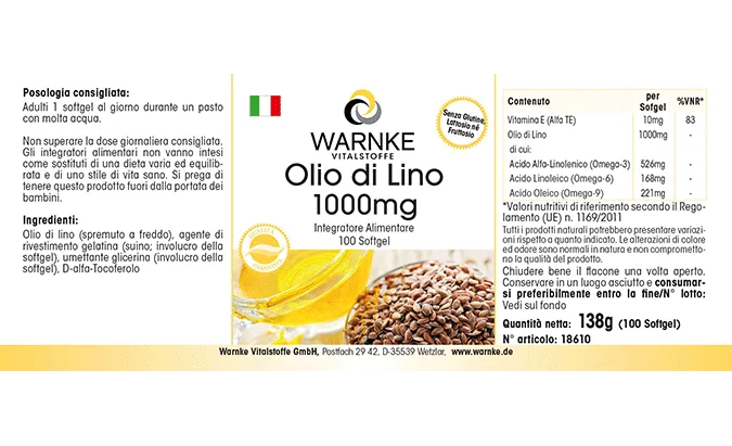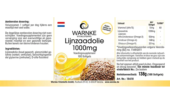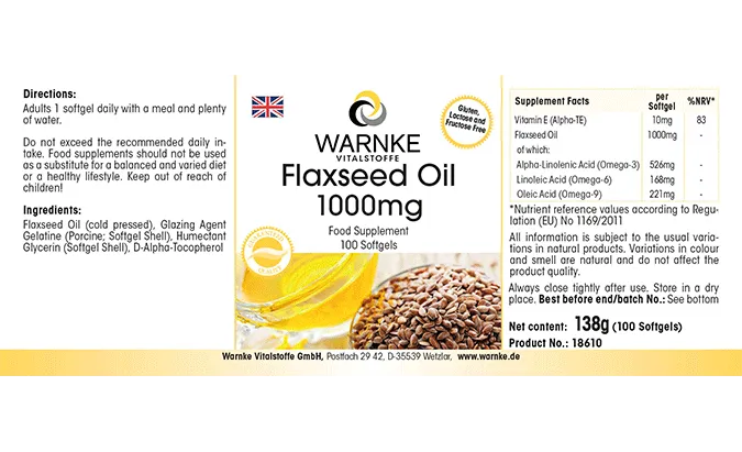 Linseed oil (cold-pressed), glazing agent gelatine (porcine; capsule shell), humectant glycerine (capsule shell), D-alpha-tocopherol