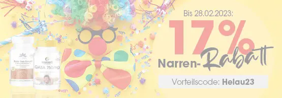 Denn ab sofort haben hier die Narren das Sagen. Nutzen Sie diese verrückte Gelegenheit und sichern Sie sich heute noch Ihren verrückten Rabatt* von 17 %* auf alle Nahrungsergänzungsmittel.