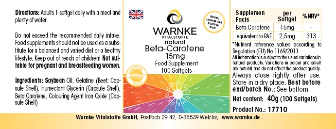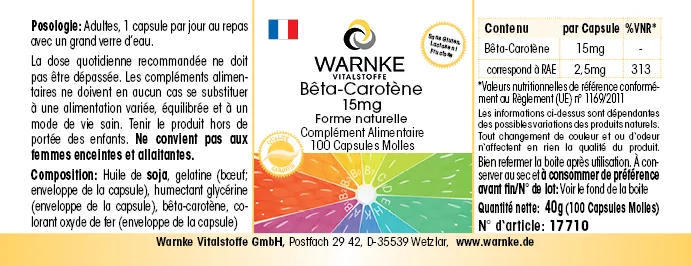 Huile de soja, gélatine (bœuf: enveloppe de la gélule), bêta-carotène, glycérine, oxyde de fer (enveloppe de la gélule)