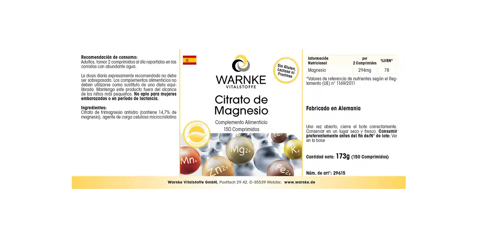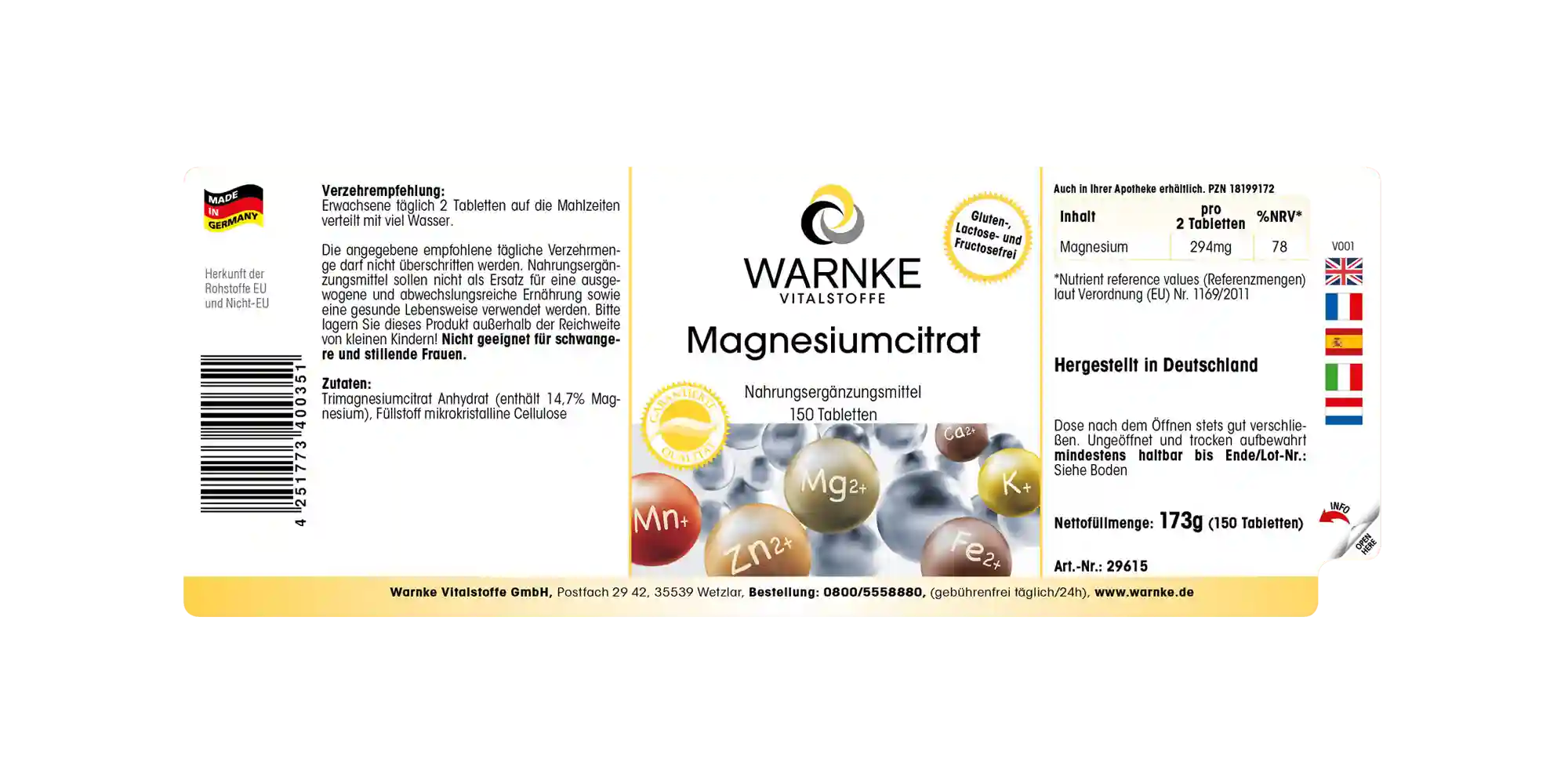 Das Magnesium in diesem Vitalstoff-Präparat von Warnke liegt als hochwertiges Trimagnesiumdicitrat vor.