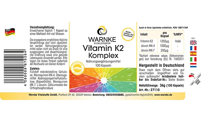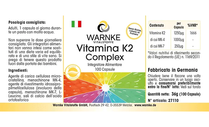| Vitamin / Vitamine / Vitamina K2 | 1250mg | |