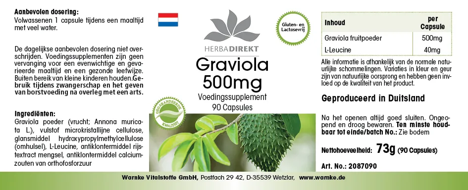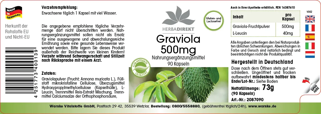 Product information "Graviola 500mg - 90 Kapseln | Warnke Vitalstoffe"
