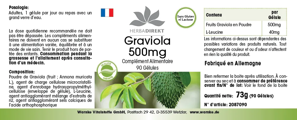 Graviola est un complément alimentaire végétalien, sans gluten et sans lactose.