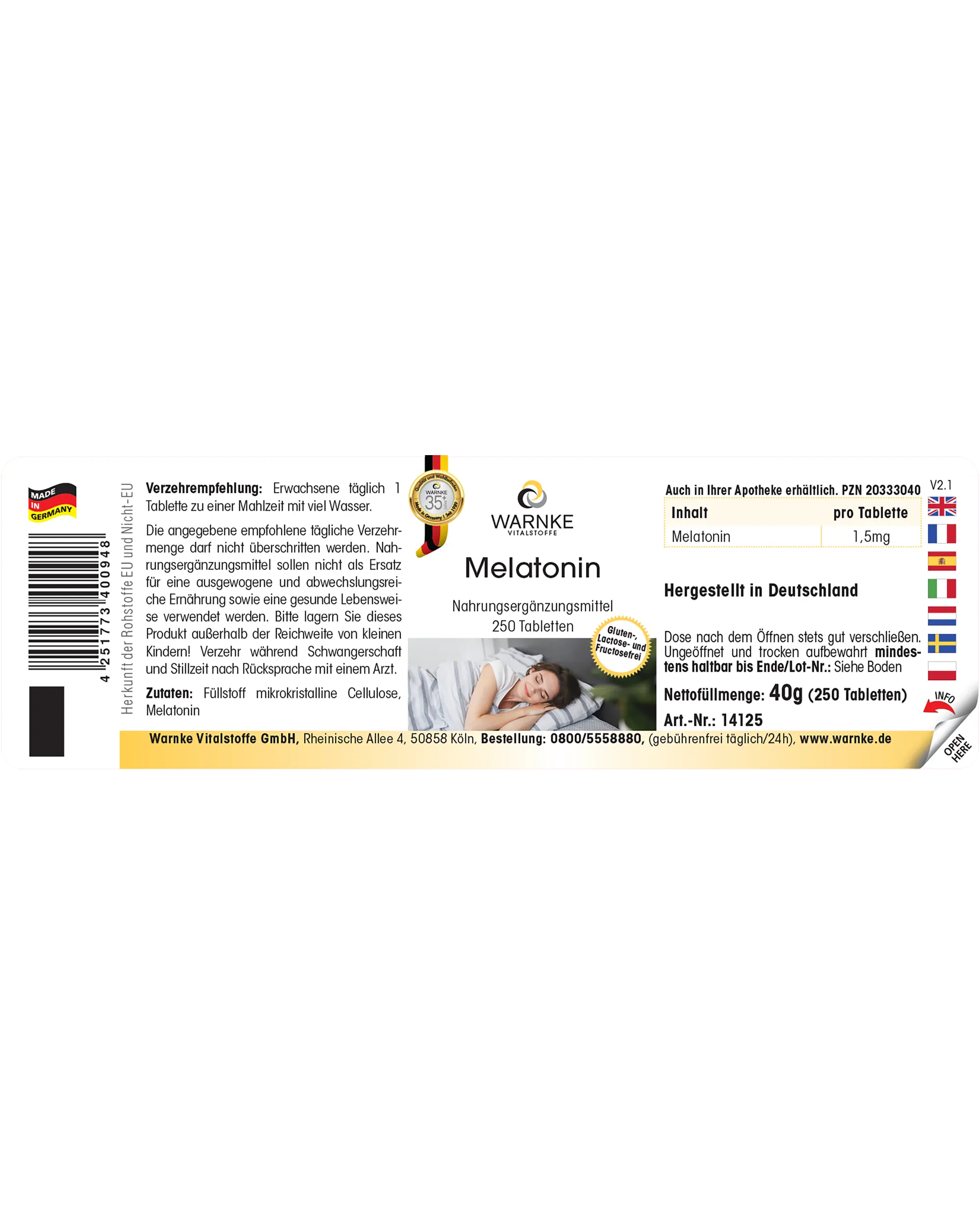 | Melatonin / Mélatonine / Melatonina | 1,5 mg |