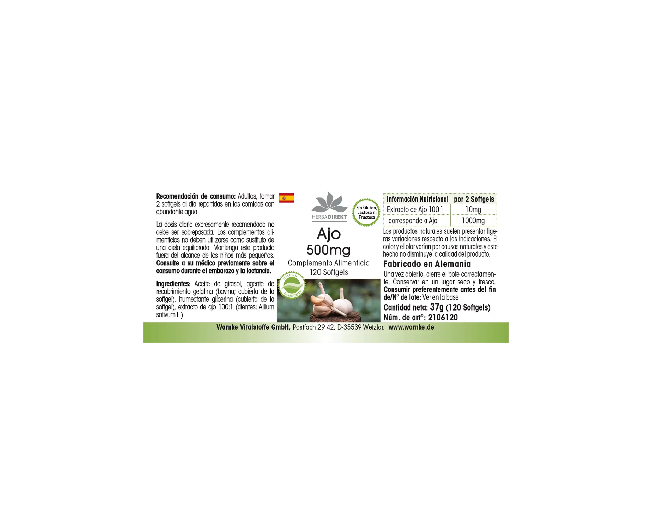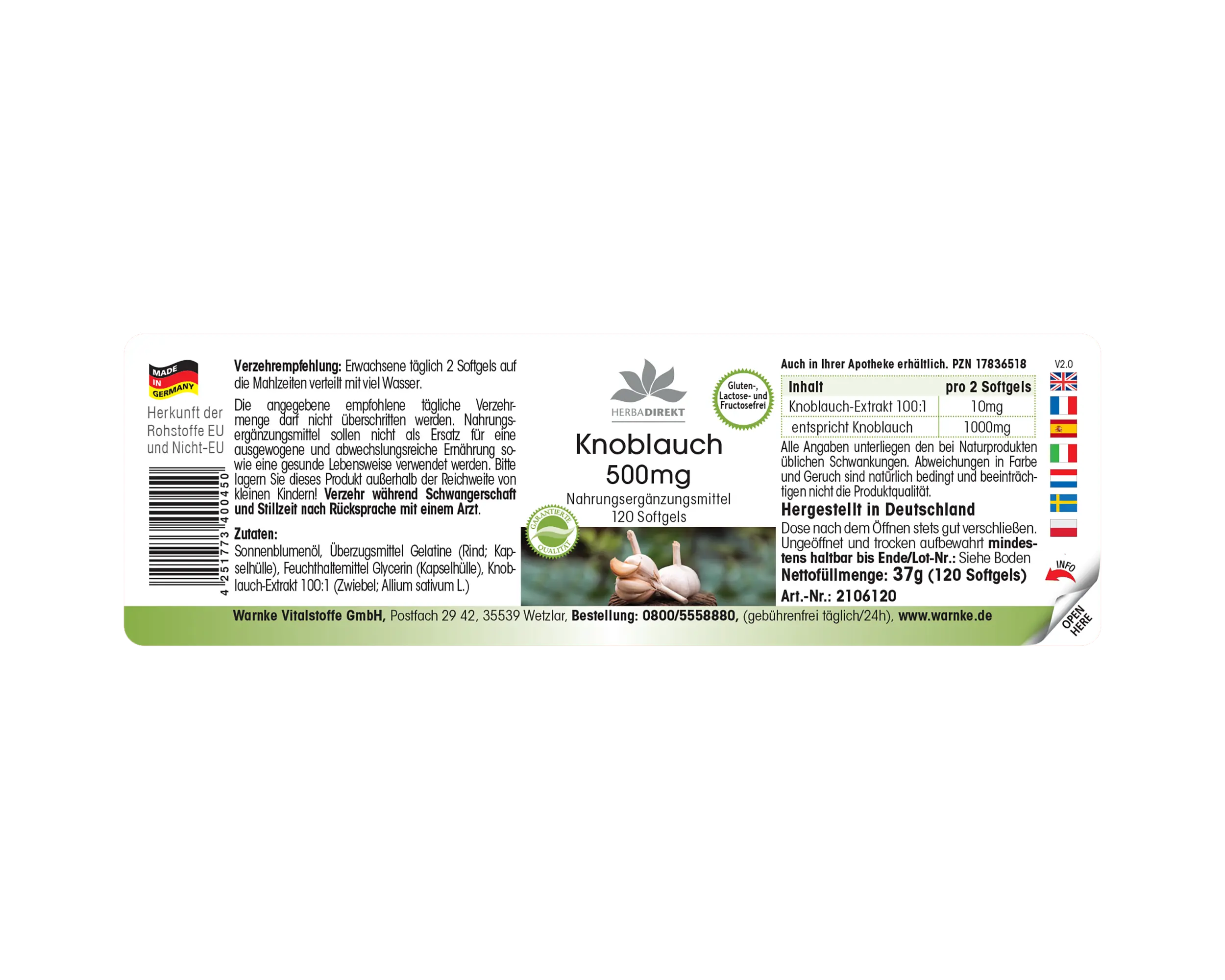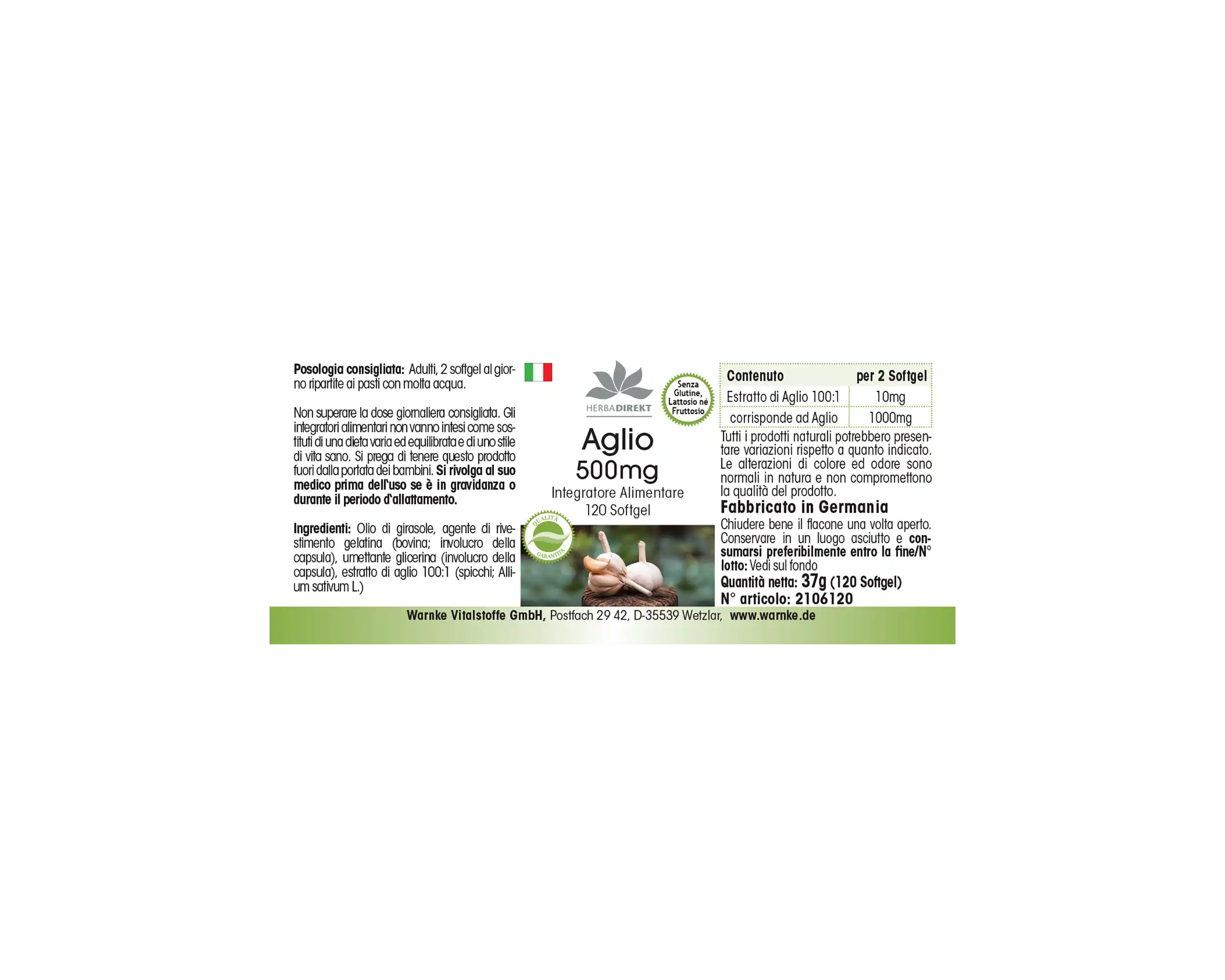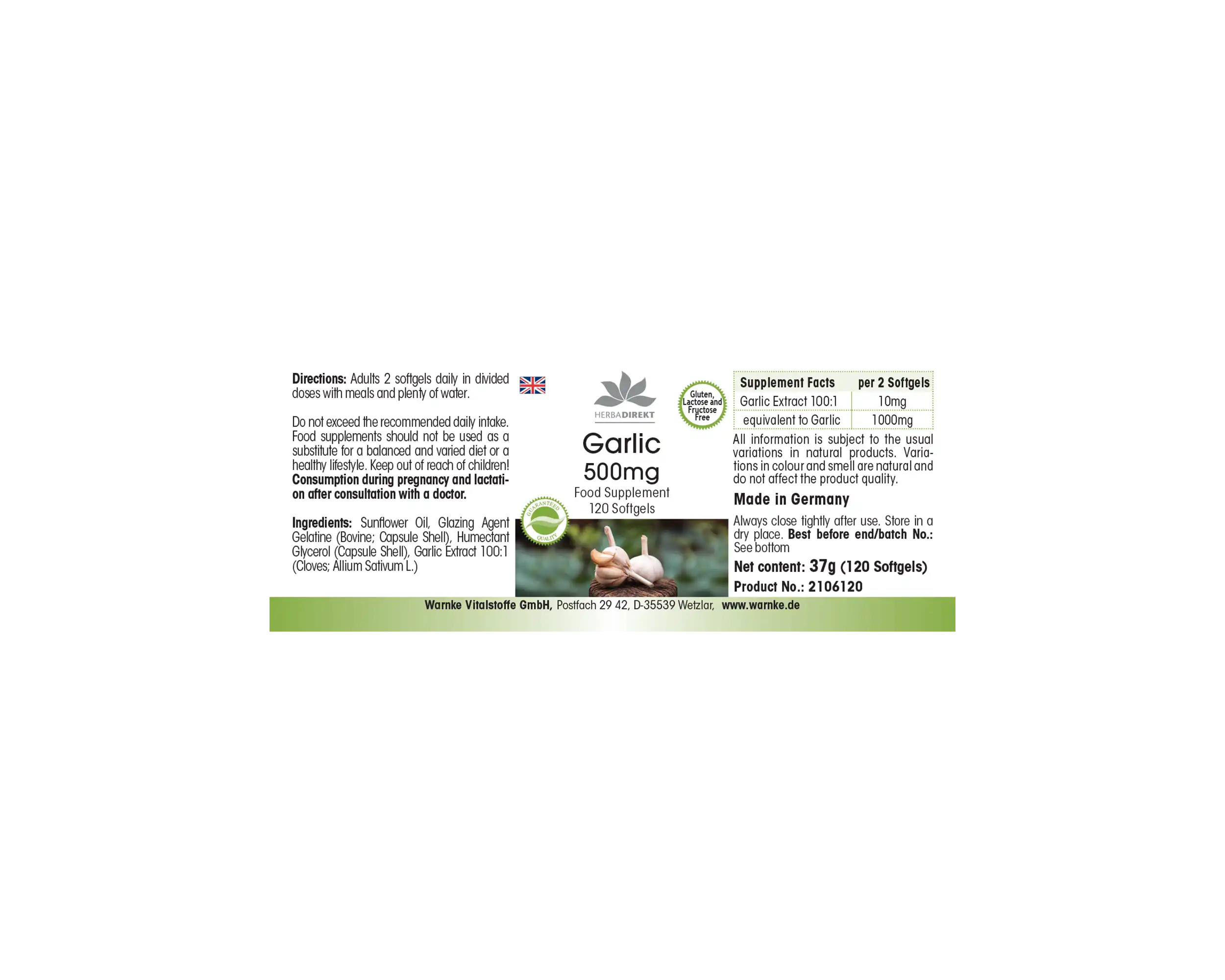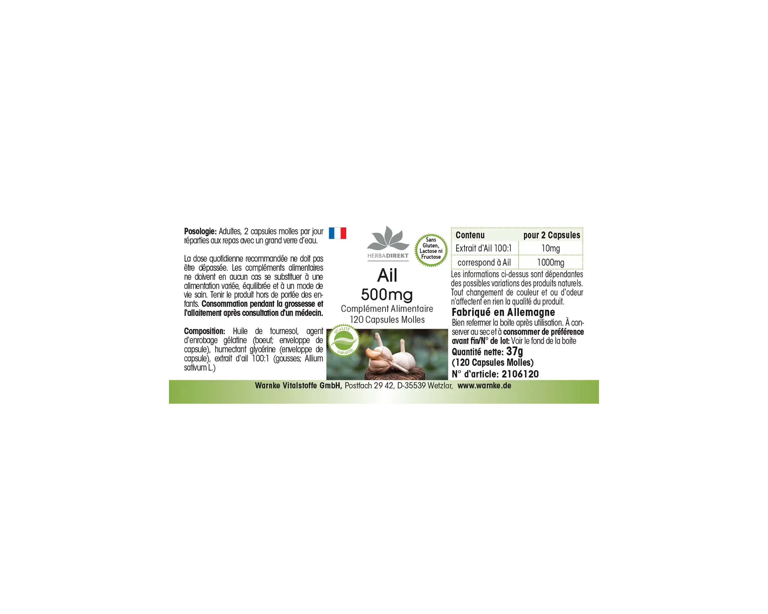 | entspricht Knoblauch / Corresponds to garlic / Equivalente all'aglio / Gelijkwaardig aan knoflook | 1000mg |