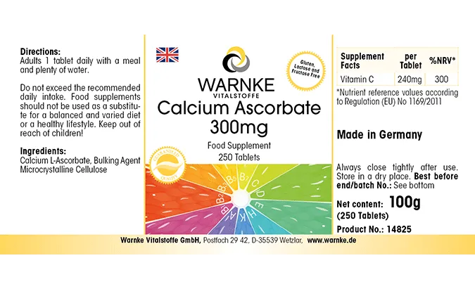 L-Ascorbato di calcio, agente di carica cellulosa microcristallina