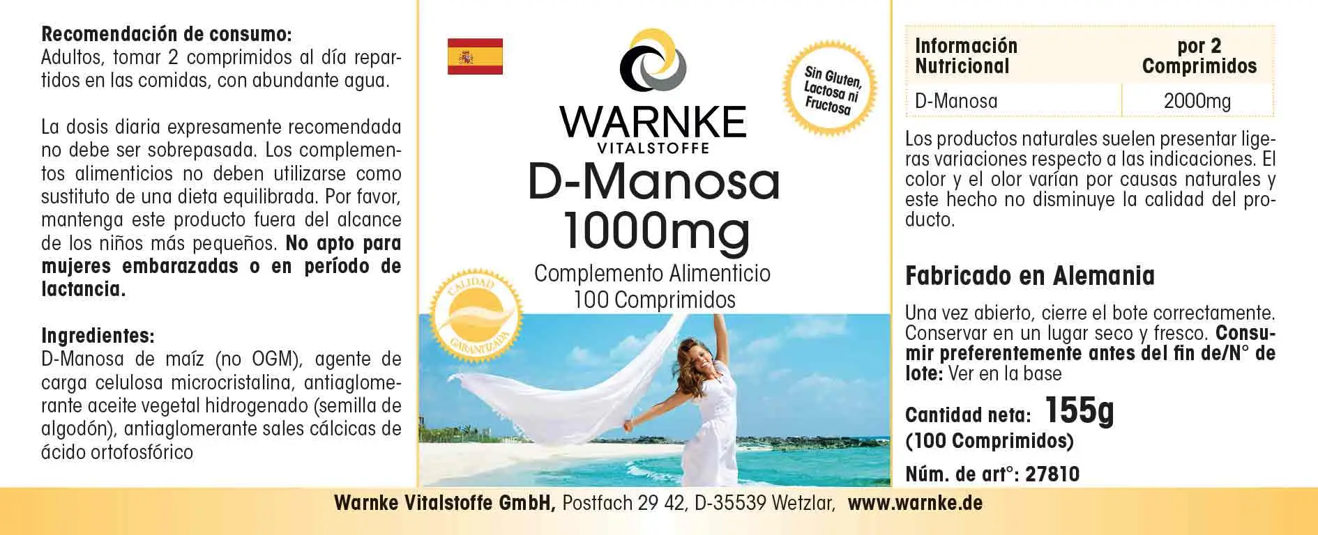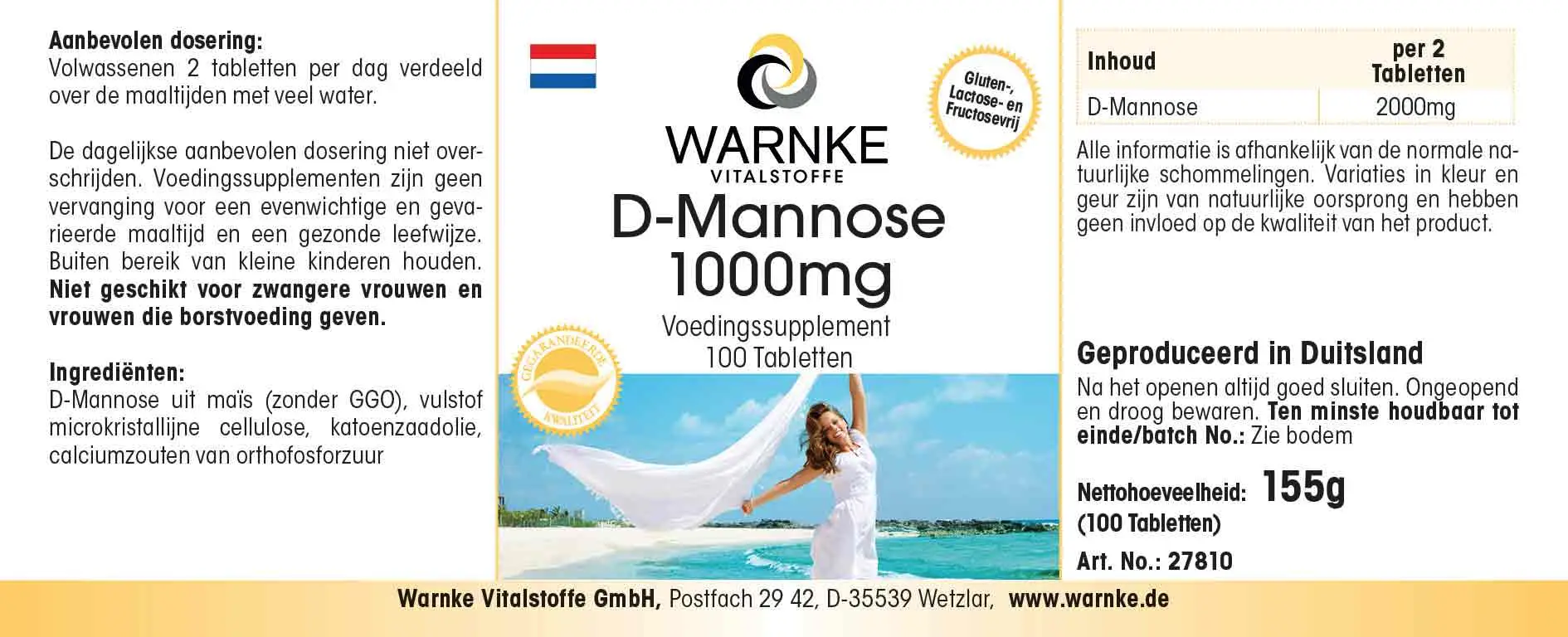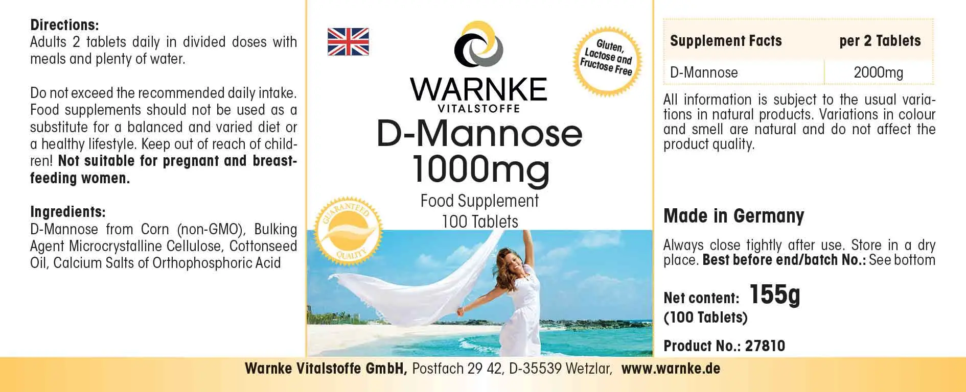 D-Mannose 1000mg - 100 Tabletten - Hochdosiert & Vegan | Warnke Vitalstoffe