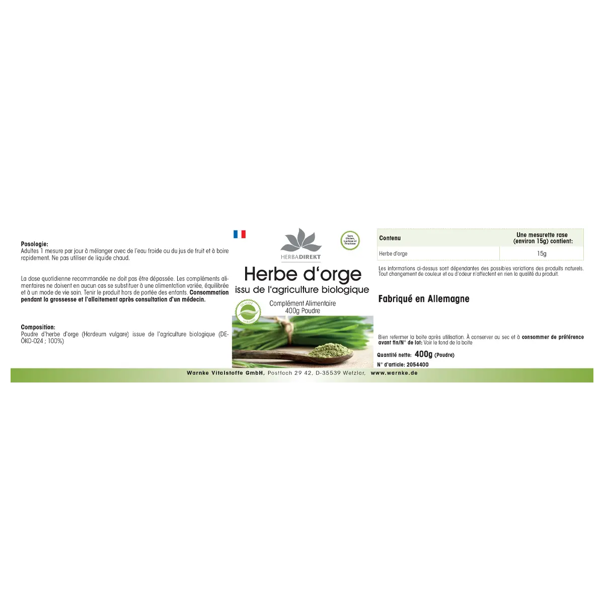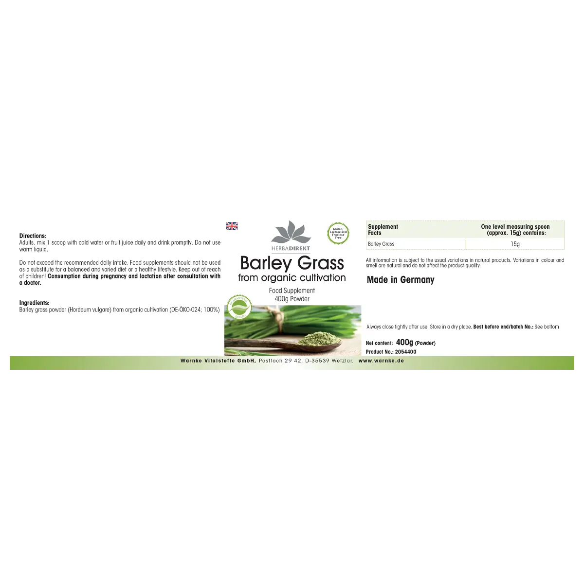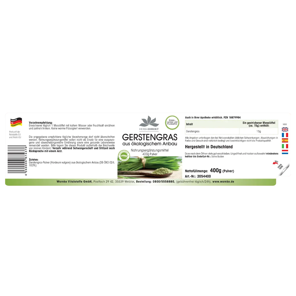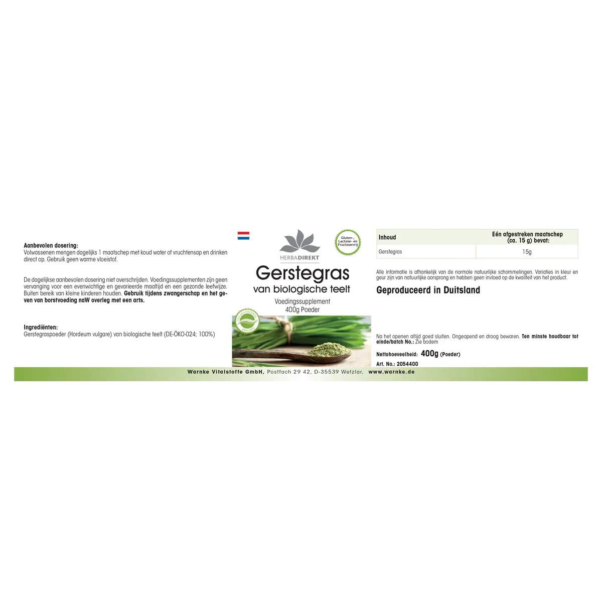 Gerstegraspoeder (Hordeum vulgare) uit biologische teelt (DE-ÖKO-024; 100%)