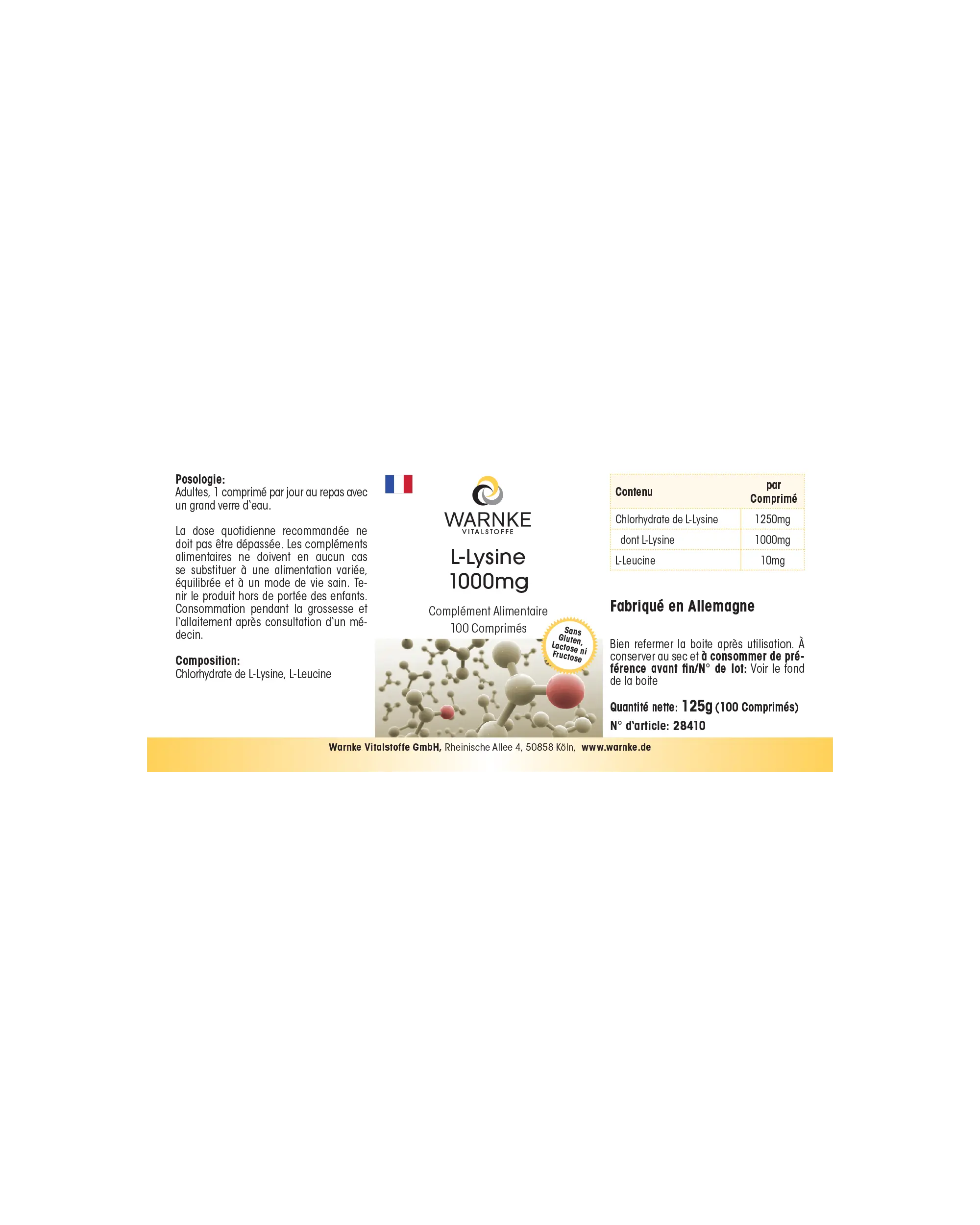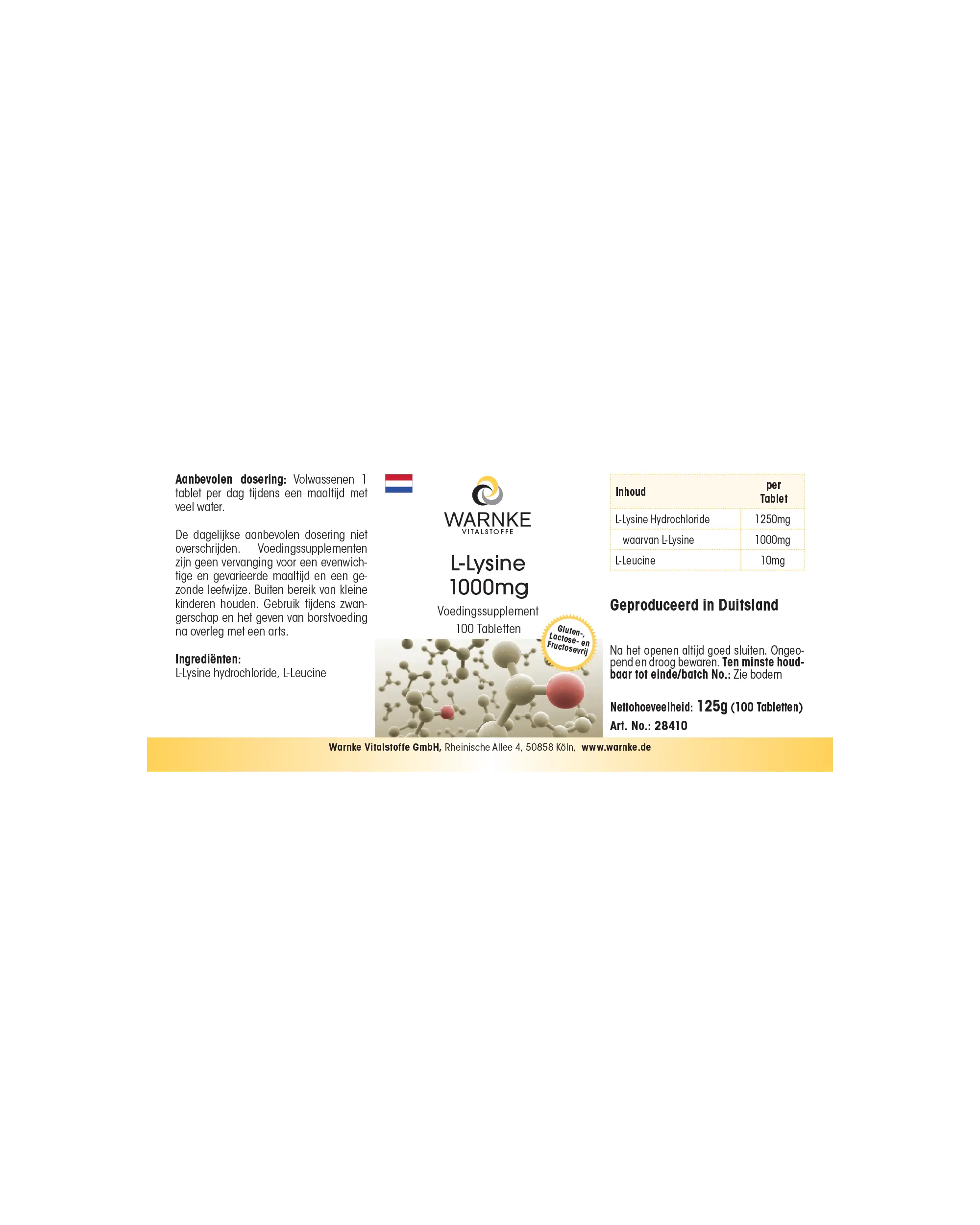 | davon L-Lysin / of which L-Lysine / dont L-Lysine / de los cuales L-lisina / di cui L-lisina / waarvan L-lysine | 1000mg |