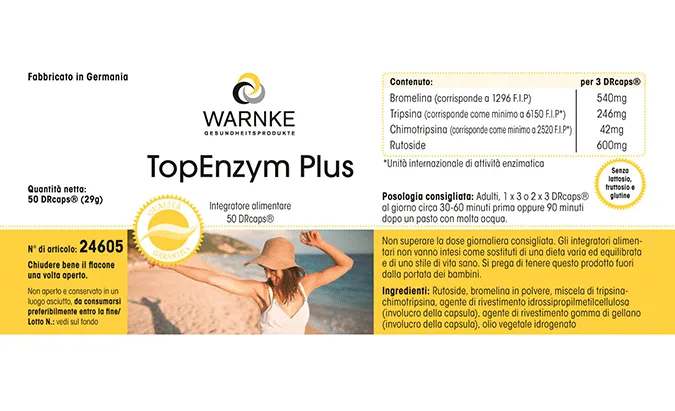 Rutoside, bromelaïnepoeder, trypsine-chymotrypsine-mengsel, glansmiddel hydroxypropylmethylcellulose (capsulehuls), glansmiddel gellan (capsulehuls), gehydrogeneerde plantaardige olie