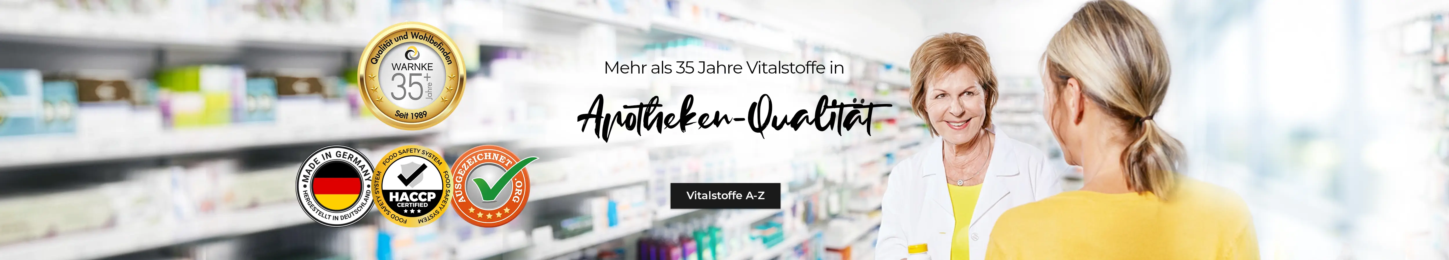 "Mit meinem Namen und meiner langjährigen Expertise als Apothekerin stehe ich für höchste Qualität und erstklassige Produkte direkt aus Deutschland, für Ihr persönliches Wohlbefinden! Seit nunmehr 30 Jahren. Mein fachkundiges Team berät Sie gerne, ob als Privat- oder Geschäftskunde." – Jutta Warnke