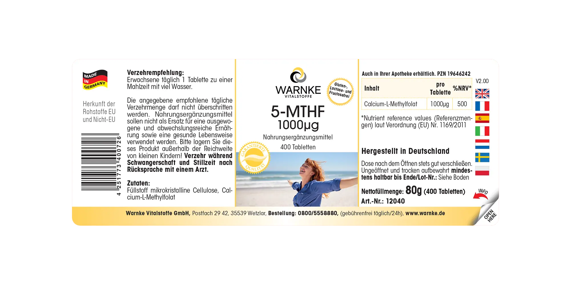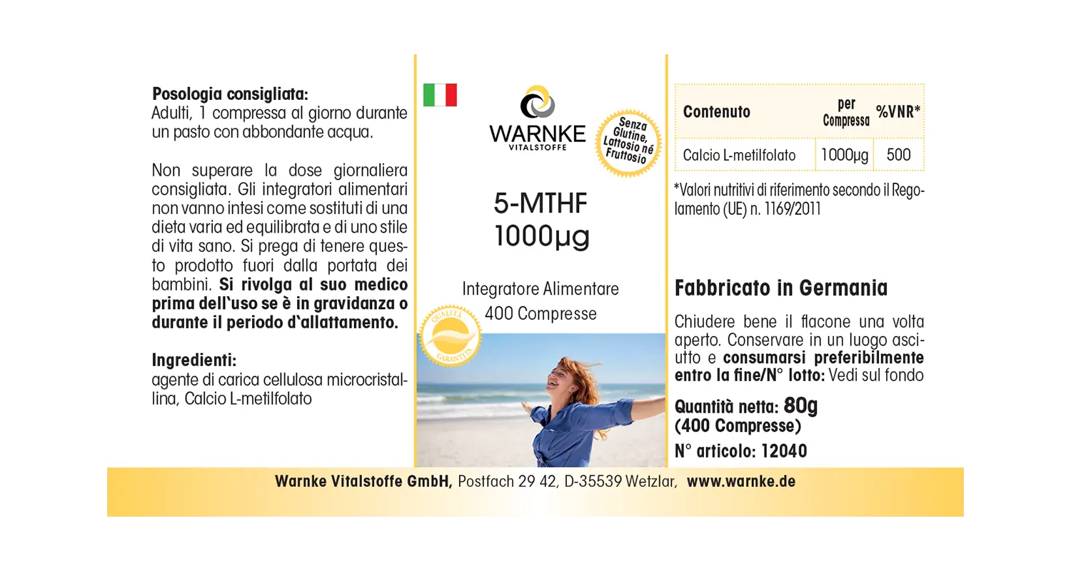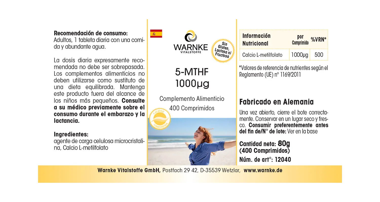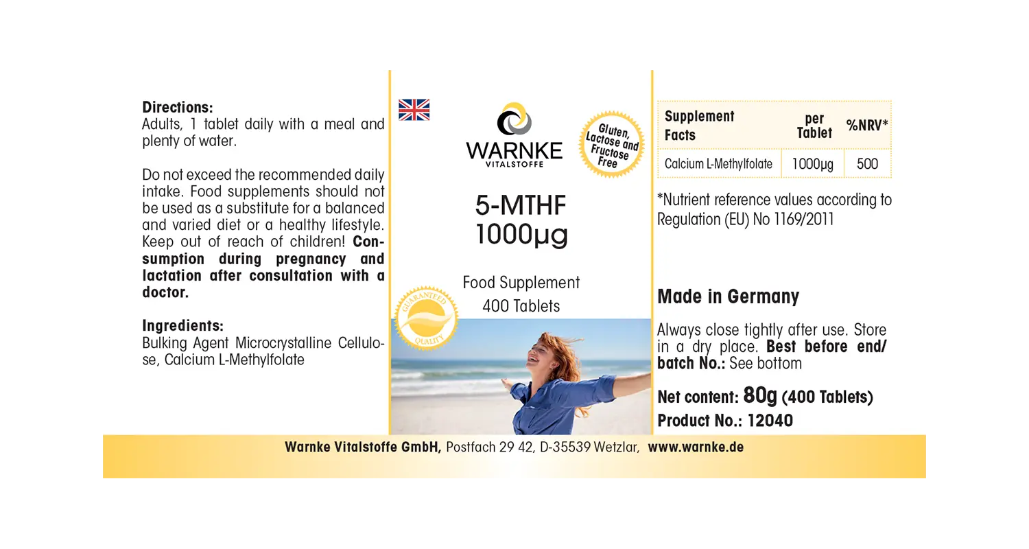 Produktinformationen "5-MTHF 1000 µg - 400 Tabletten - Calcium-L-Methylfolat | Warnke Vitalstoffe"