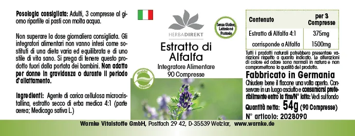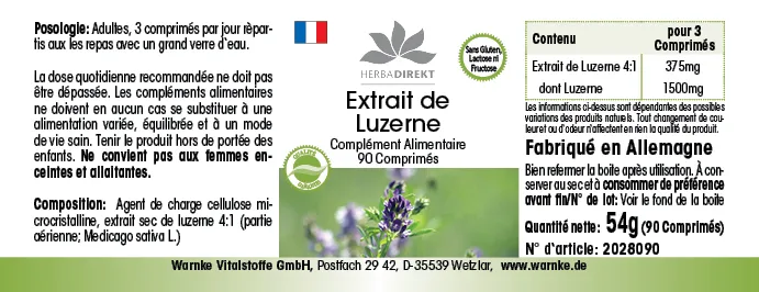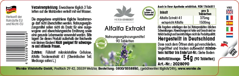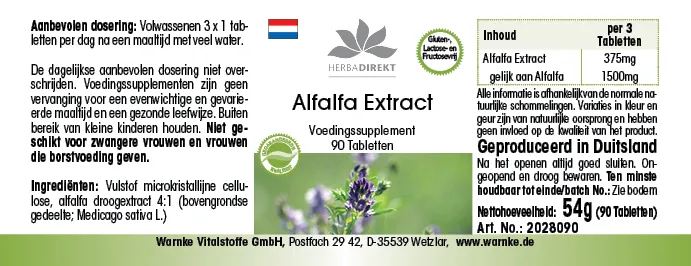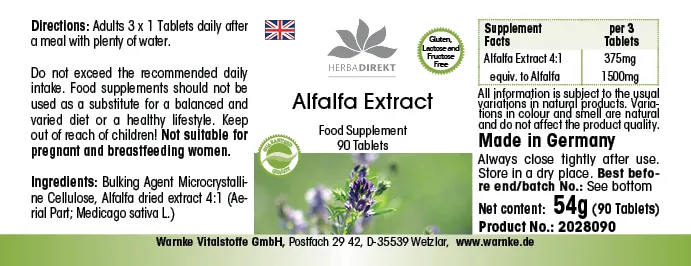Produktinformationen "Alfalfa Extrakt 4:1 (Medicago sativa) - 90 Tabletten| Warnke Vitalstoffe"
